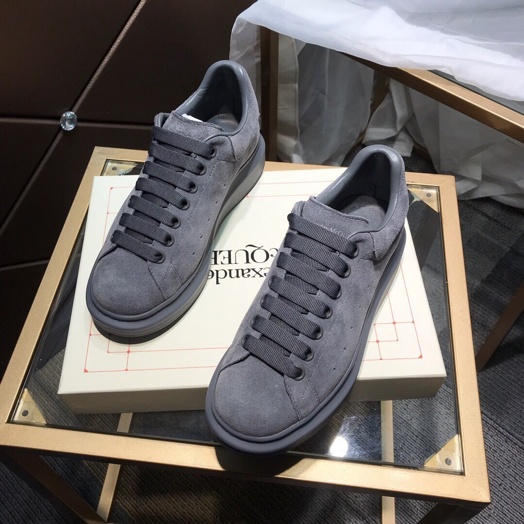 Elevate your style with these Alexander McQueen grey suede sneakers, available in sizes 35-44.