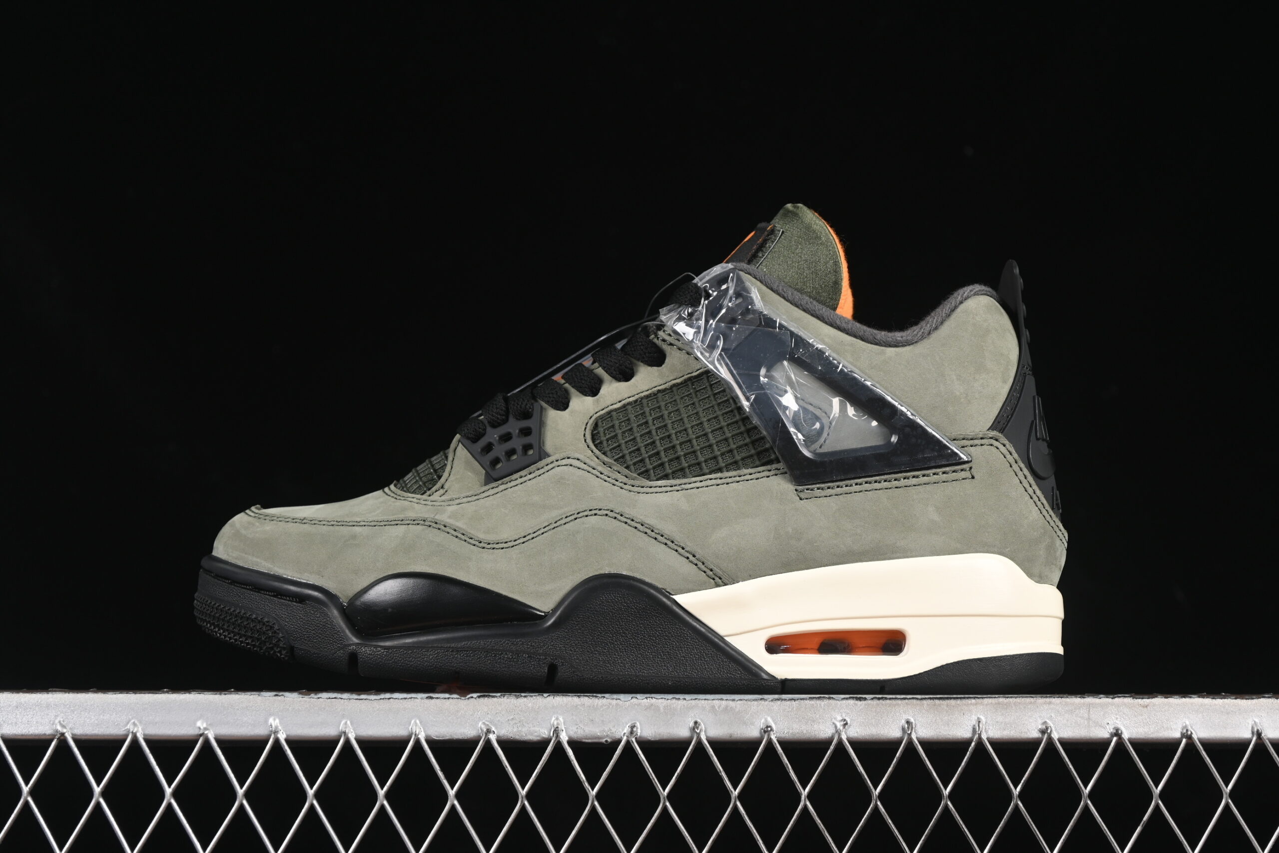 Step up your sneaker game with the Undefeated x Air Jordan 4 Retro in olive green suede.