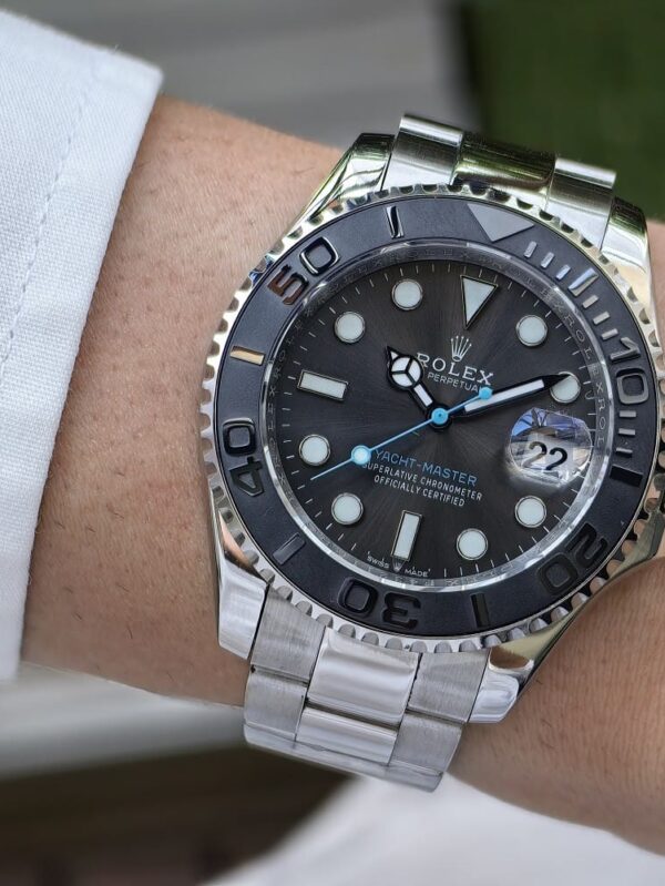 Discover the elegance of the Rolex Yacht-Master with a 40mm stainless steel case and automatic movement.