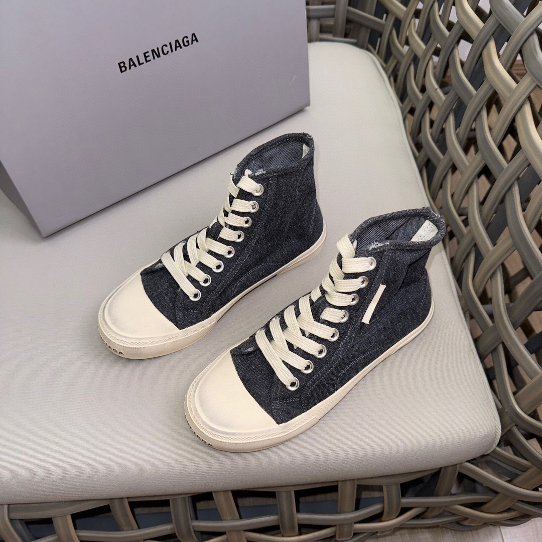 Elevate your style with these Balenciaga high-top sneakers crafted from premium denim.