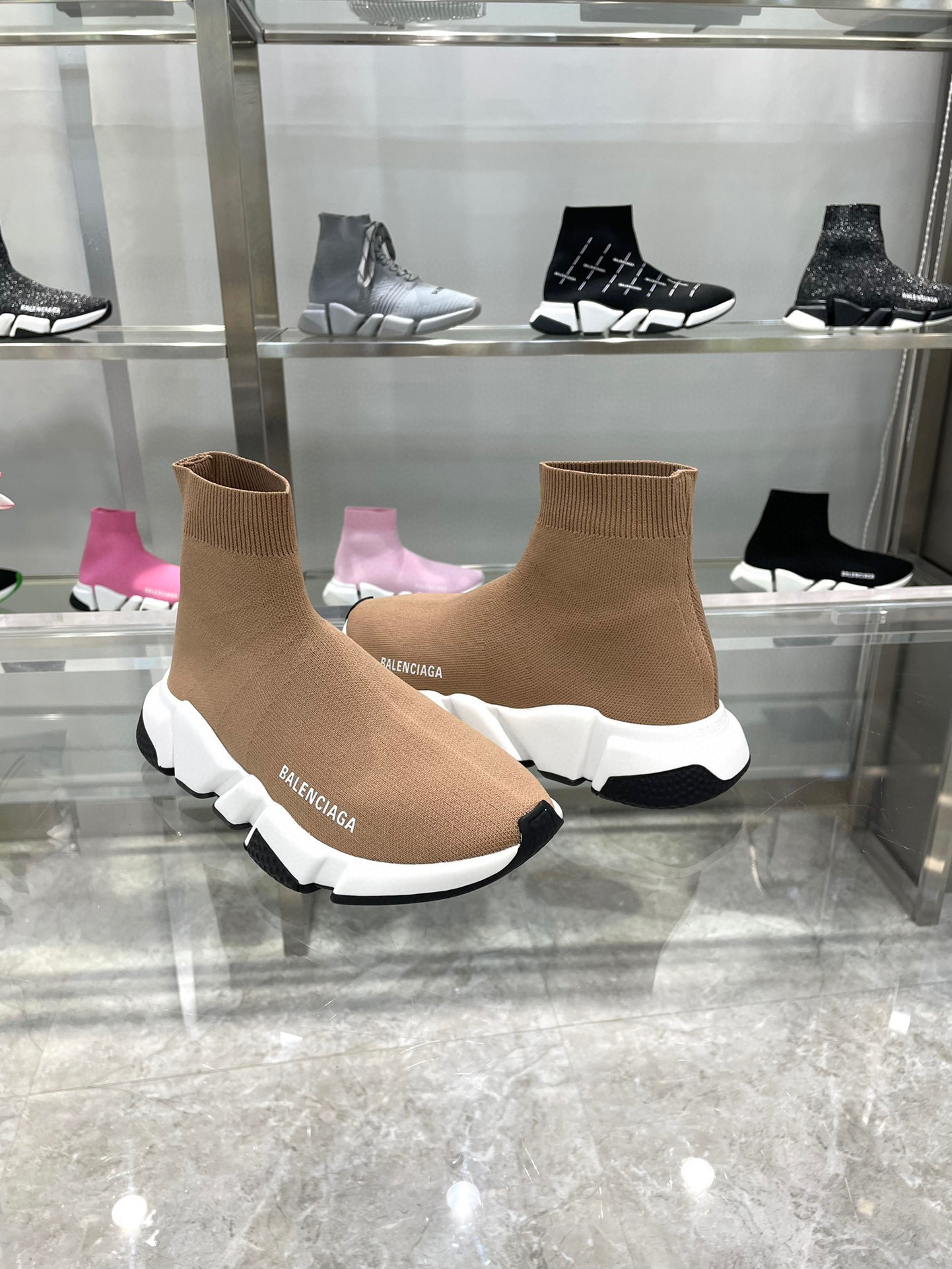 Elevate your style with these Balenciaga sock sneakers in a chic brown color, available in sizes 35-44.