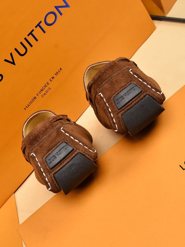 Elevate your style with these luxurious Louis Vuitton suede slip-on shoes, available in sizes 38-44.