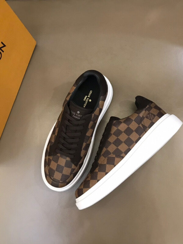 Stylish Louis Vuitton casual sneakers featuring a classic checkered design.
