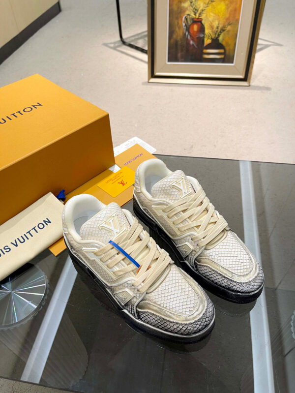Elevate your style with these Louis Vuitton high-end sneakers featuring a unique design and comfortable fit.