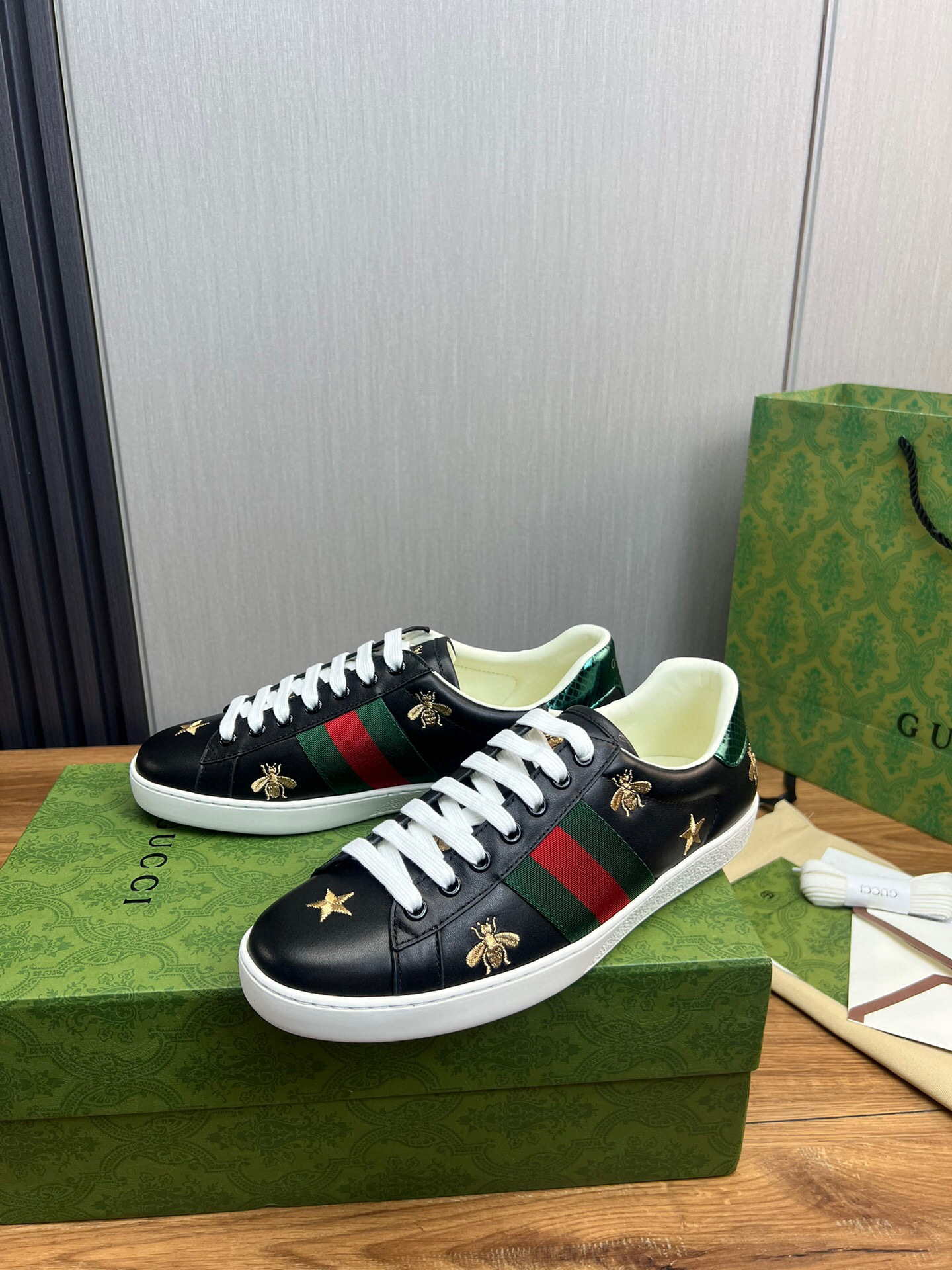 Stylish Gucci sneakers featuring bee and star motifs, available in sizes 35-44.