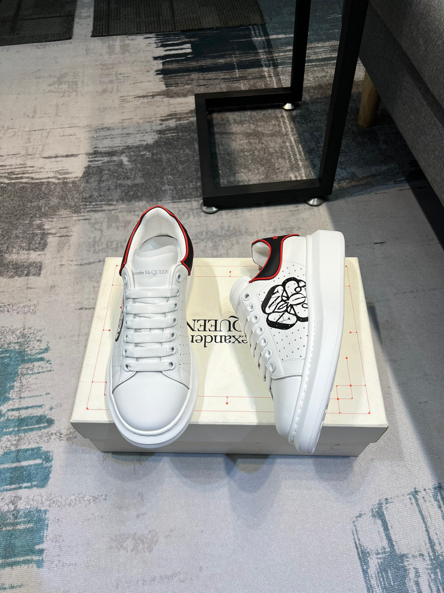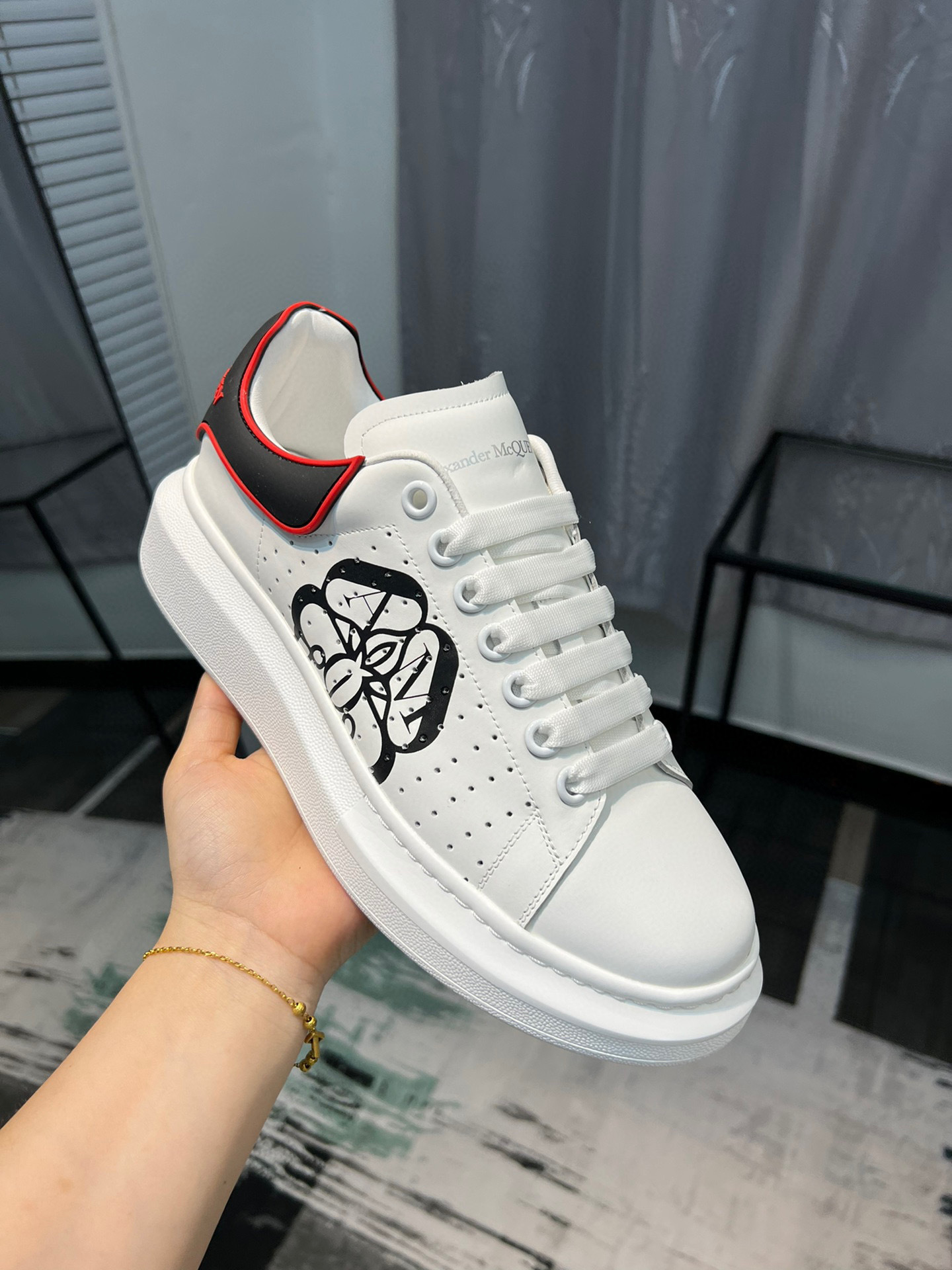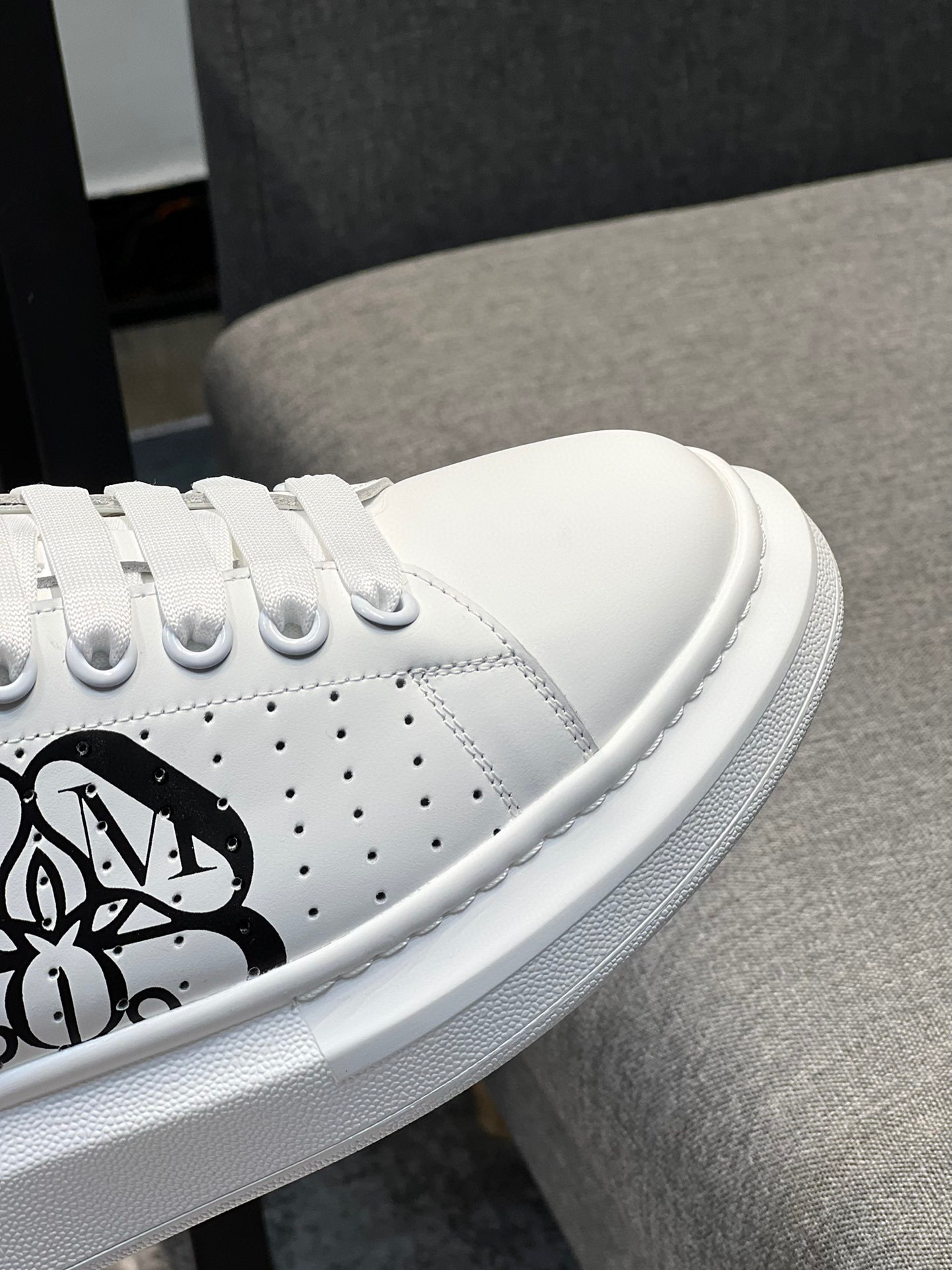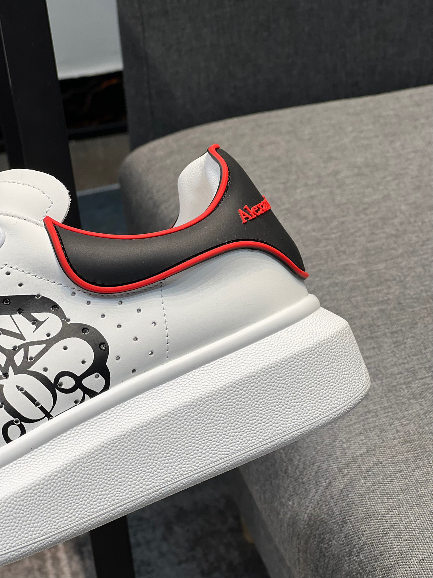 Step out in style with the Alexander McQueen Men’s Sneakers (Model 8060280). These sneakers showcase a sleek white design complemented by a striking black floral graphic and red accents, making them a standout choice for any outfit.