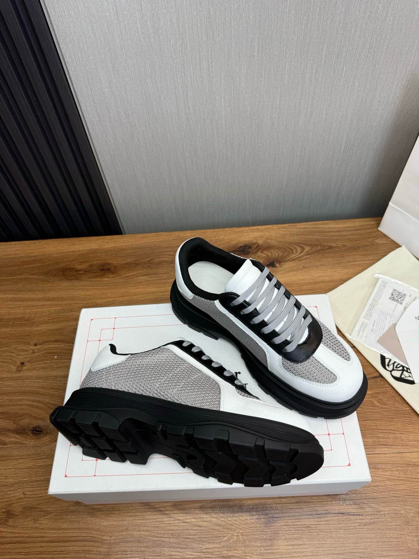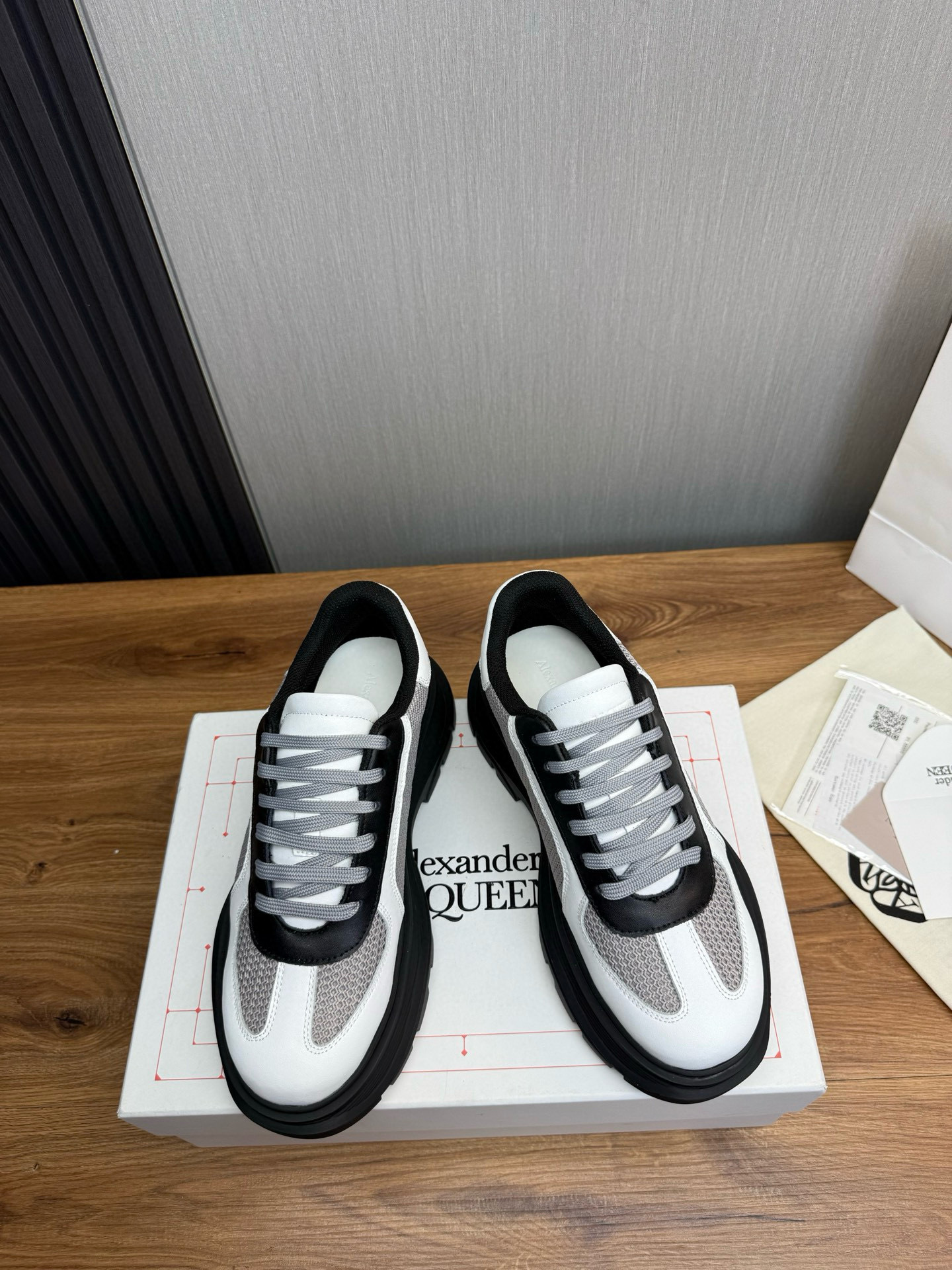 Step into luxury with the Alexander McQueen unisex sneakers, designed for both comfort and style. These sneakers feature a striking black and white color scheme, making them a versatile addition to any wardrobe.