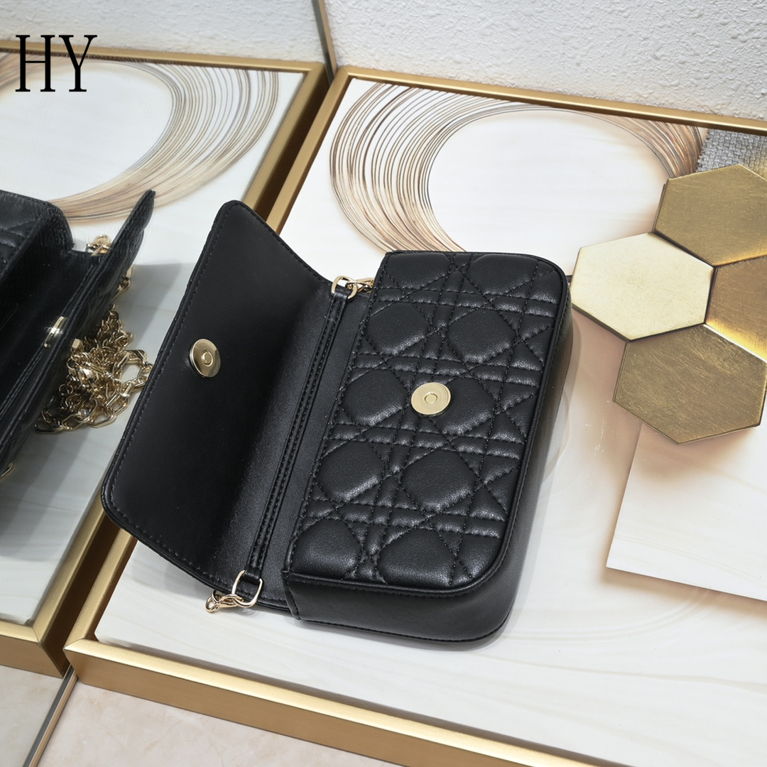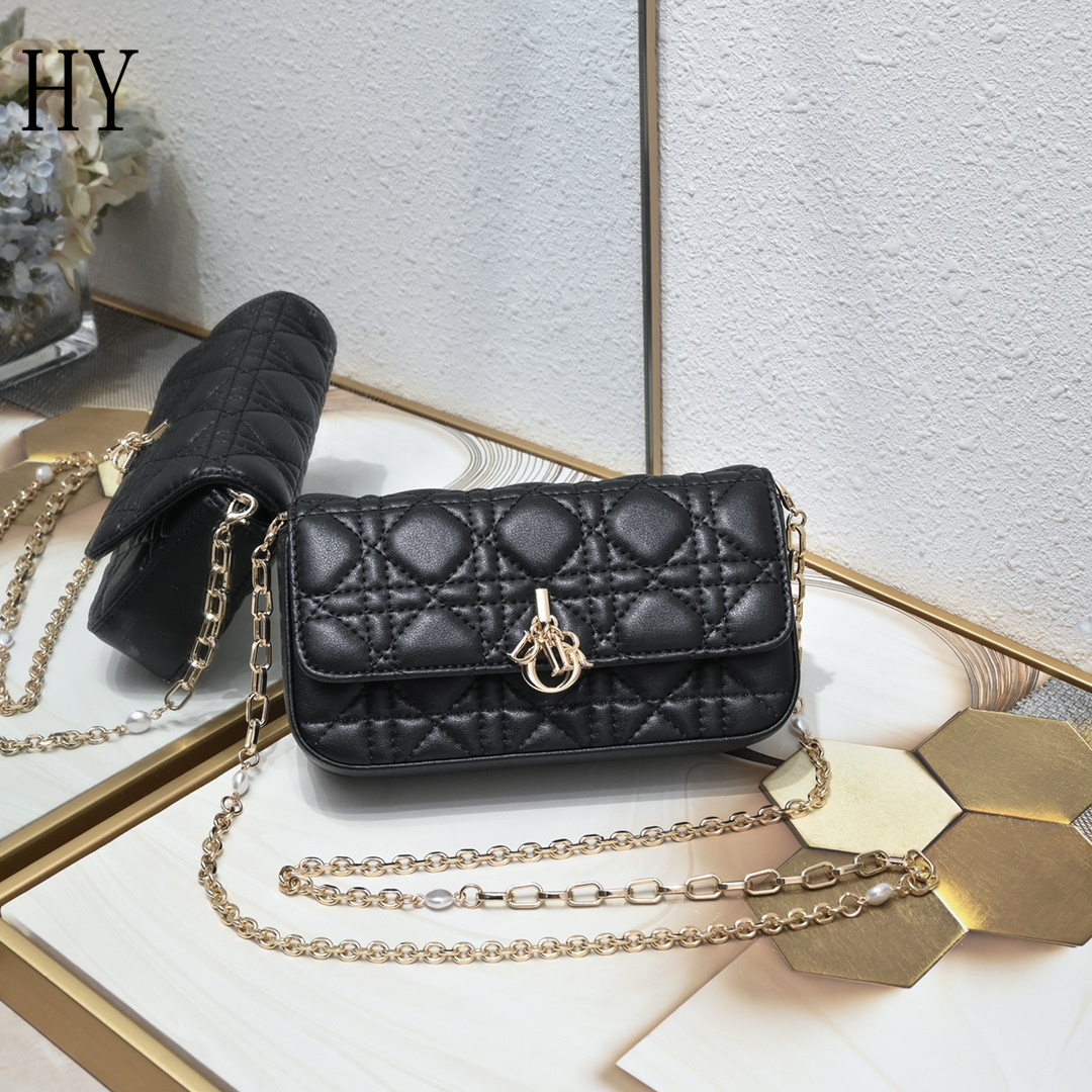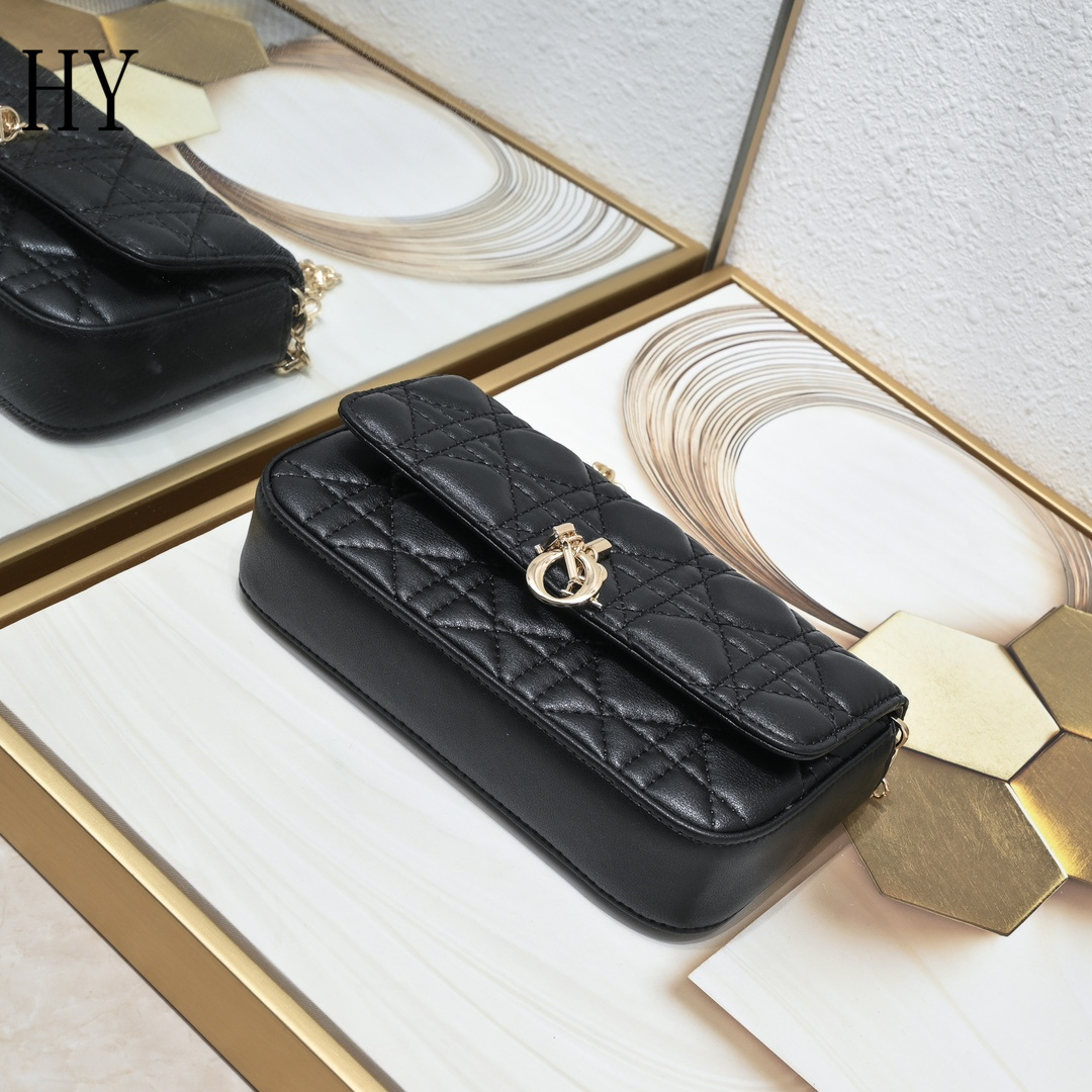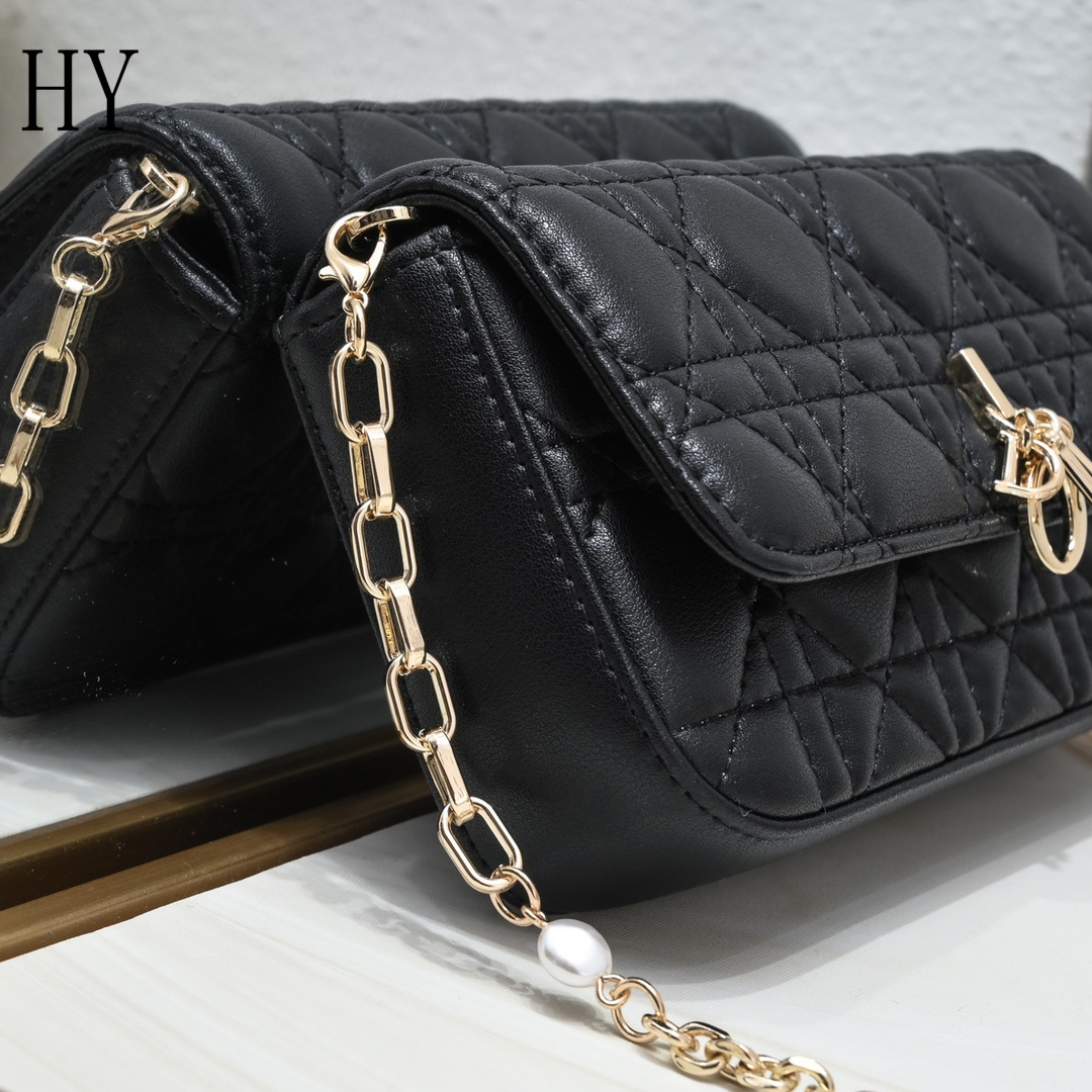 This stunning Dior black quilted chain bag combines luxury and functionality. Measuring 18.5 x 10 x 4 cm, it is designed to hold your essentials while making a fashion statement.