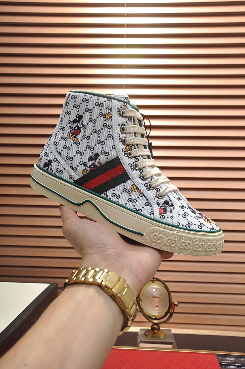 Crafted with high-quality materials, these high-tops offer both comfort and durability. The signature Gucci branding and vibrant colors ensure that you make a fashionable statement wherever you go.