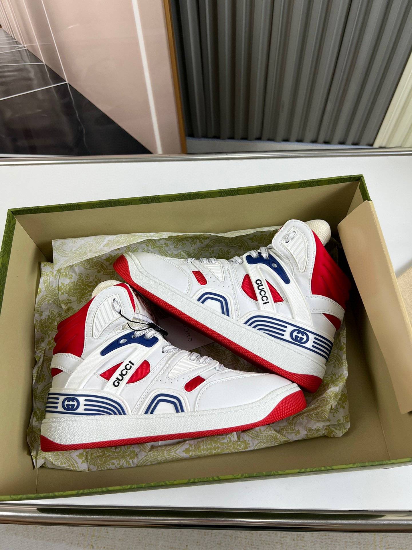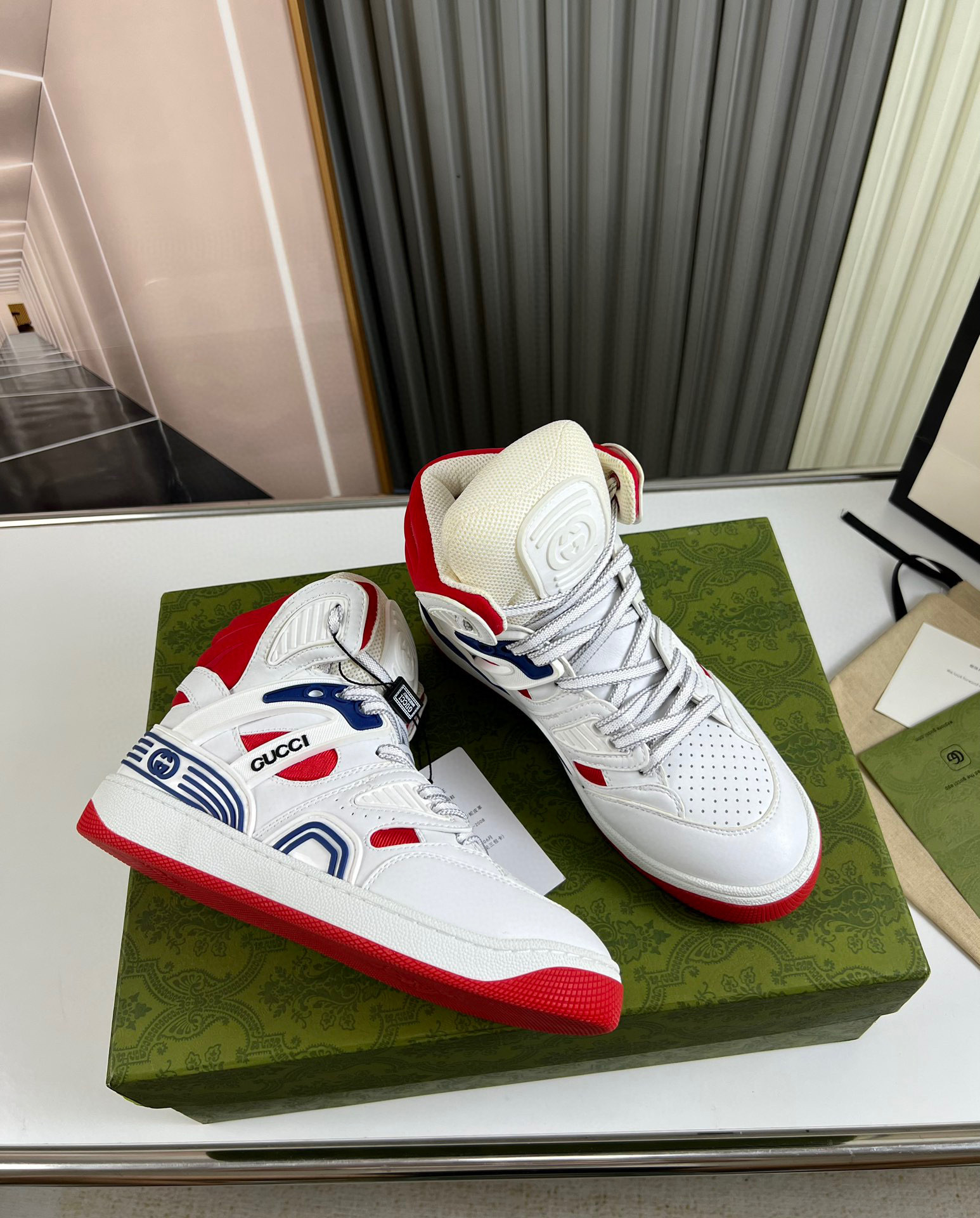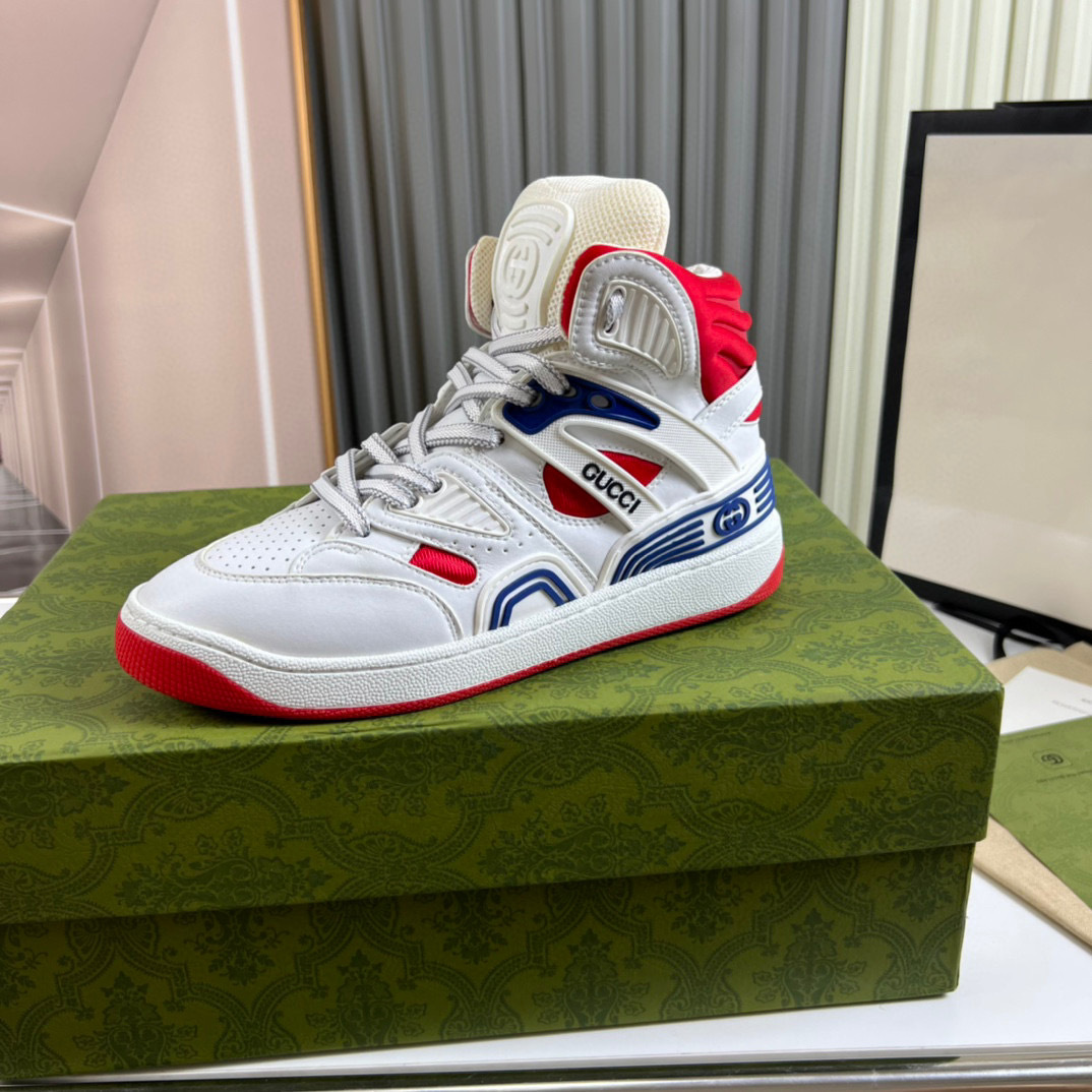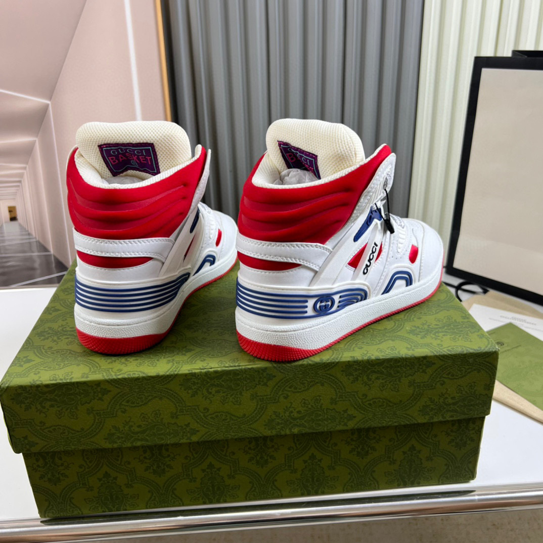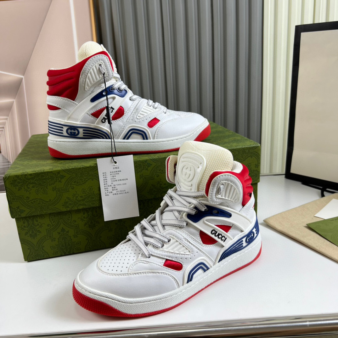 Step up your footwear game with the Gucci G Couples Sneakers, designed for both style and comfort. These sneakers feature a striking combination of white, red, and blue accents, making them a standout choice for any casual outfit.