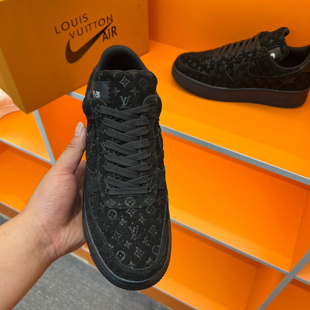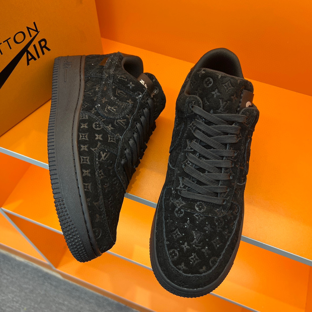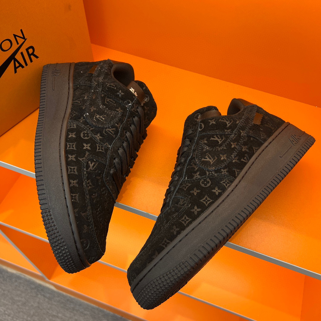 Step into luxury with the Louis Vuitton Air Force 1 sneakers, a perfect blend of iconic design and modern comfort. Crafted with premium materials, these sneakers feature a sleek black exterior adorned with the signature Louis Vuitton monogram, making them a standout addition to any wardrobe.