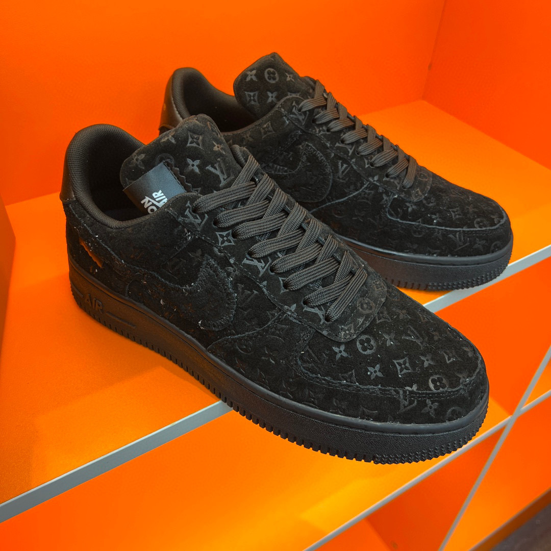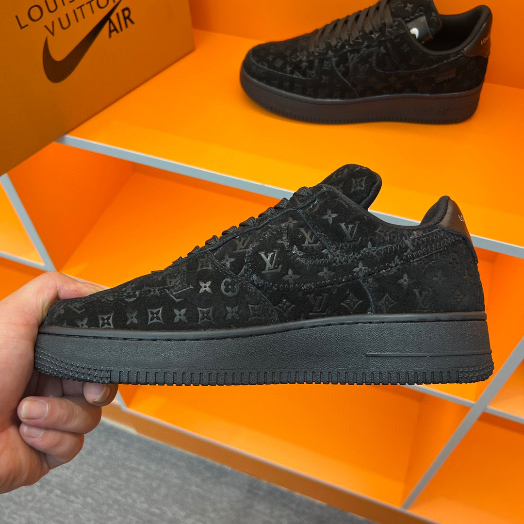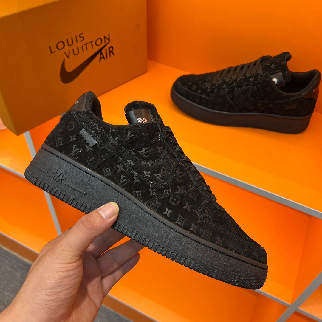 Step into luxury with the Louis Vuitton Air Force 1 sneakers, a perfect blend of iconic design and modern comfort. Crafted with premium materials, these sneakers feature a sleek black exterior adorned with the signature Louis Vuitton monogram, making them a standout addition to any wardrobe.