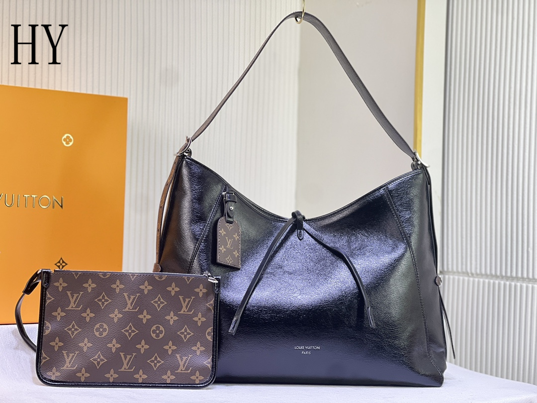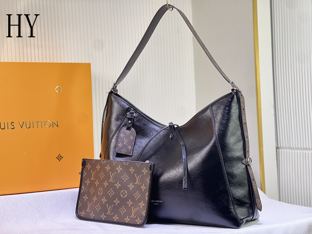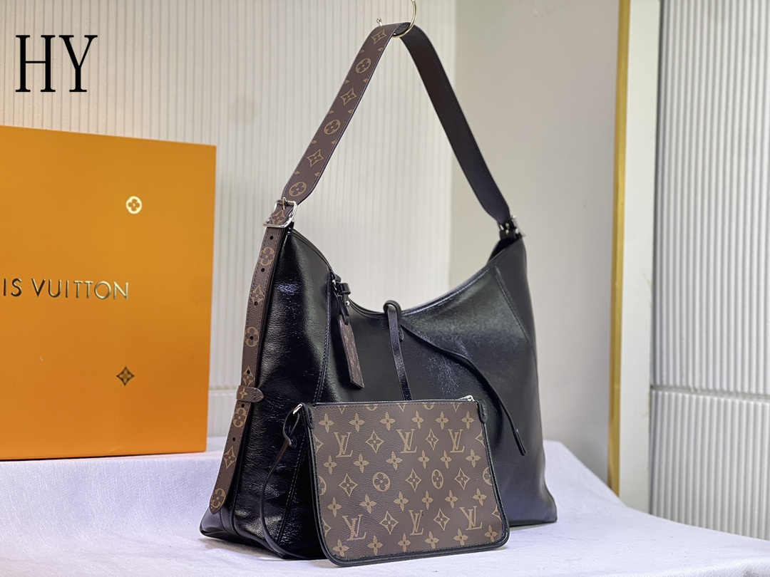 Elevate your accessory collection with this exquisite Louis Vuitton hobo bag, crafted from premium black leather. Measuring 39x30x15cm, this bag offers ample space for your essentials while maintaining a sleek silhouette.