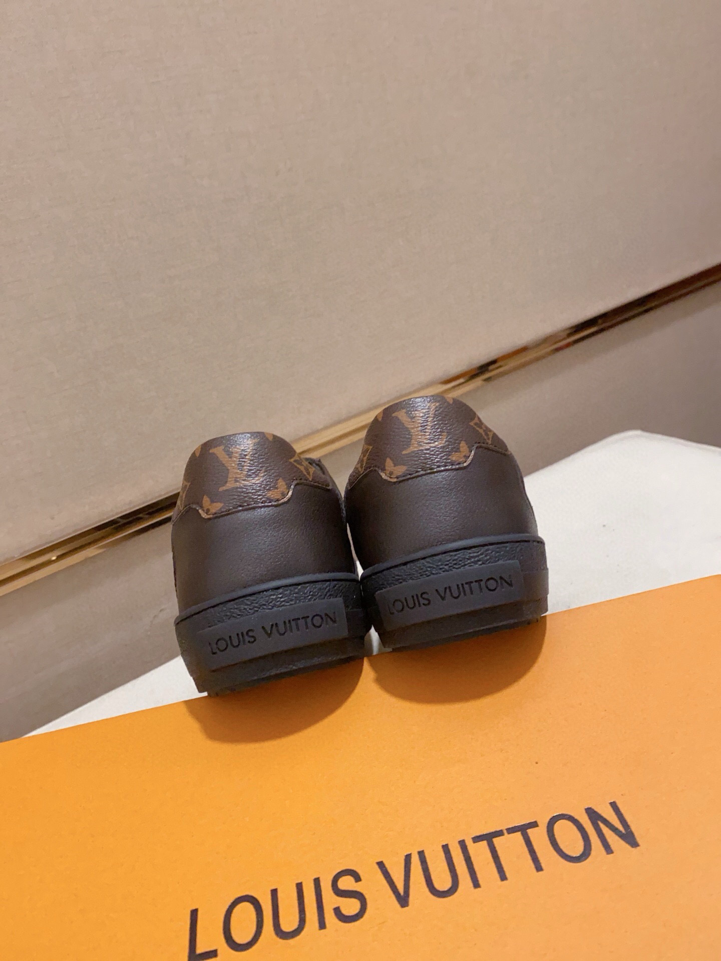 Discover the perfect blend of luxury and comfort with these Louis Vuitton casual shoes. Crafted from high-quality materials, these shoes feature a sleek brown design with the iconic Louis Vuitton pattern.
