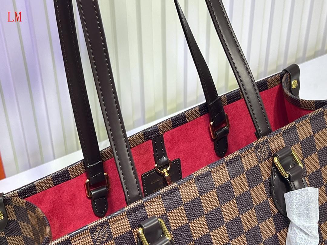 Crafted from high-quality Damier canvas, it features elegant leather handles and a chic silhouette. The timeless design ensures versatility, making it a staple in any wardrobe.