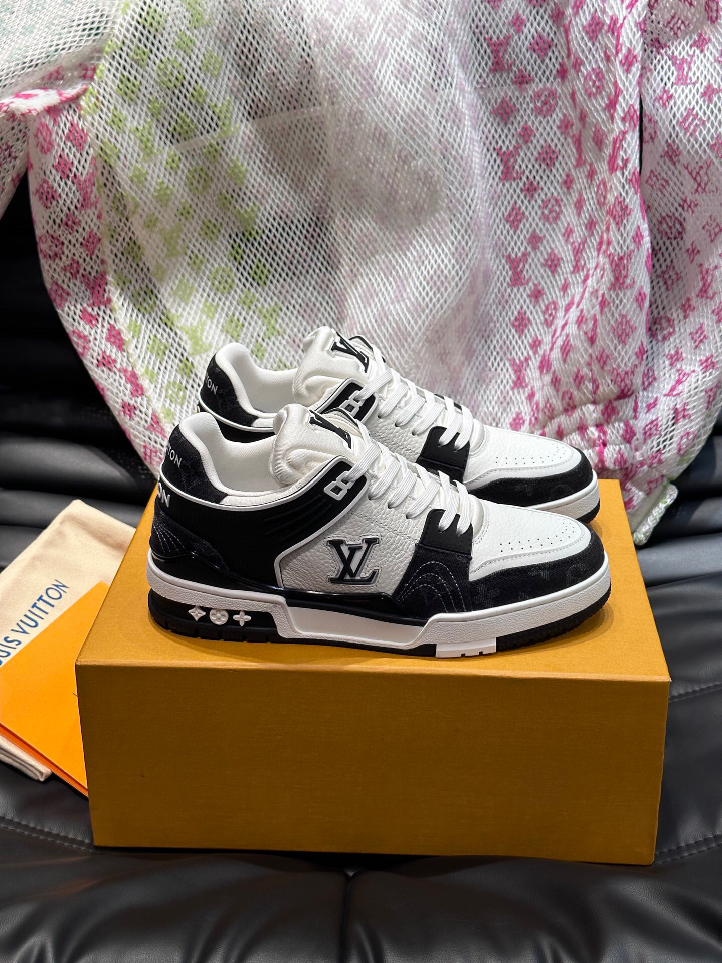 Discover the perfect blend of luxury and comfort with these Louis Vuitton high-end sneakers. Designed for both style and functionality, these sneakers feature a sleek white and black color scheme that complements any outfit.