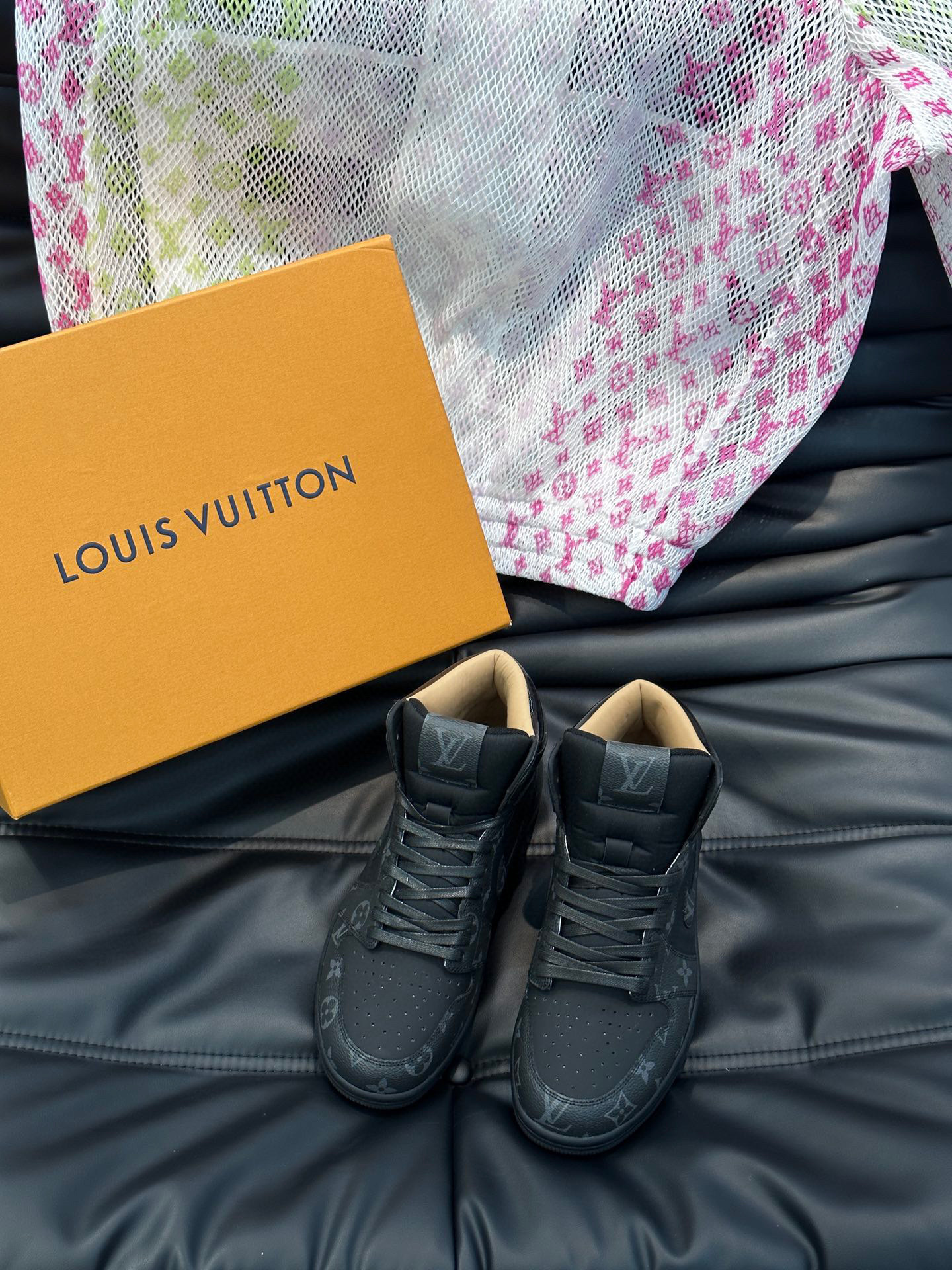 Step out in style with these Louis Vuitton high-top sneakers, designed for both comfort and fashion. Crafted from premium materials, these sneakers feature the iconic Louis Vuitton monogram pattern, making them a standout addition to any wardrobe.