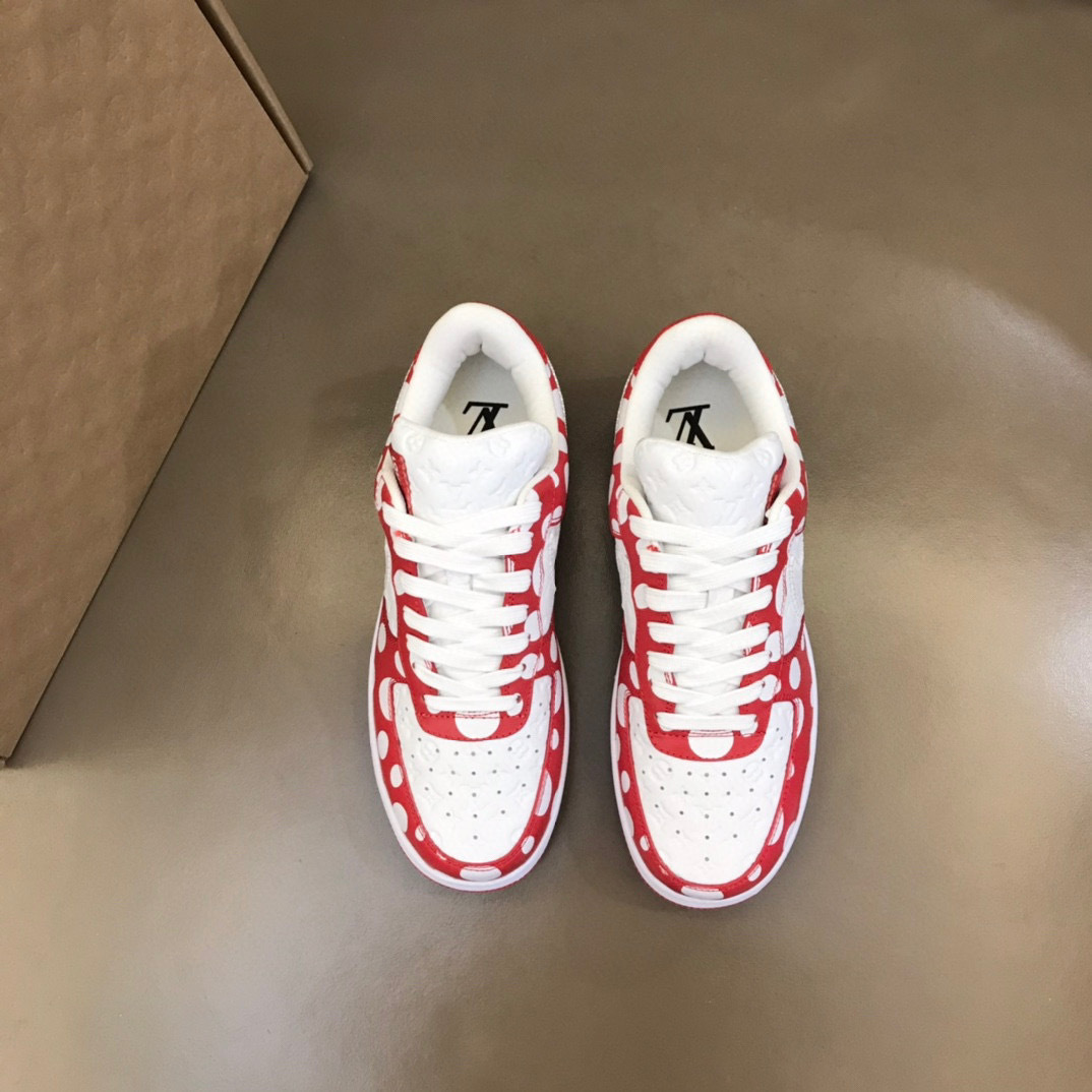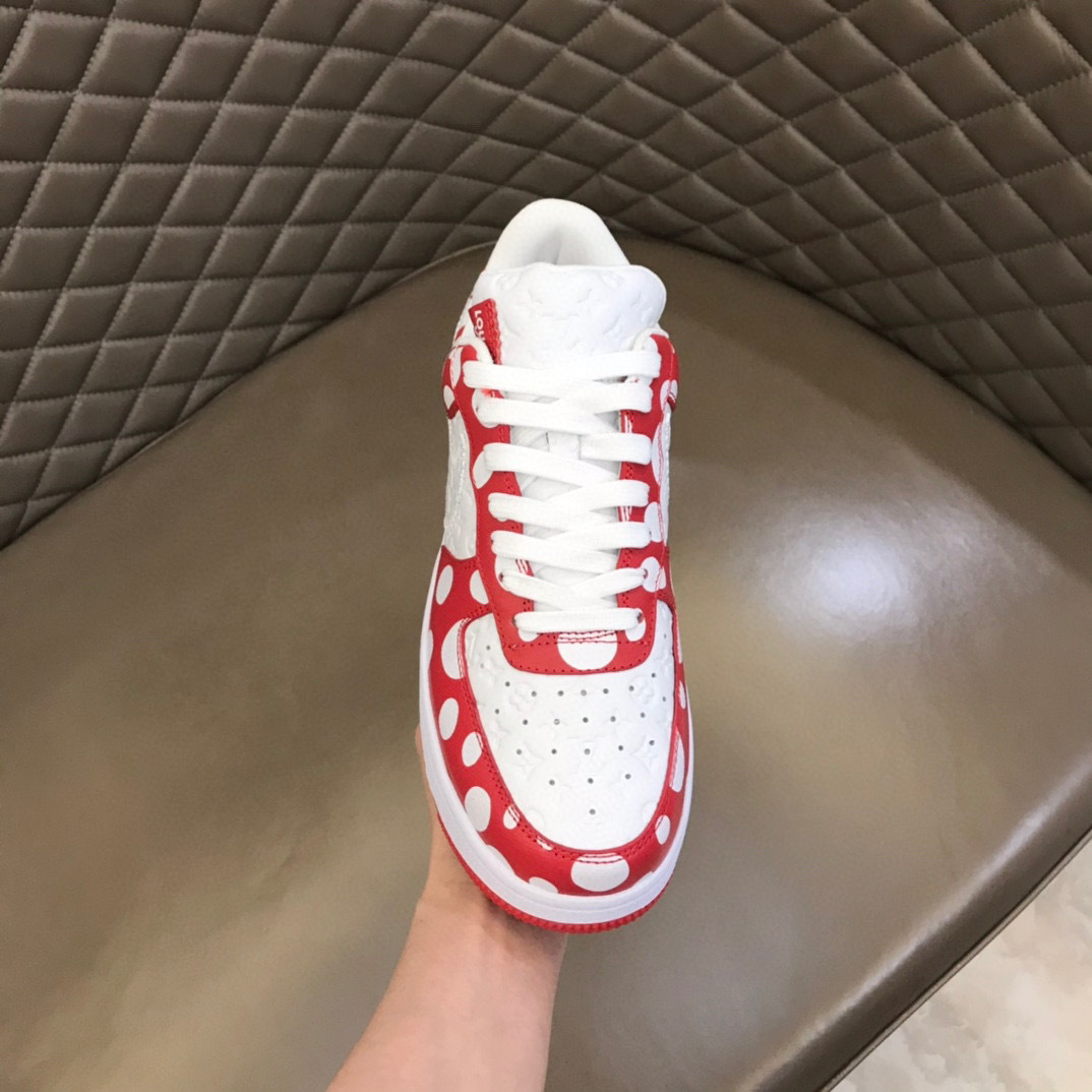 Step out in style with the Louis Vuitton L Casual Shoes, designed for both comfort and fashion. These shoes feature a striking red and white polka dot pattern that adds a playful touch to any outfit.
