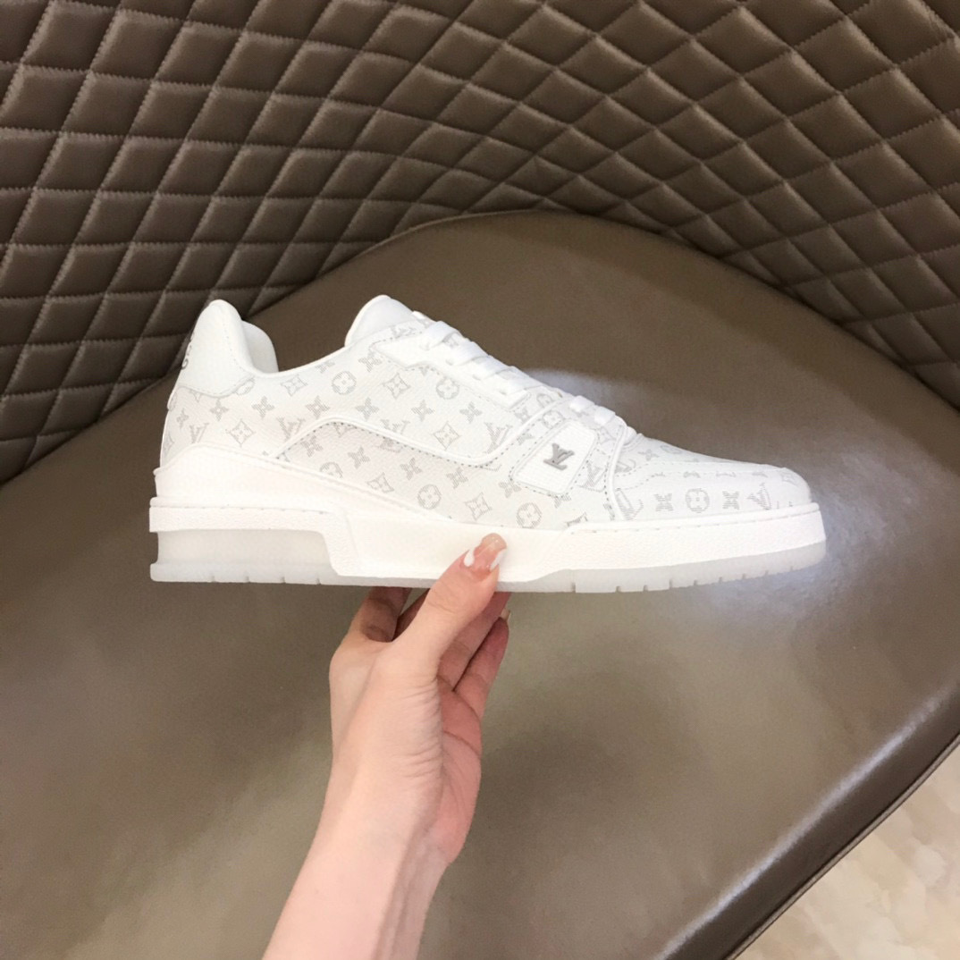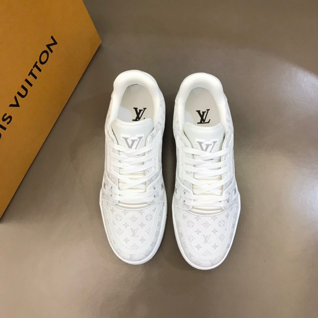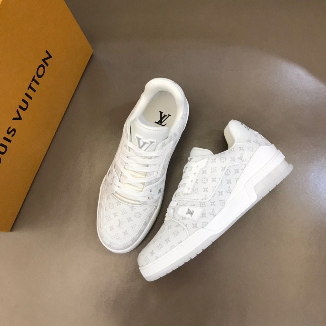 Step into luxury with the Louis Vuitton L Casual Shoes, designed for both comfort and style. These shoes feature a sleek white exterior adorned with the iconic Louis Vuitton monogram, making them a perfect addition to any wardrobe.