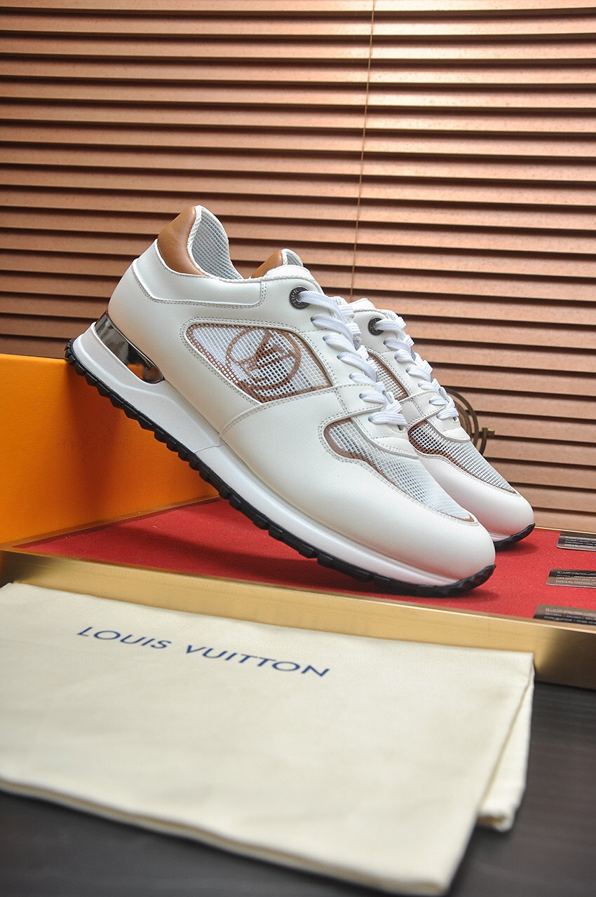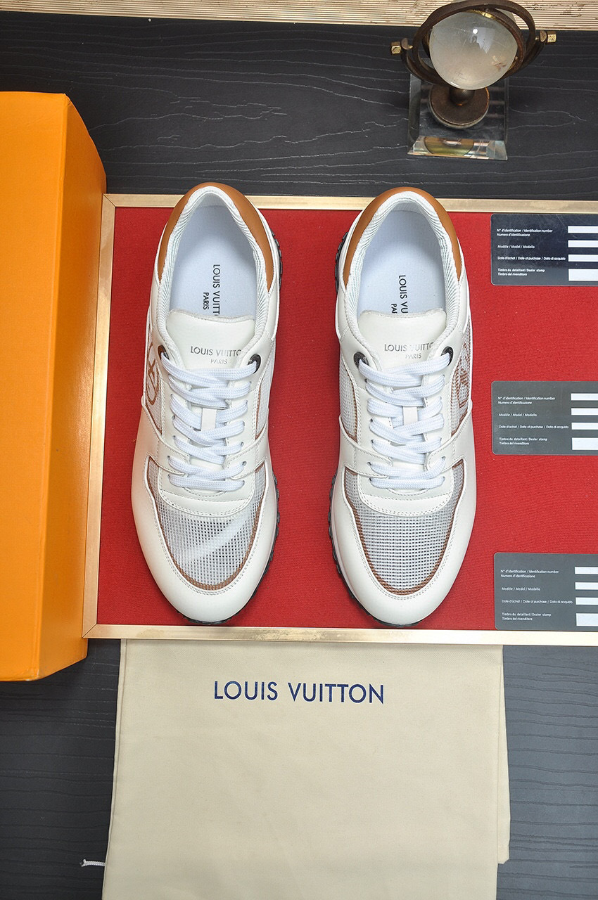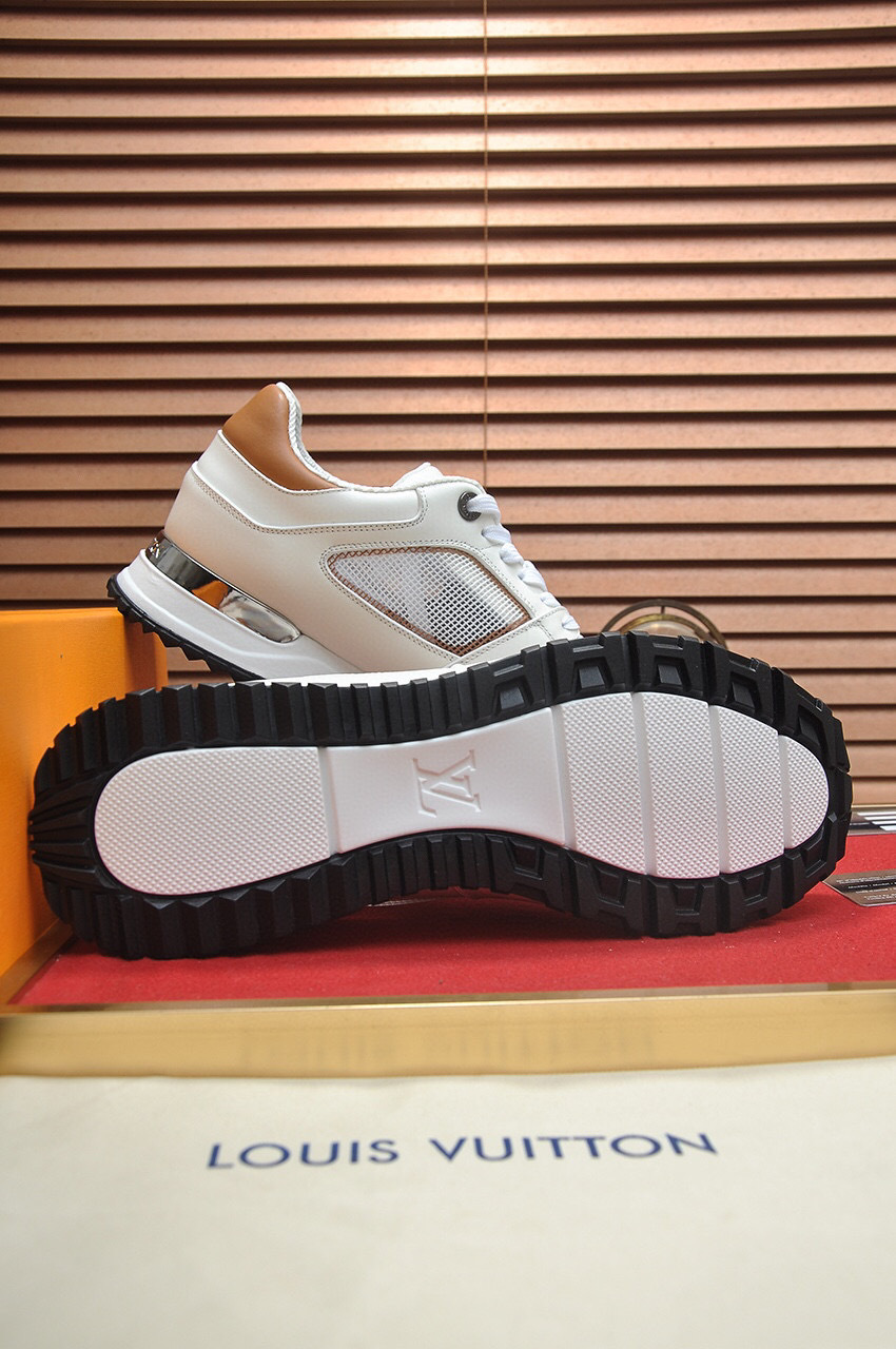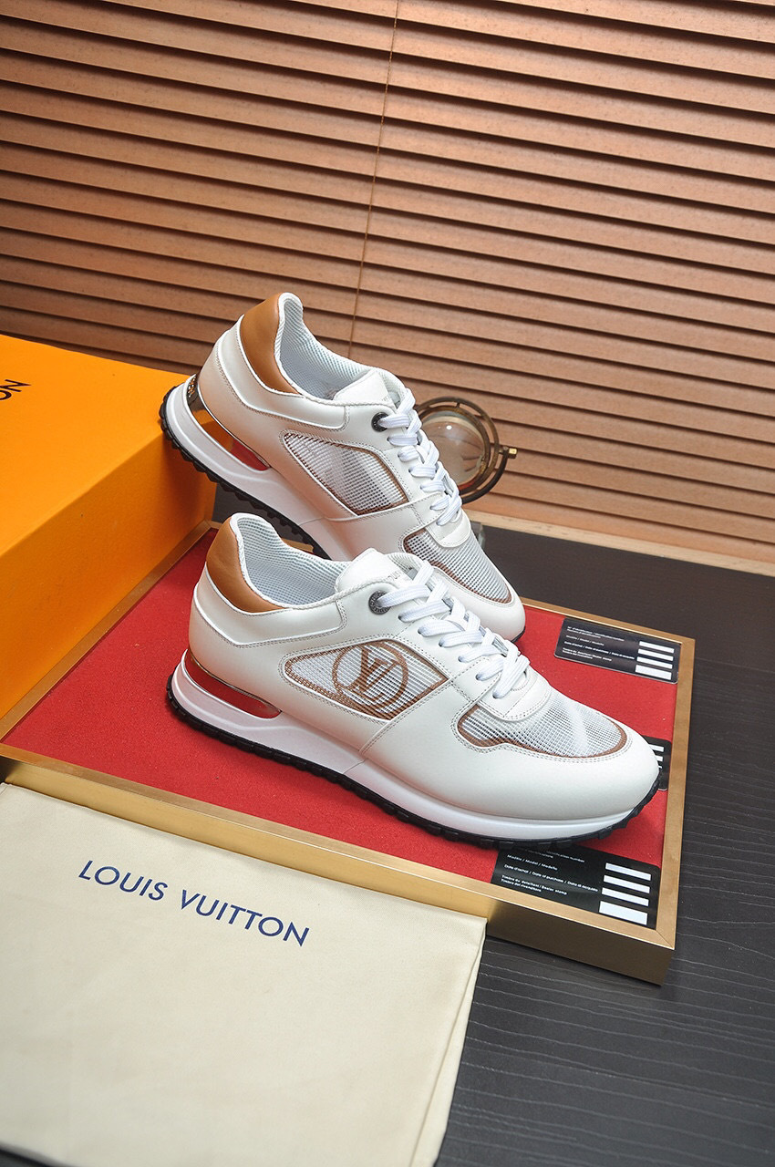 Step into luxury with the Louis Vuitton L High-End Sneakers, designed for both comfort and style. These sneakers feature a sleek white design with elegant brown accents, making them a versatile addition to any wardrobe.
