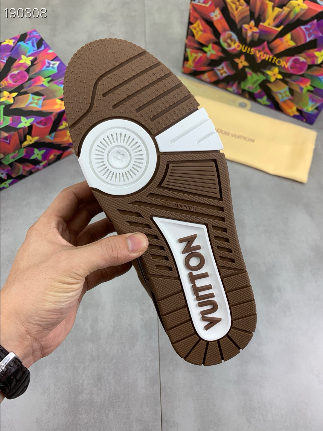 Discover the perfect blend of luxury and comfort with the Louis Vuitton L Wave Sneakers. Crafted with high-quality materials, these sneakers feature a striking brown color with the iconic LV monogram, making them a standout addition to any wardrobe.