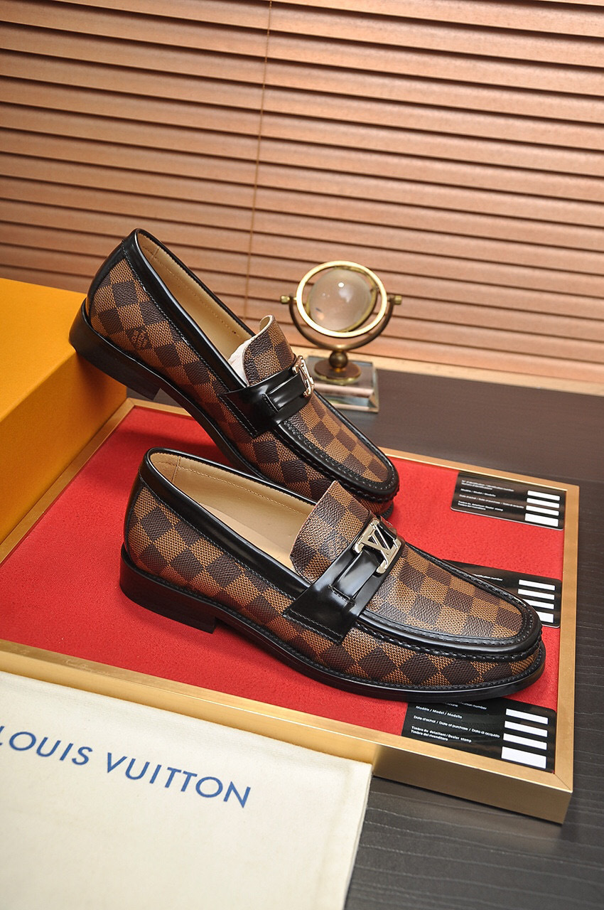 Discover the perfect blend of luxury and comfort with these Louis Vuitton leather loafers. Crafted with high-quality materials, these shoes feature the iconic Louis Vuitton checkered pattern, making them a timeless addition to any wardrobe.