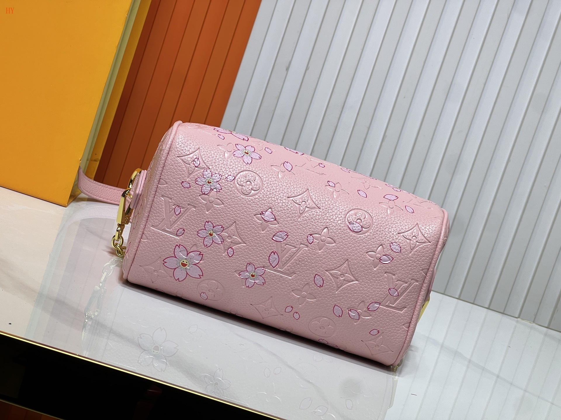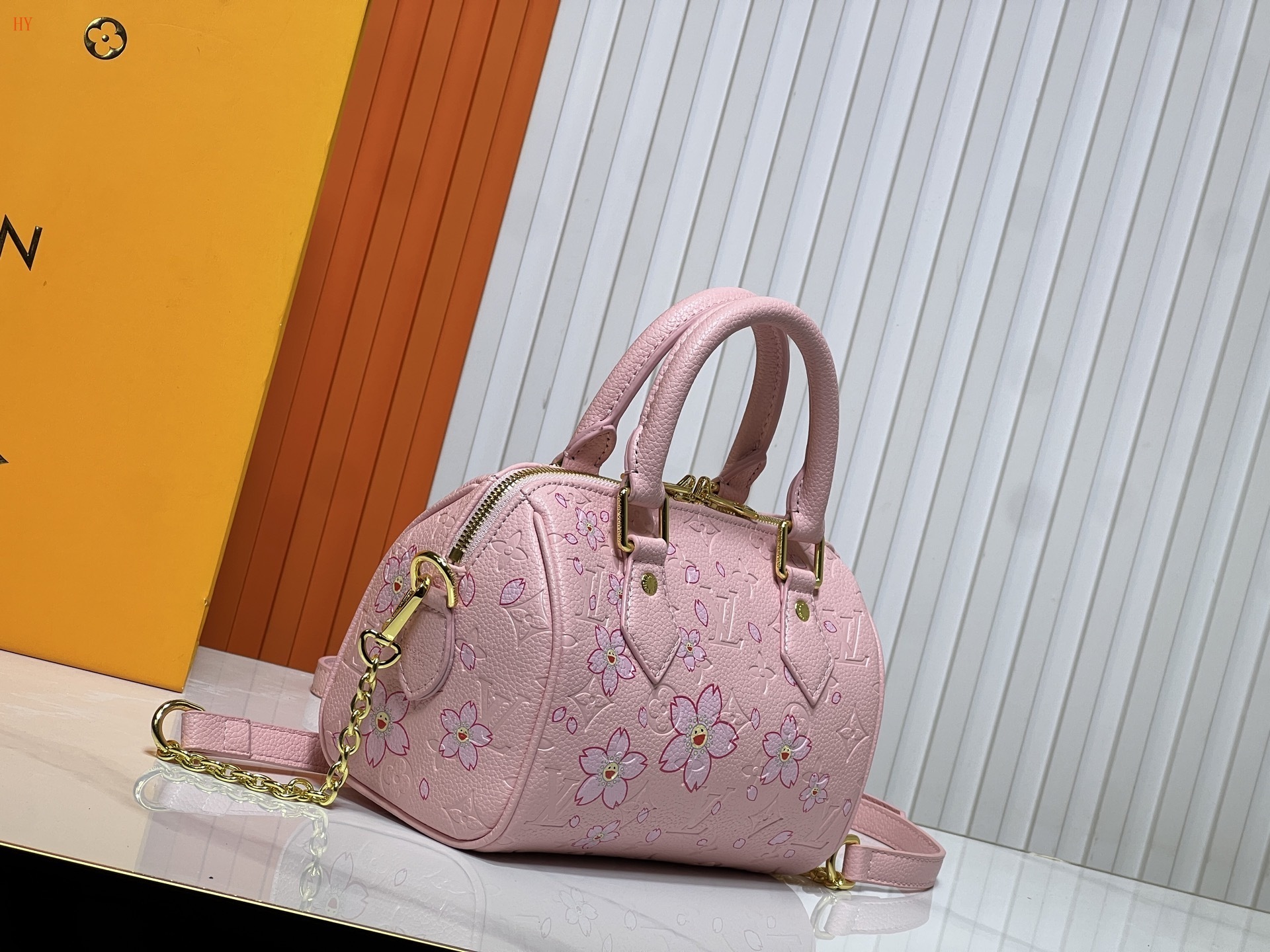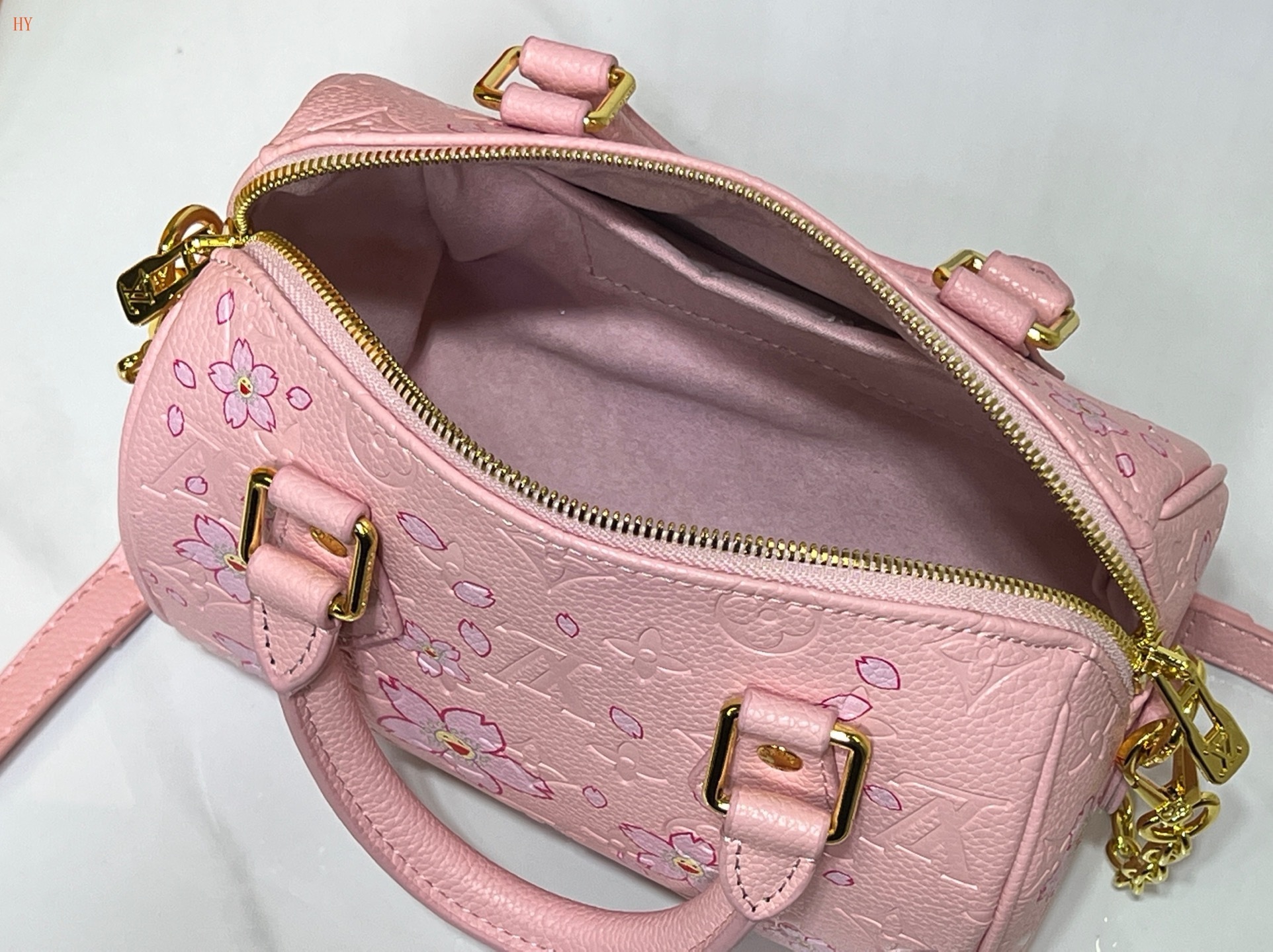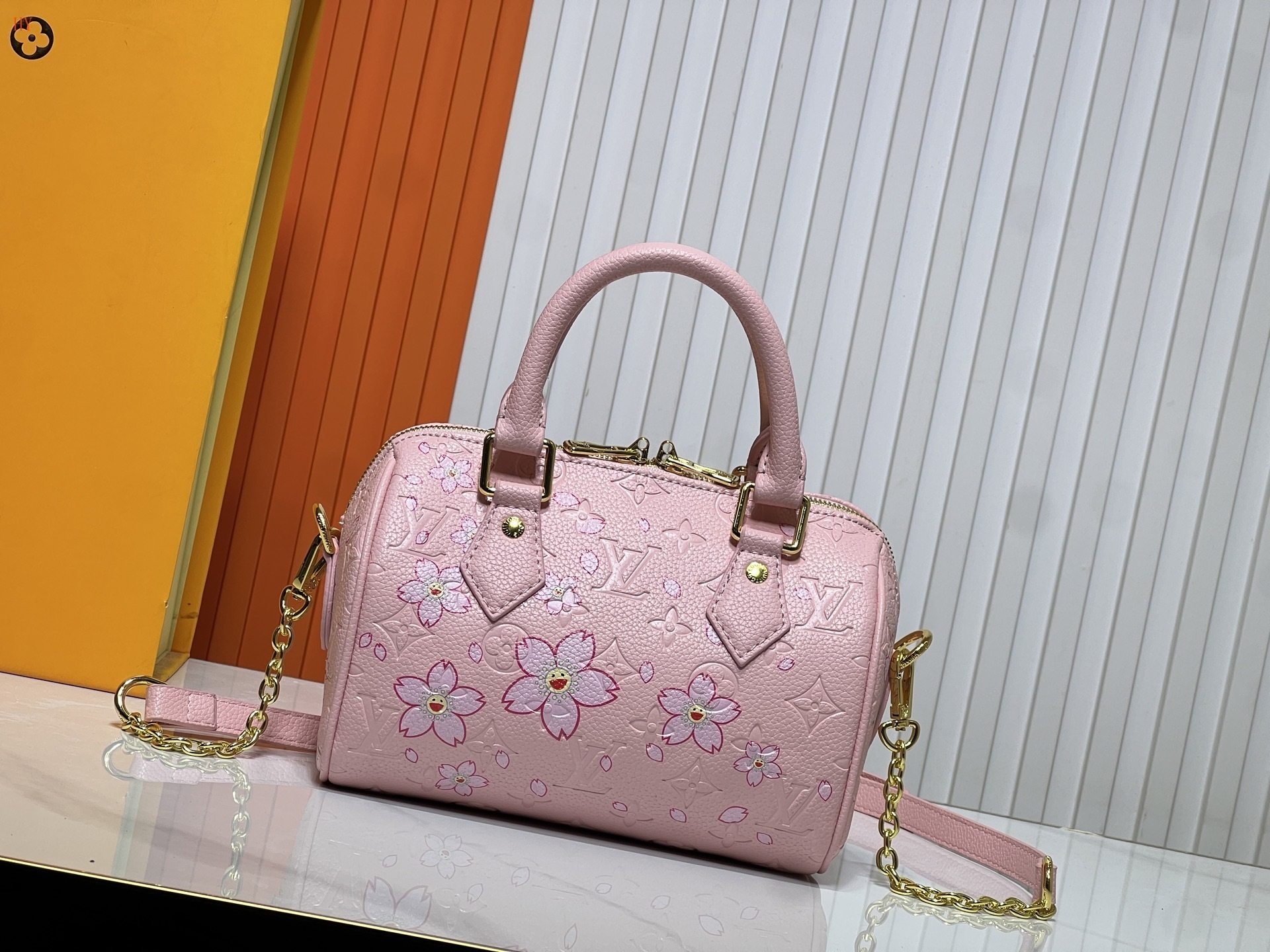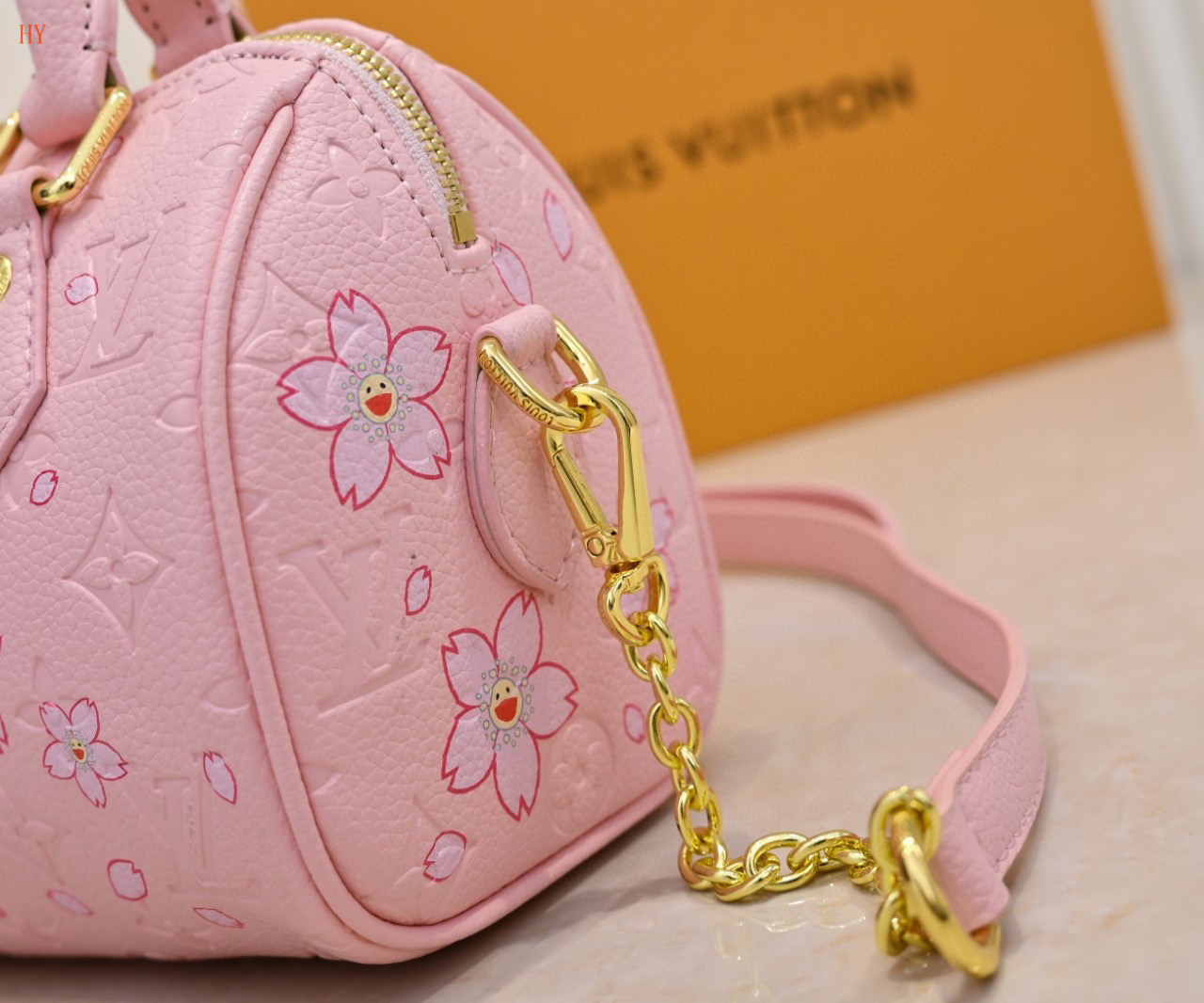 Elevate your accessory collection with the Louis Vuitton Pink Floral Handbag. Measuring 20*13*12 cm, this handbag is perfect for everyday use or special occasions.