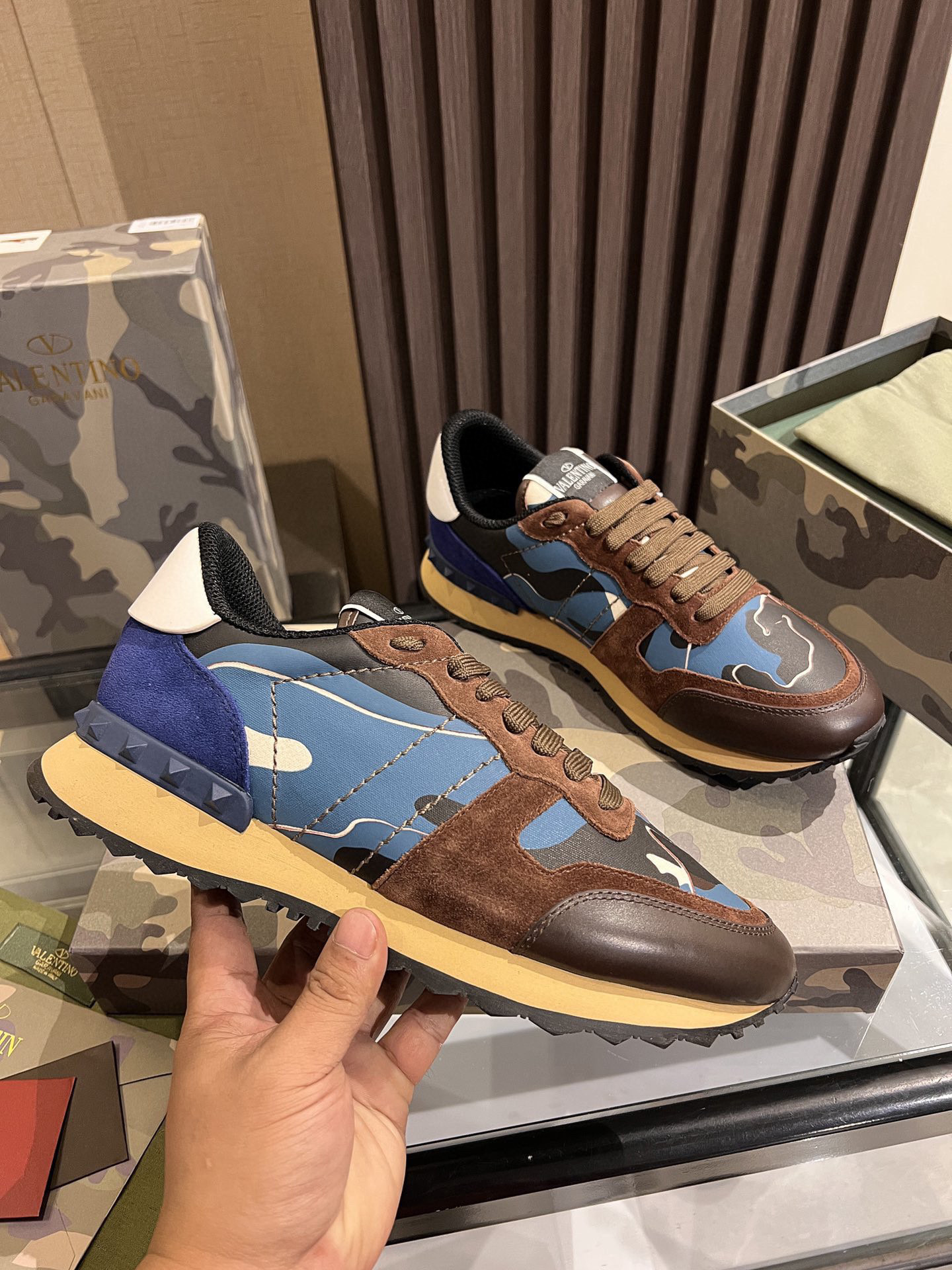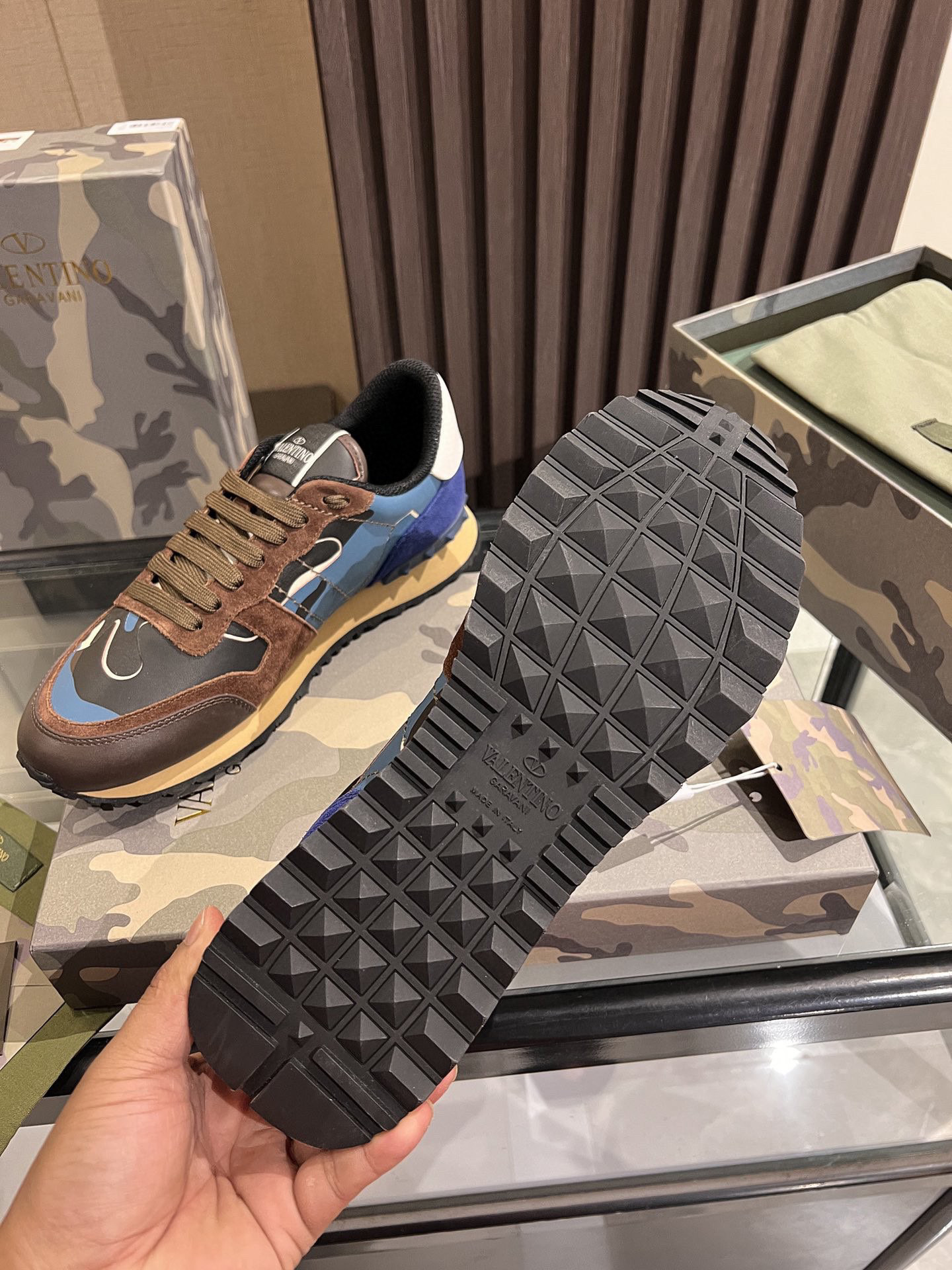 Elevate your footwear collection with these Valentino casual sneakers, available in sizes 38-44. Designed for both comfort and style, these sneakers showcase a striking blend of blue, brown, and black hues, making them a versatile addition to any wardrobe.