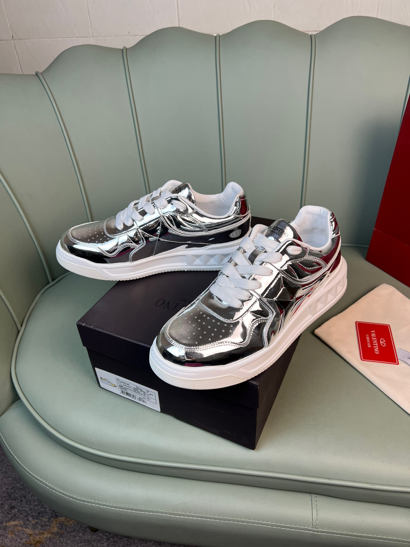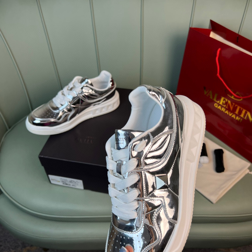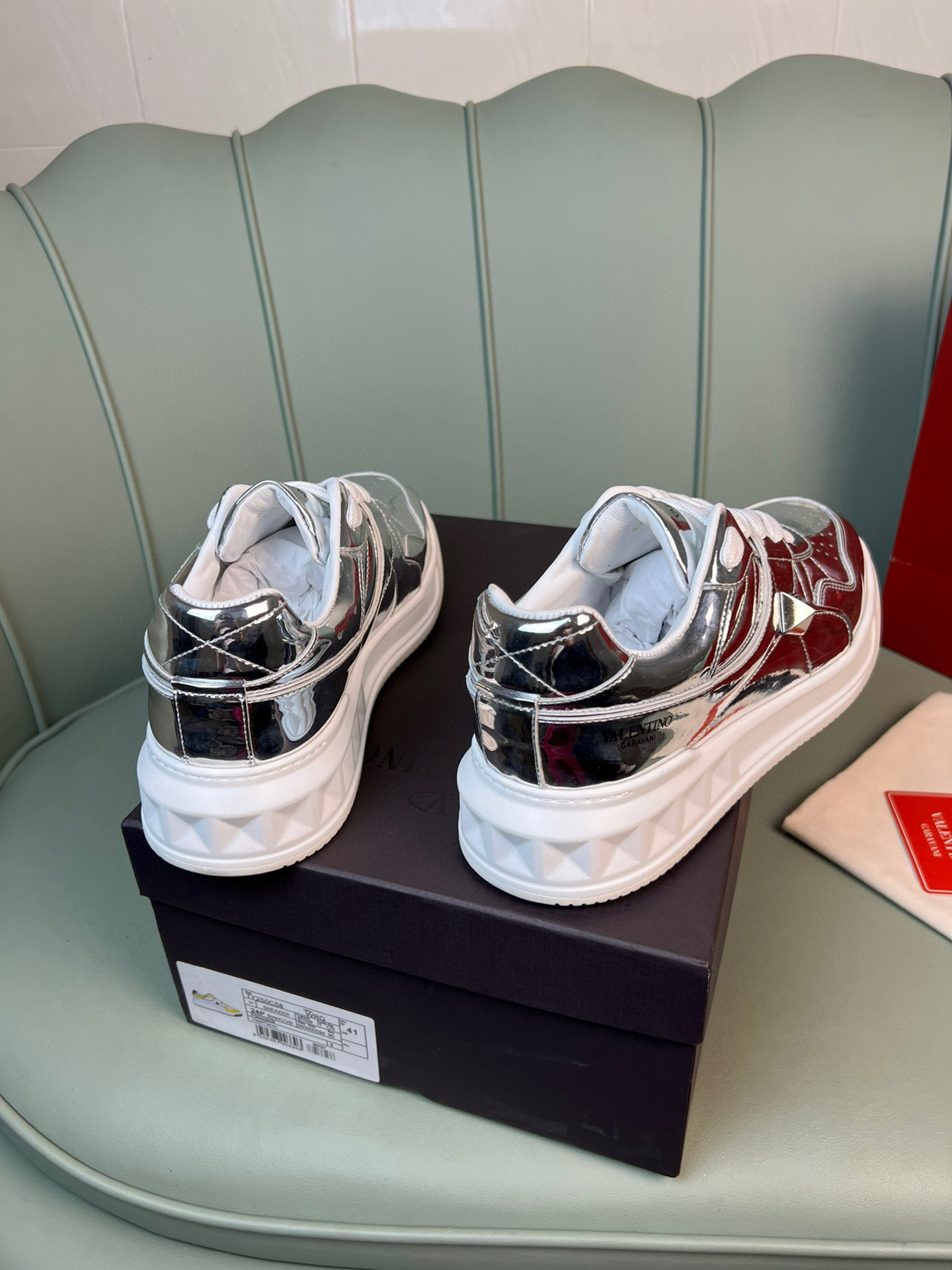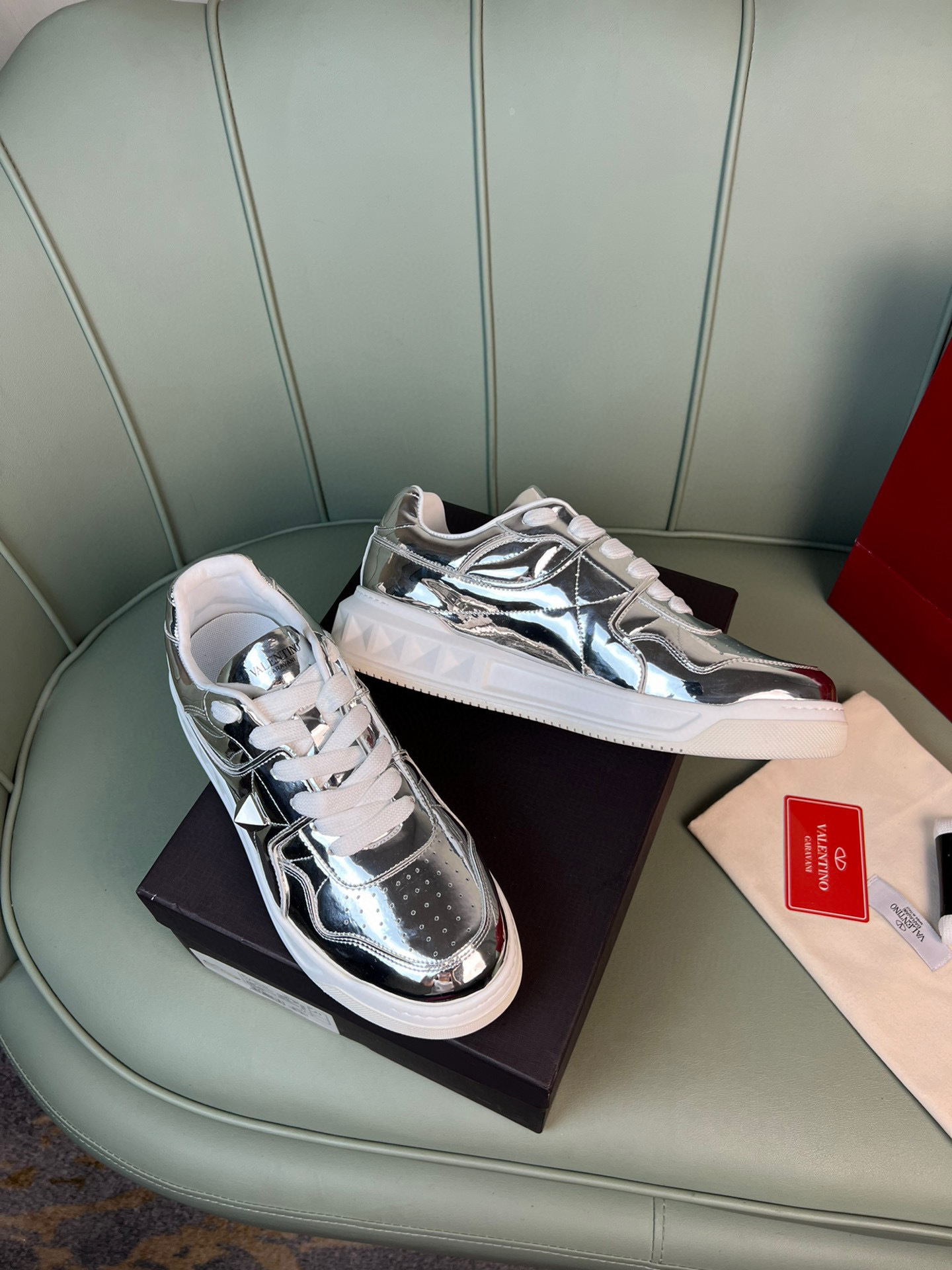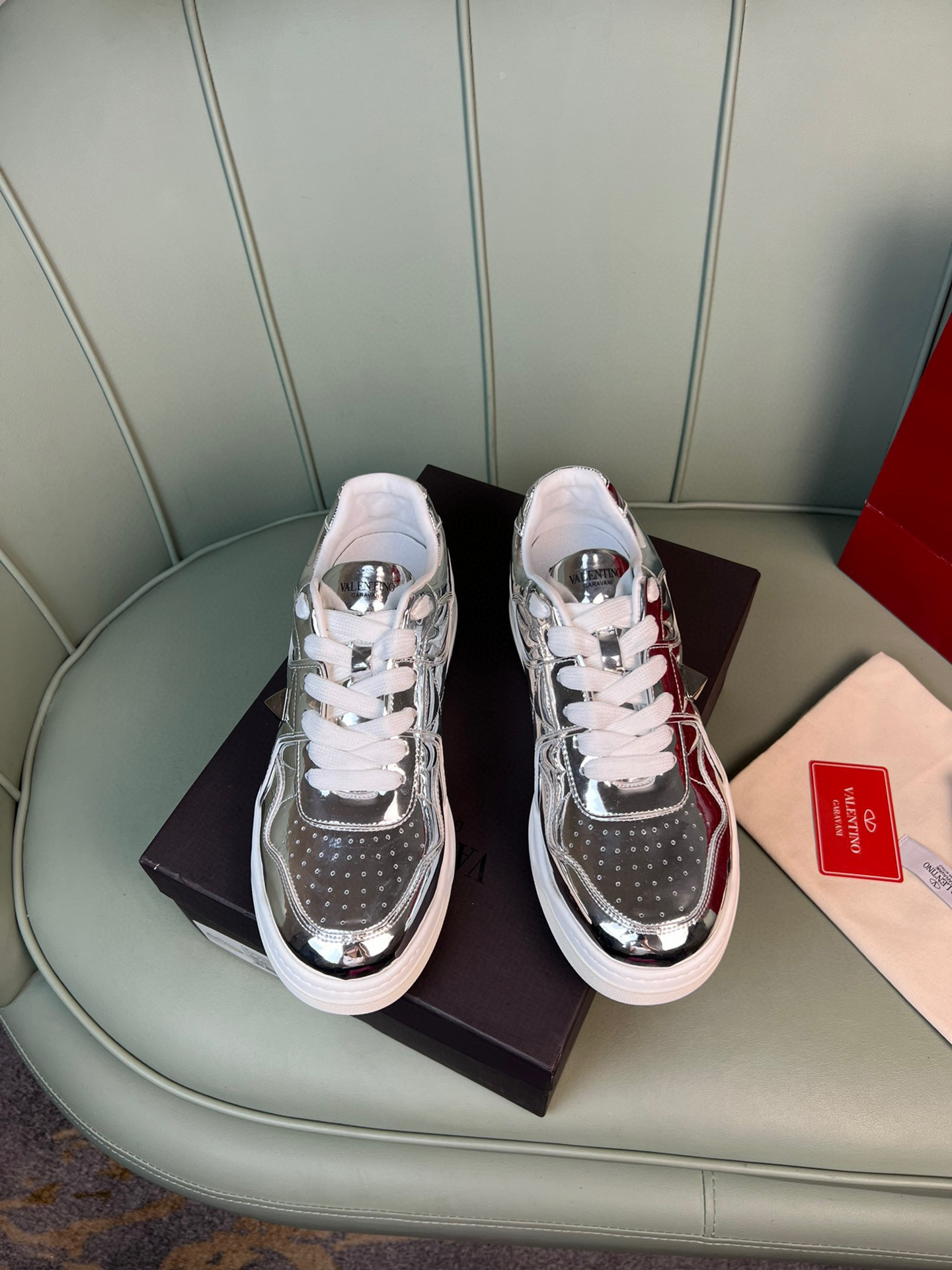 Step out in style with the Valentino Couples Sneakers, model 8063360. These eye-catching sneakers feature a sleek metallic silver finish that adds a modern touch to any outfit.