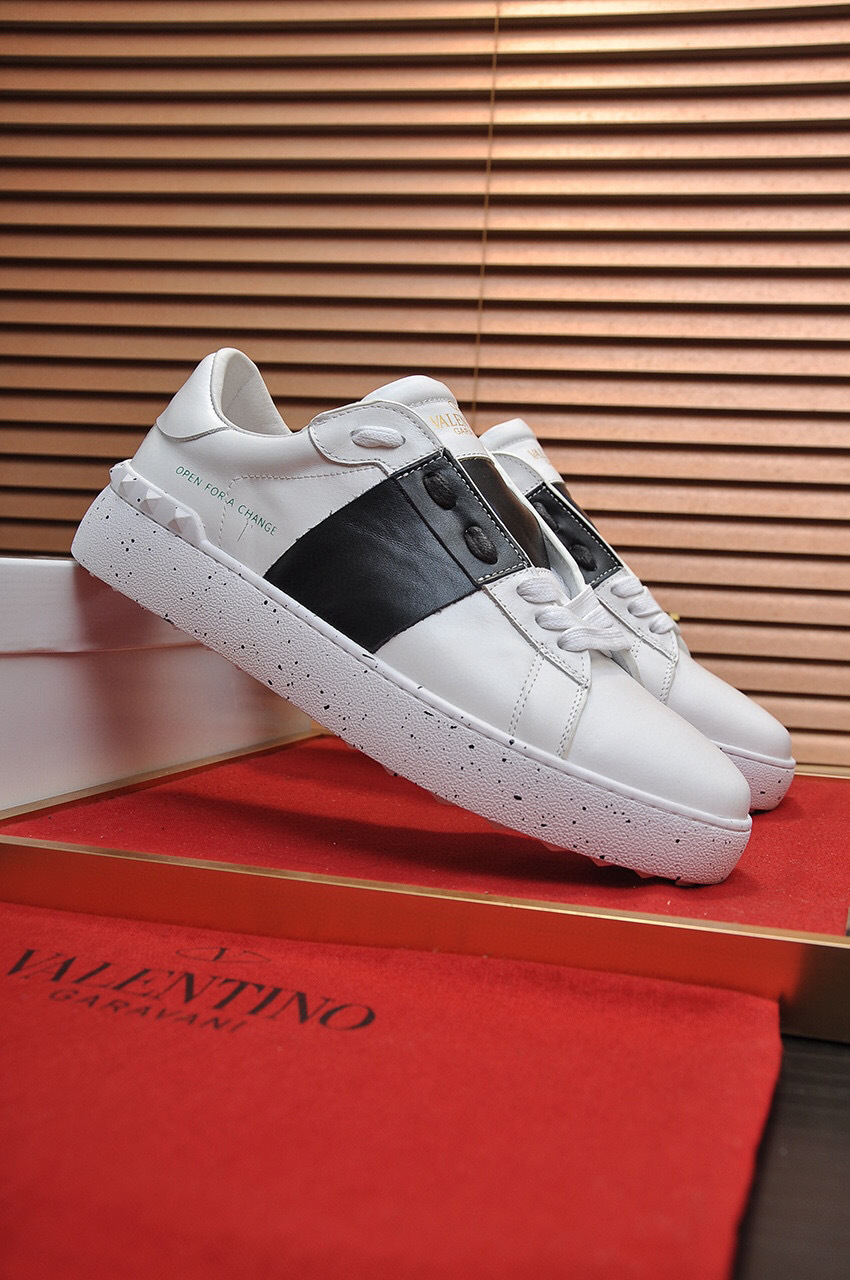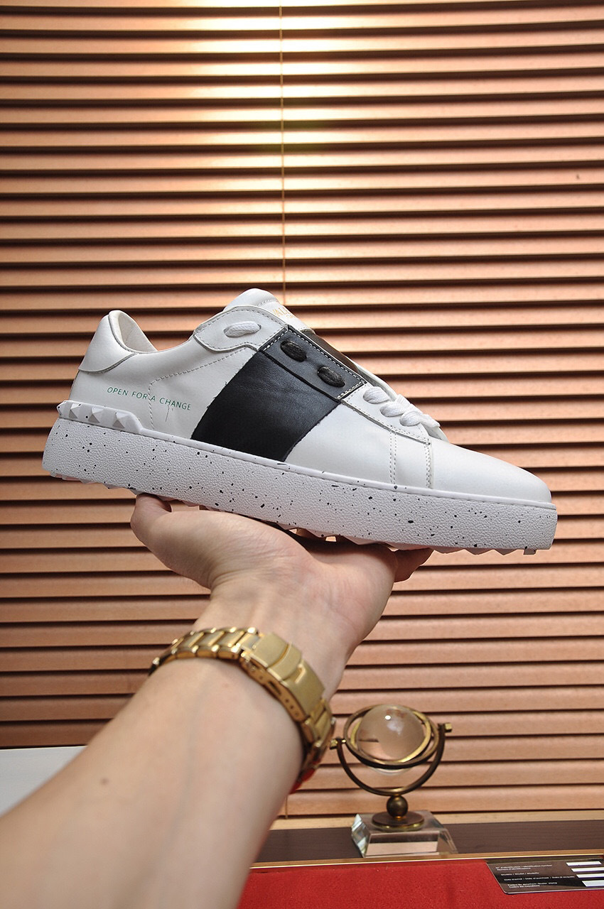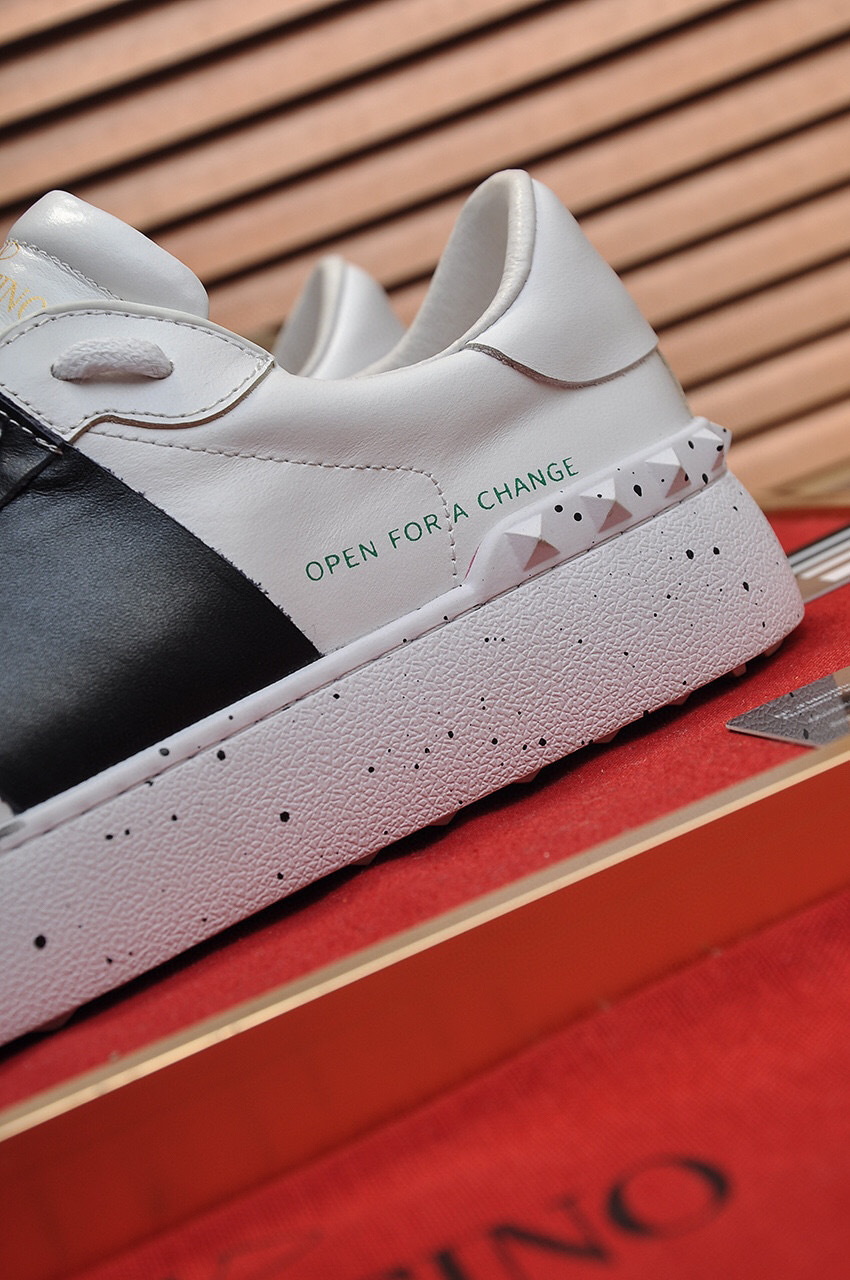 Step into style with these Valentino sneakers, designed for couples and available in sizes 35-44. The striking black and white color scheme is complemented by a bold ‘Open for a Change’ message, making a statement with every step.