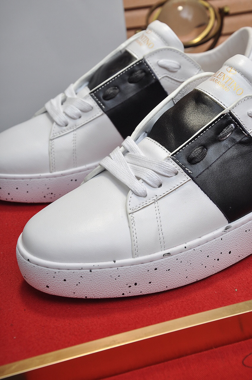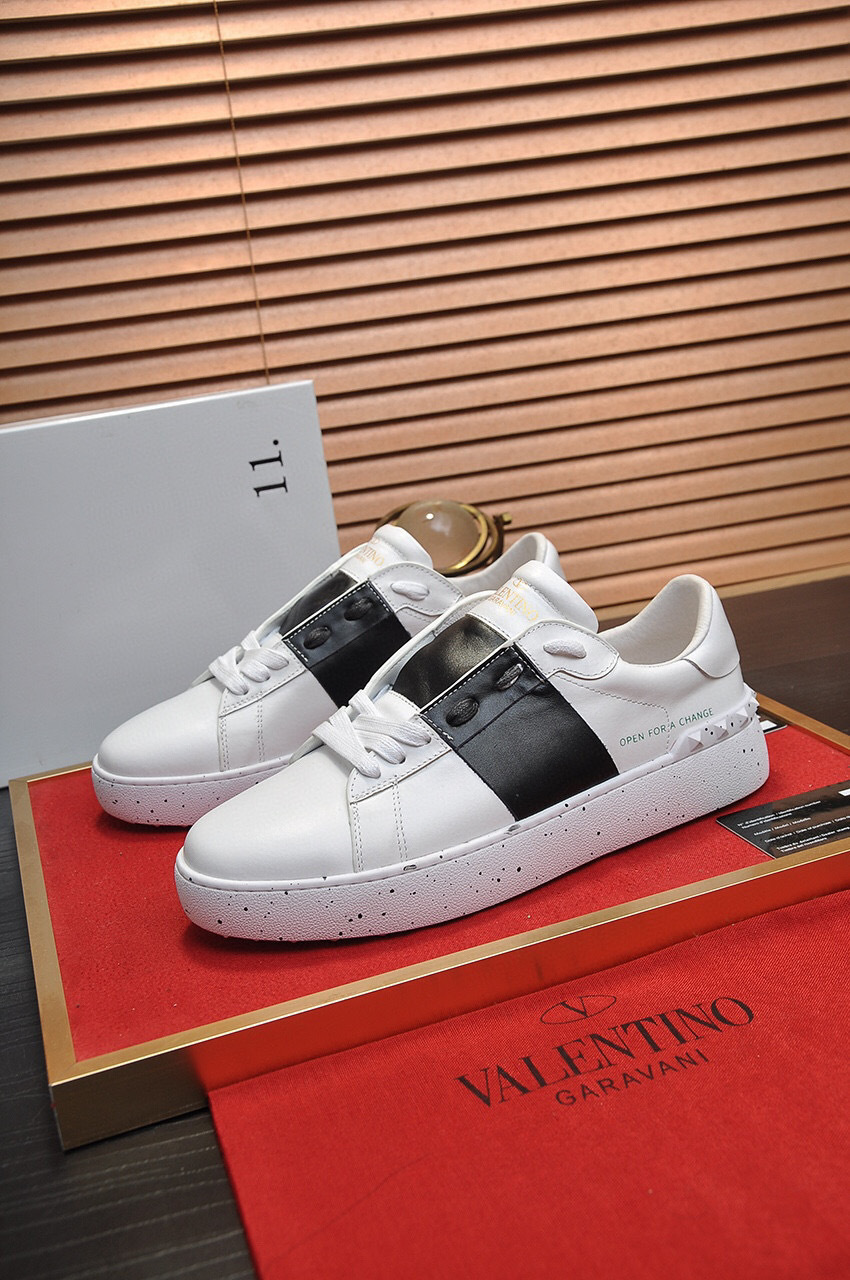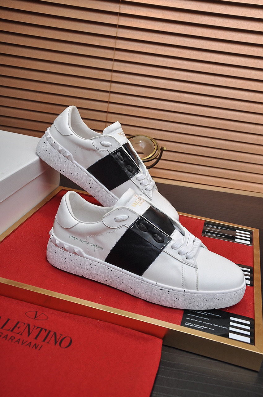 Step into style with these Valentino sneakers, designed for couples and available in sizes 35-44. The striking black and white color scheme is complemented by a bold ‘Open for a Change’ message, making a statement with every step.
