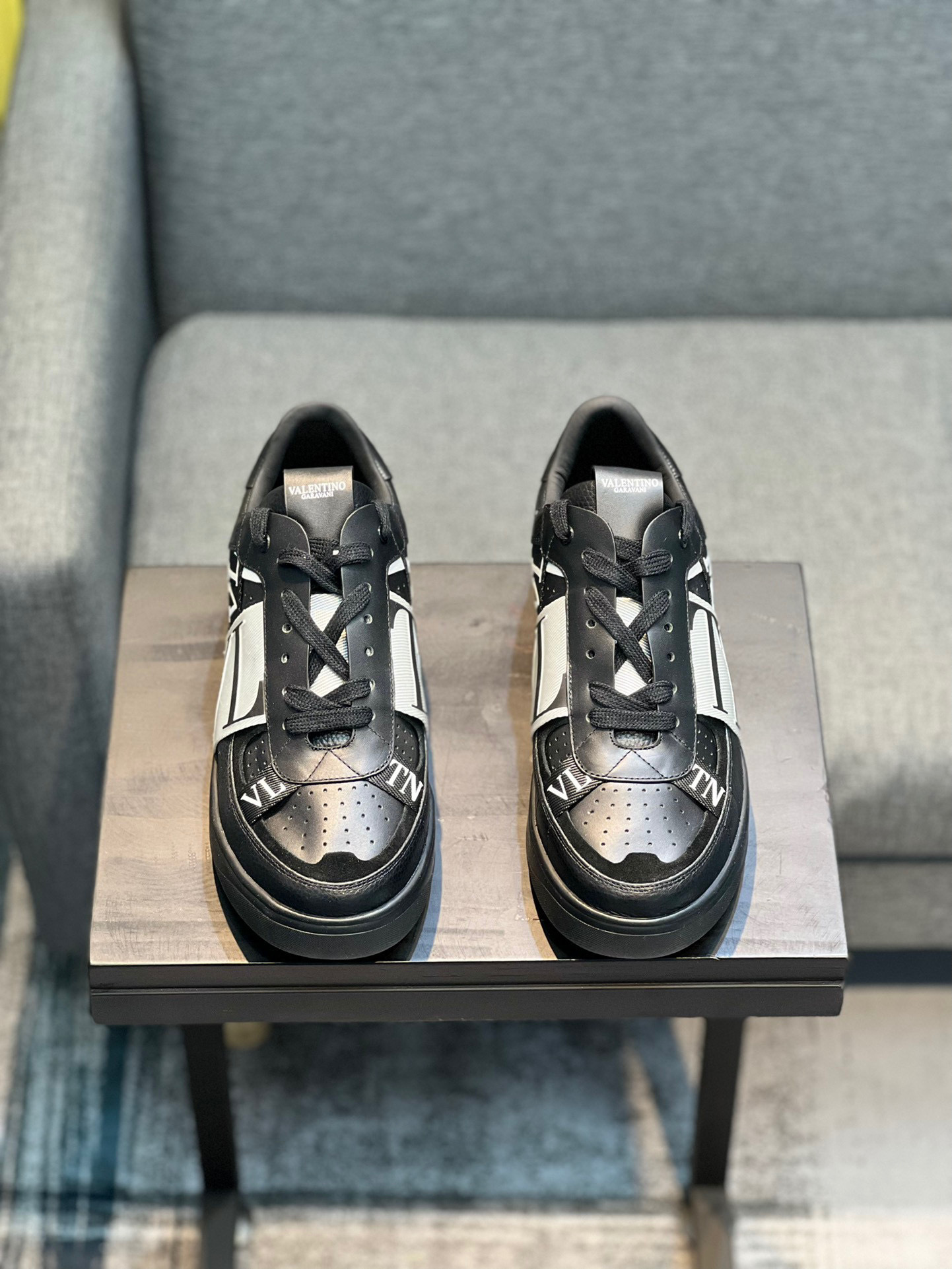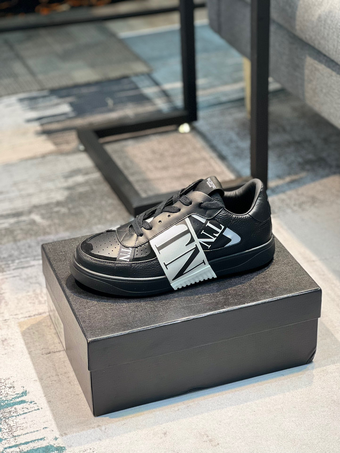 Step out in style with these Valentino unisex sneakers, designed for both comfort and fashion. Featuring a sleek black leather upper with striking white accents, these sneakers are perfect for any casual occasion.