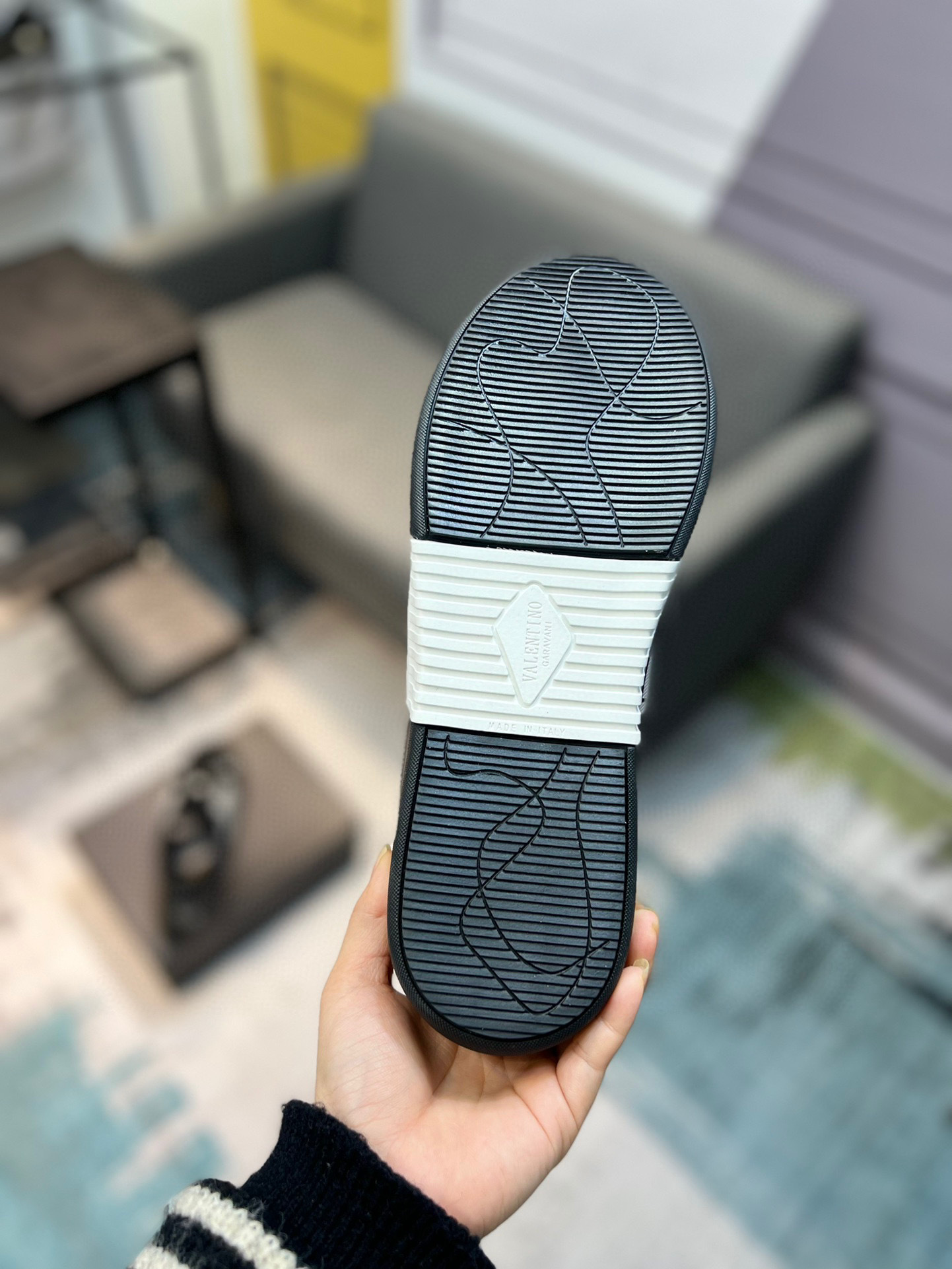 Available in sizes 38-44, they offer a versatile fit for various foot sizes. The unique design showcases the iconic Valentino branding, making them a standout addition to your footwear collection.