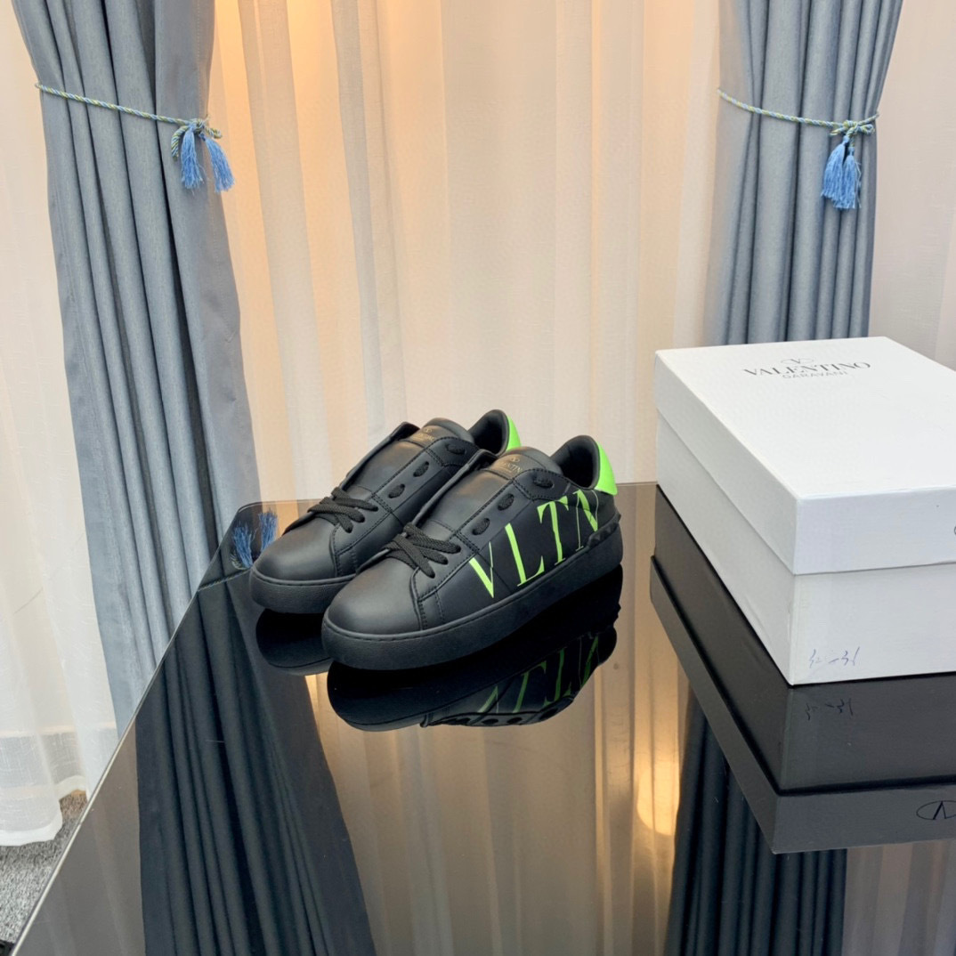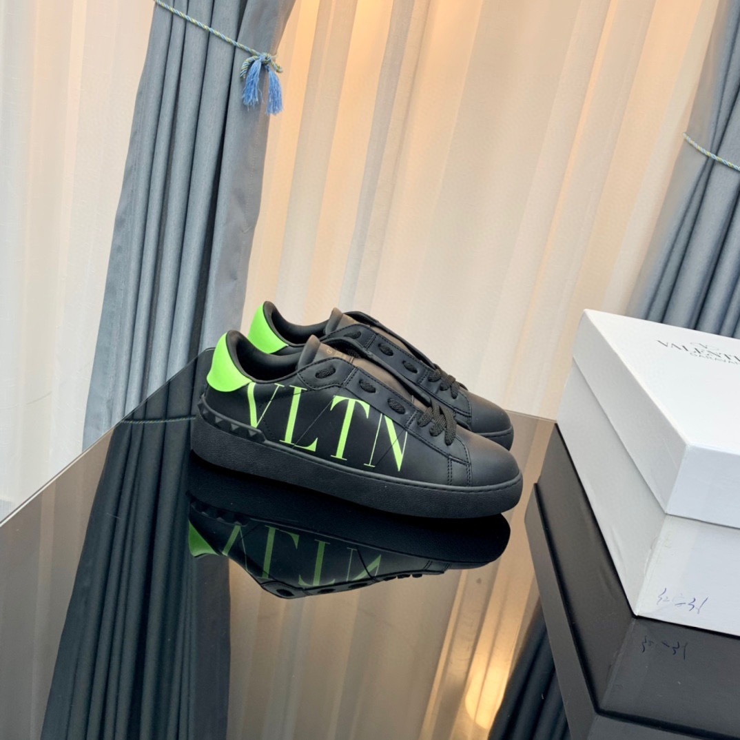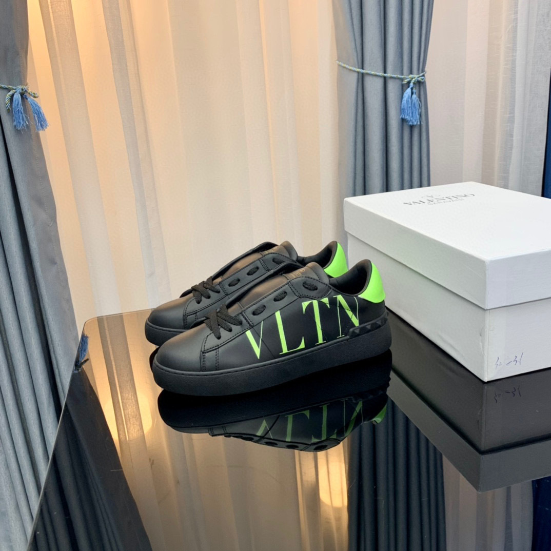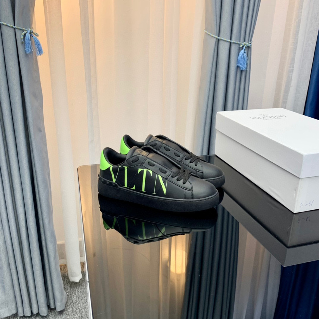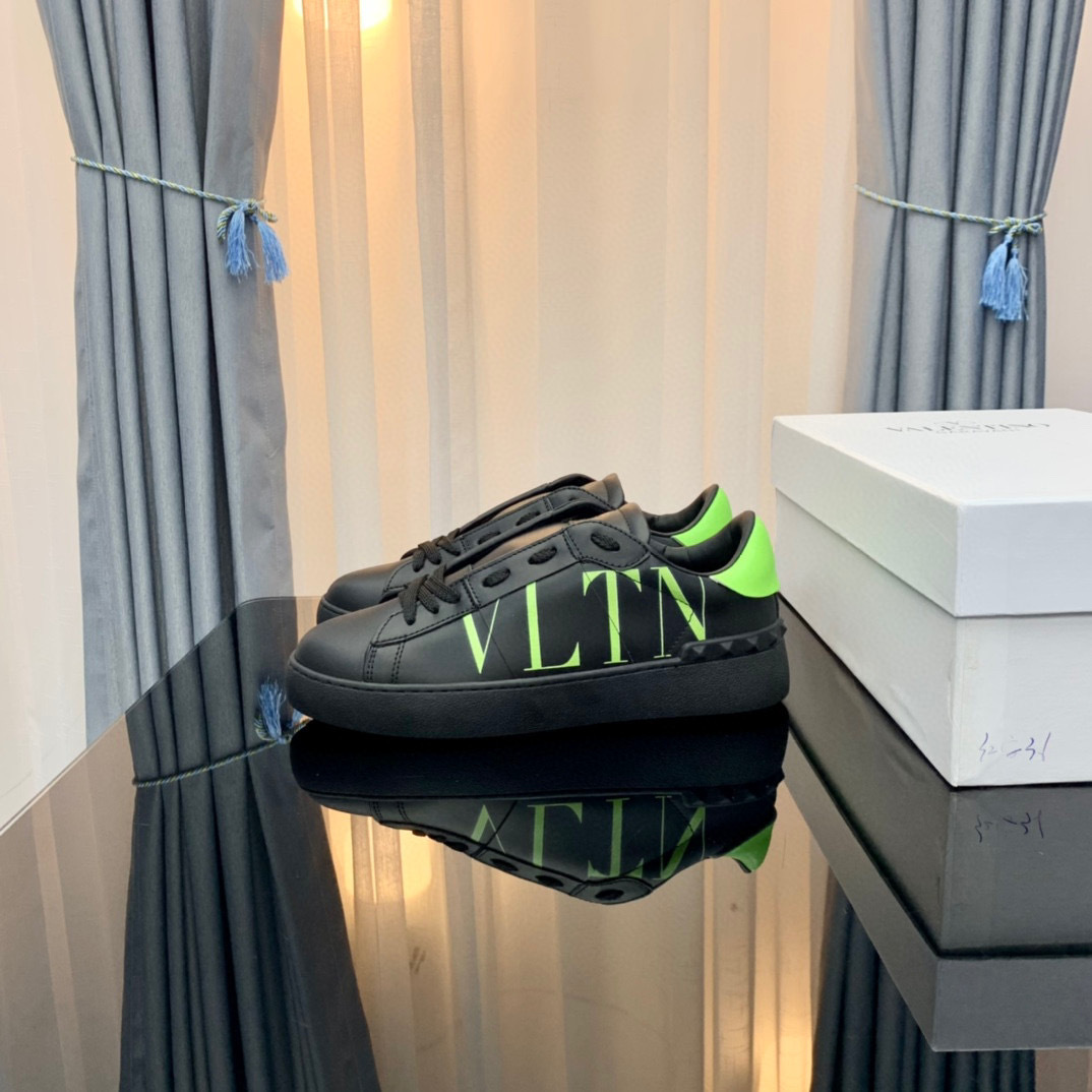 Step into luxury with the Valentino VLTN black sneakers, designed for both comfort and style. These sneakers feature a striking neon green logo that adds a modern touch to a classic silhouette.