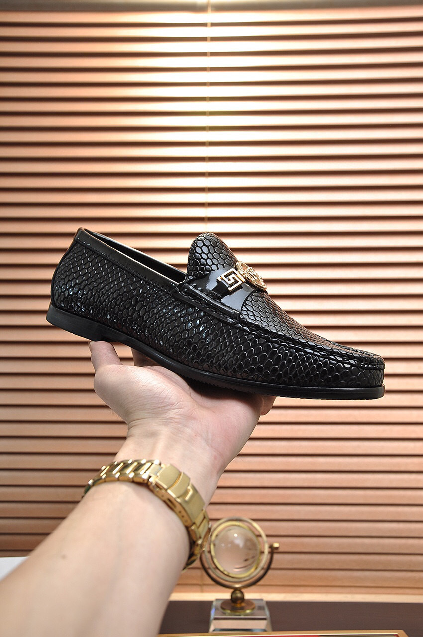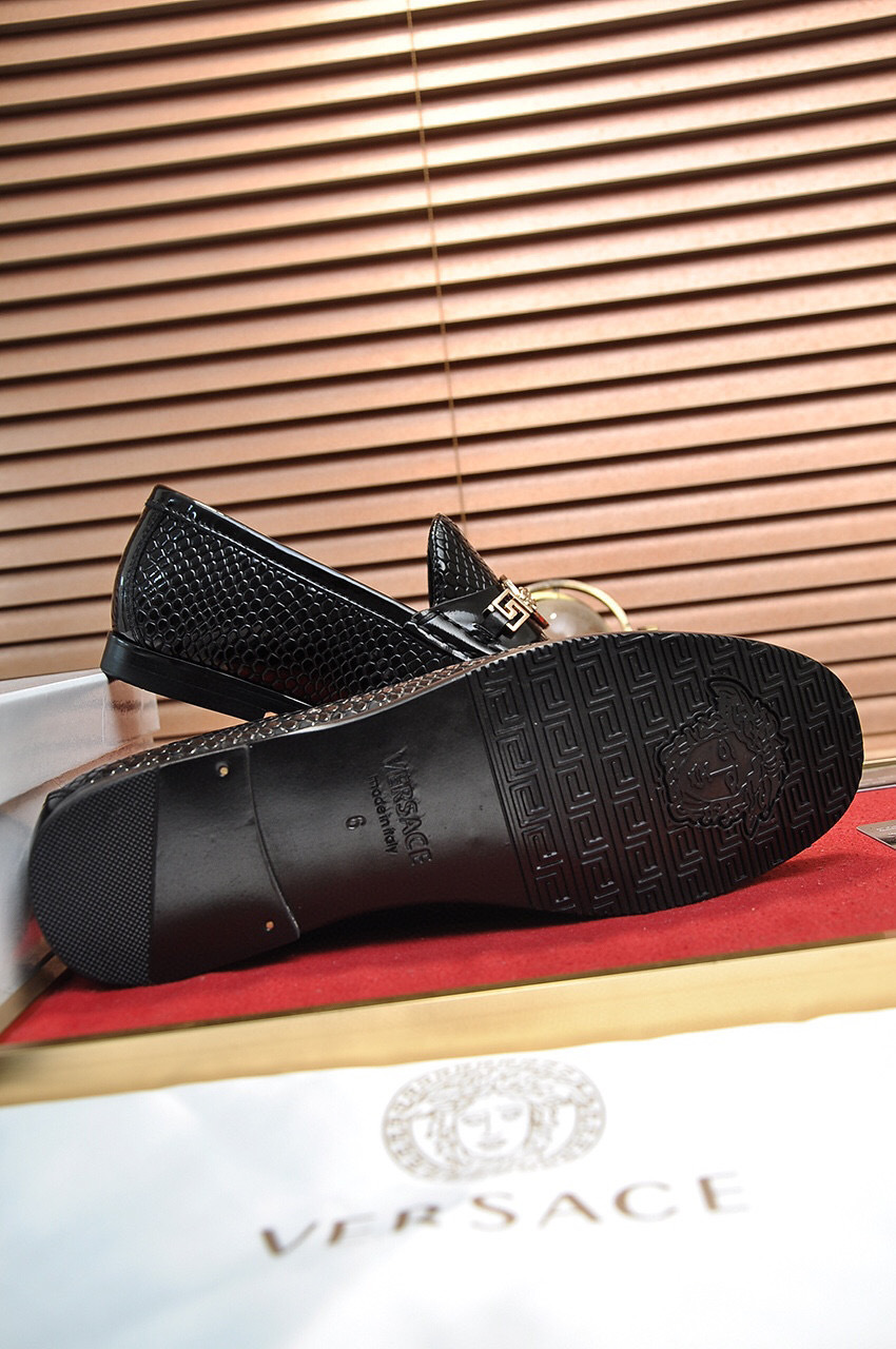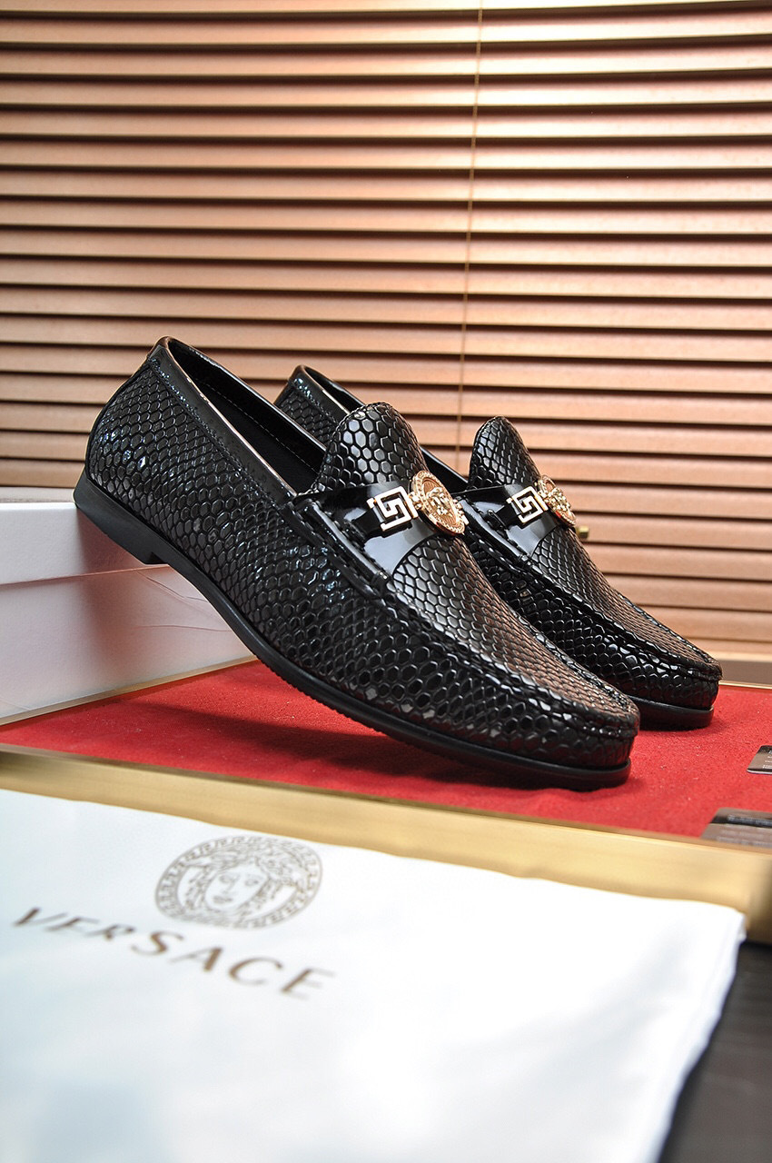 Step into luxury with the Versace Black Leather Loafers, designed for both comfort and sophistication. These loafers feature a unique textured finish that adds a touch of elegance to any outfit.
