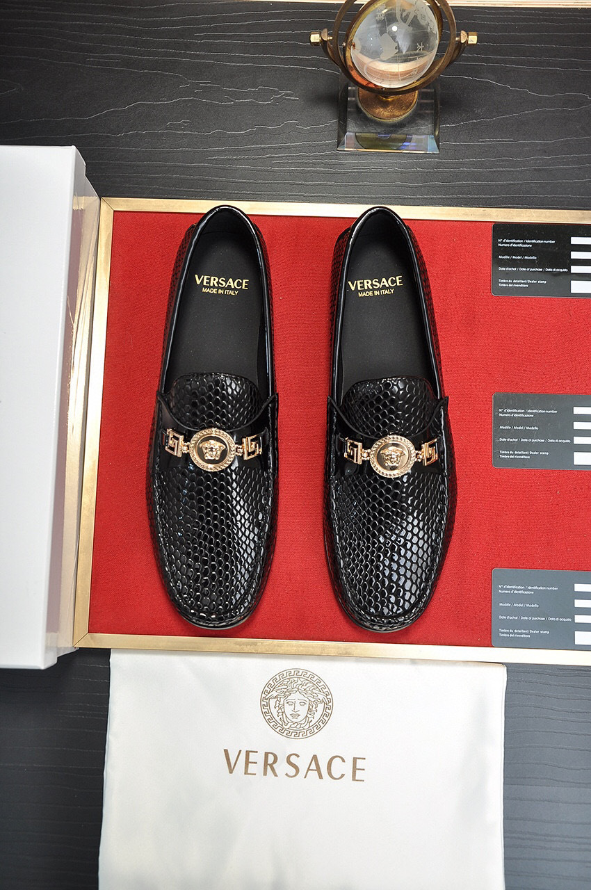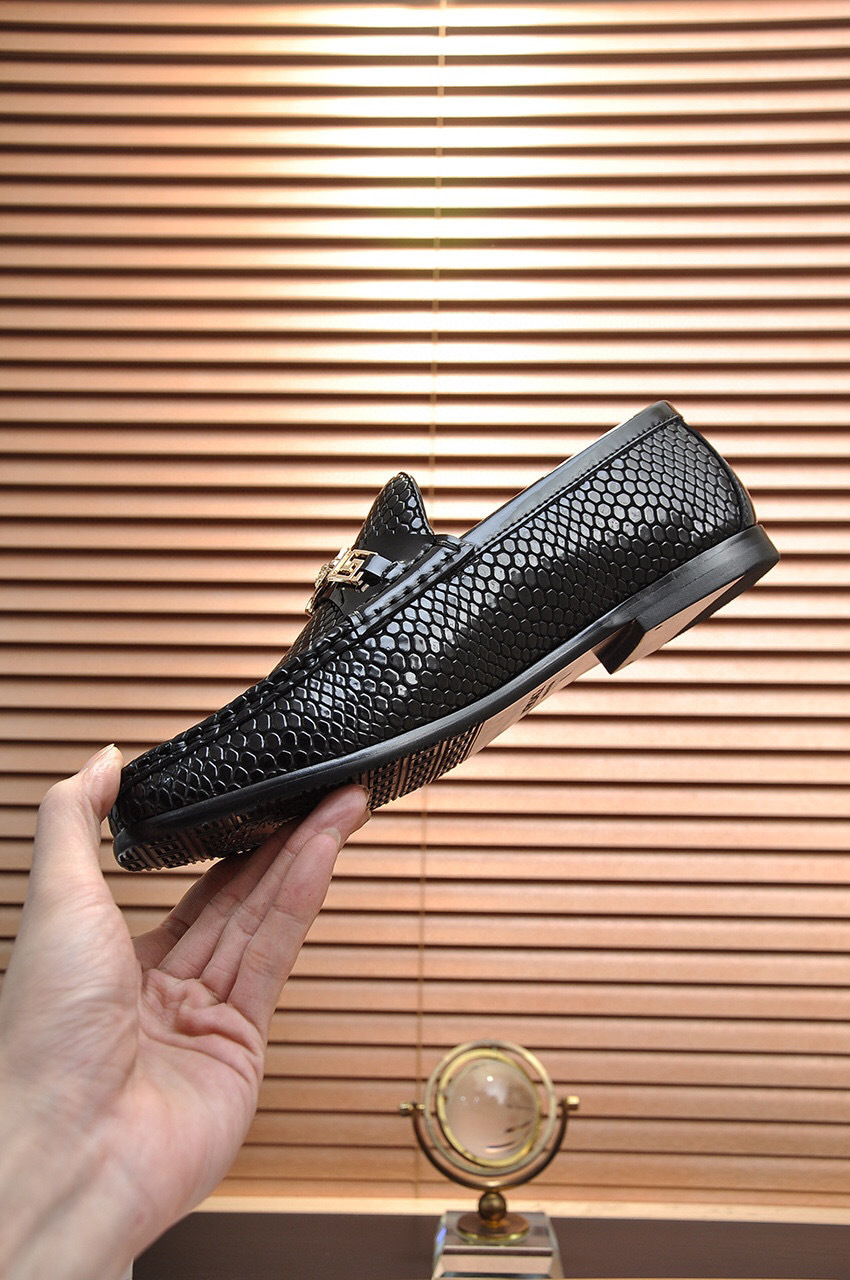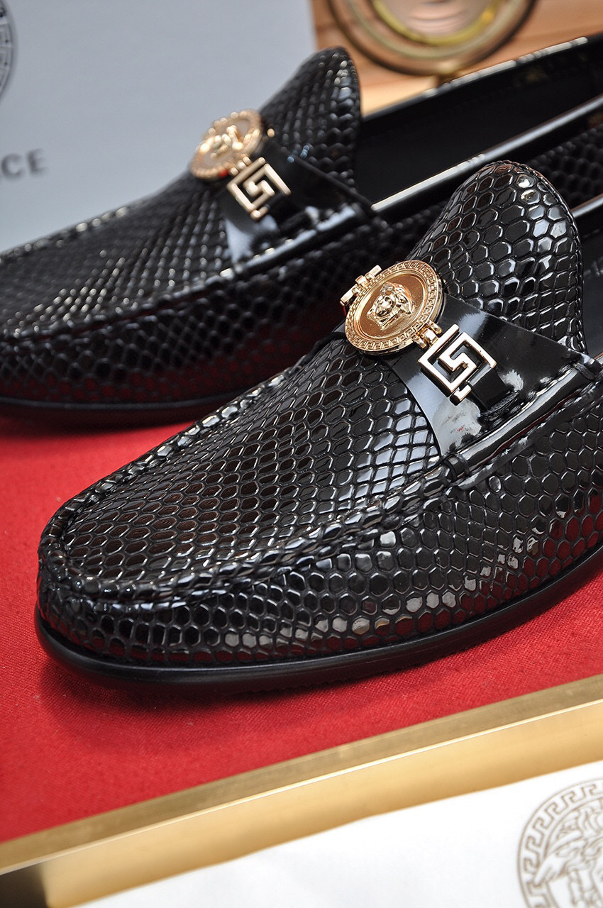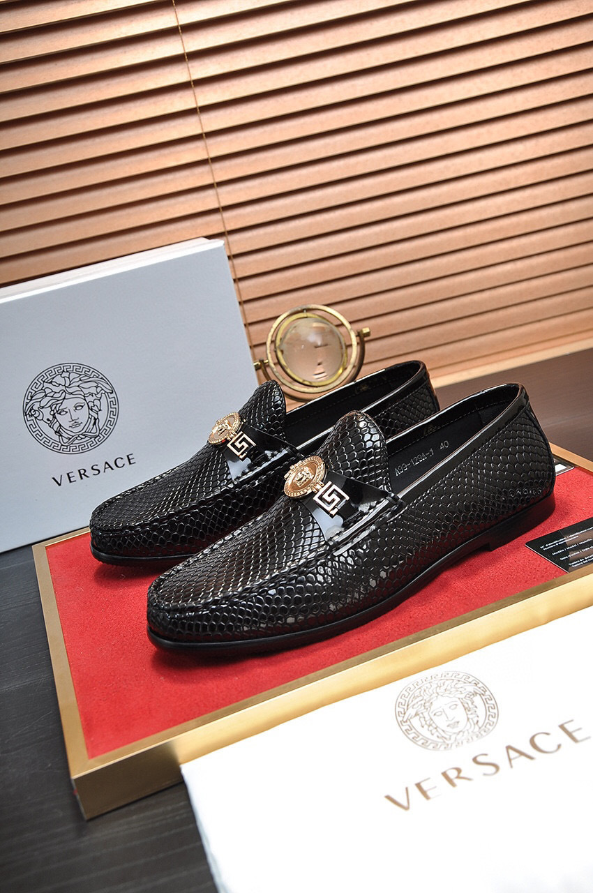 Step into luxury with the Versace Black Leather Loafers, designed for both comfort and sophistication. These loafers feature a unique textured finish that adds a touch of elegance to any outfit.