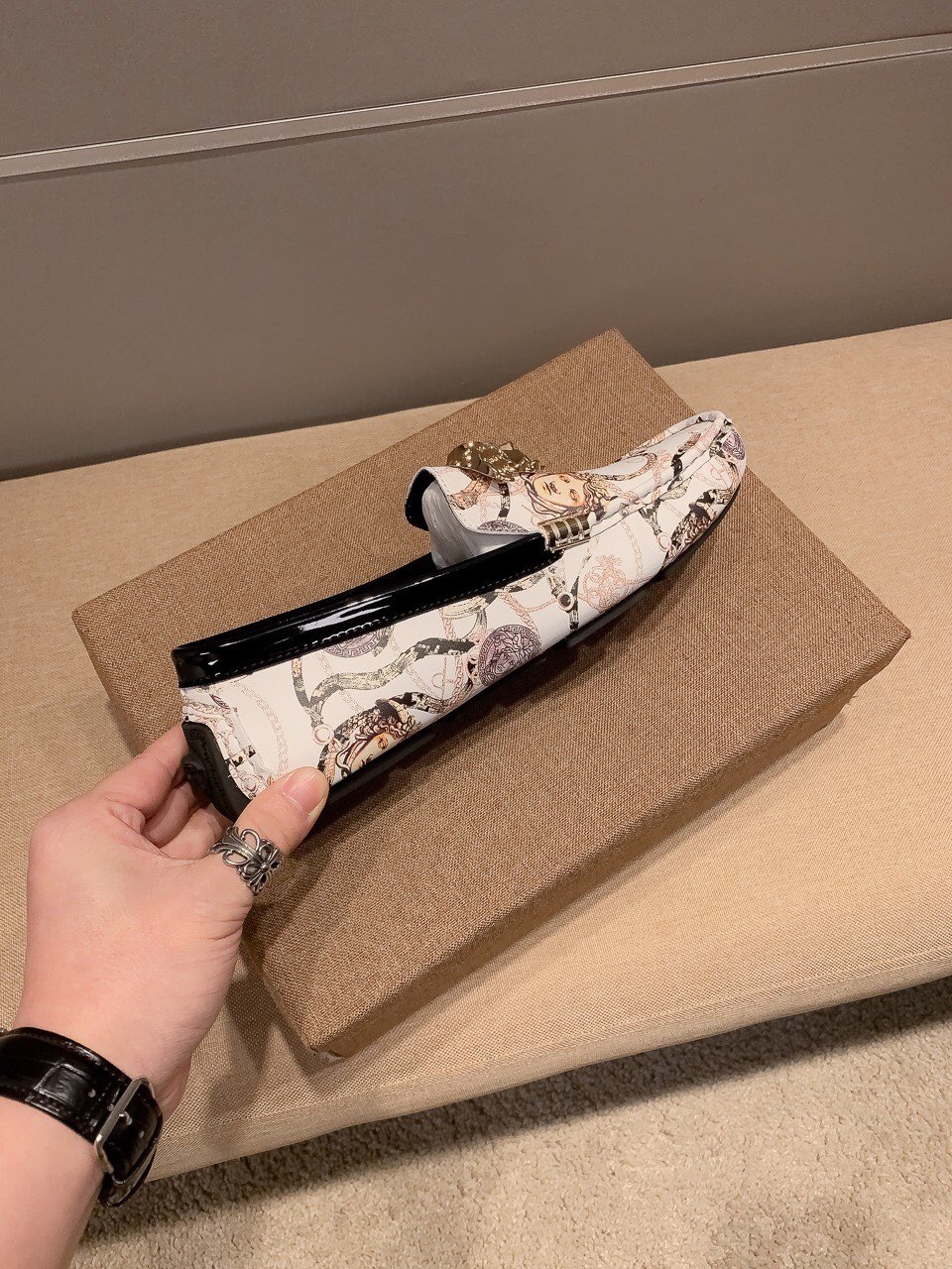 Available in sizes 38 to 44, these loafers are crafted with high-quality materials and showcase the iconic Versace logo. The slip-on design ensures ease of wear, while the stylish pattern adds a touch of sophistication to your outfit.