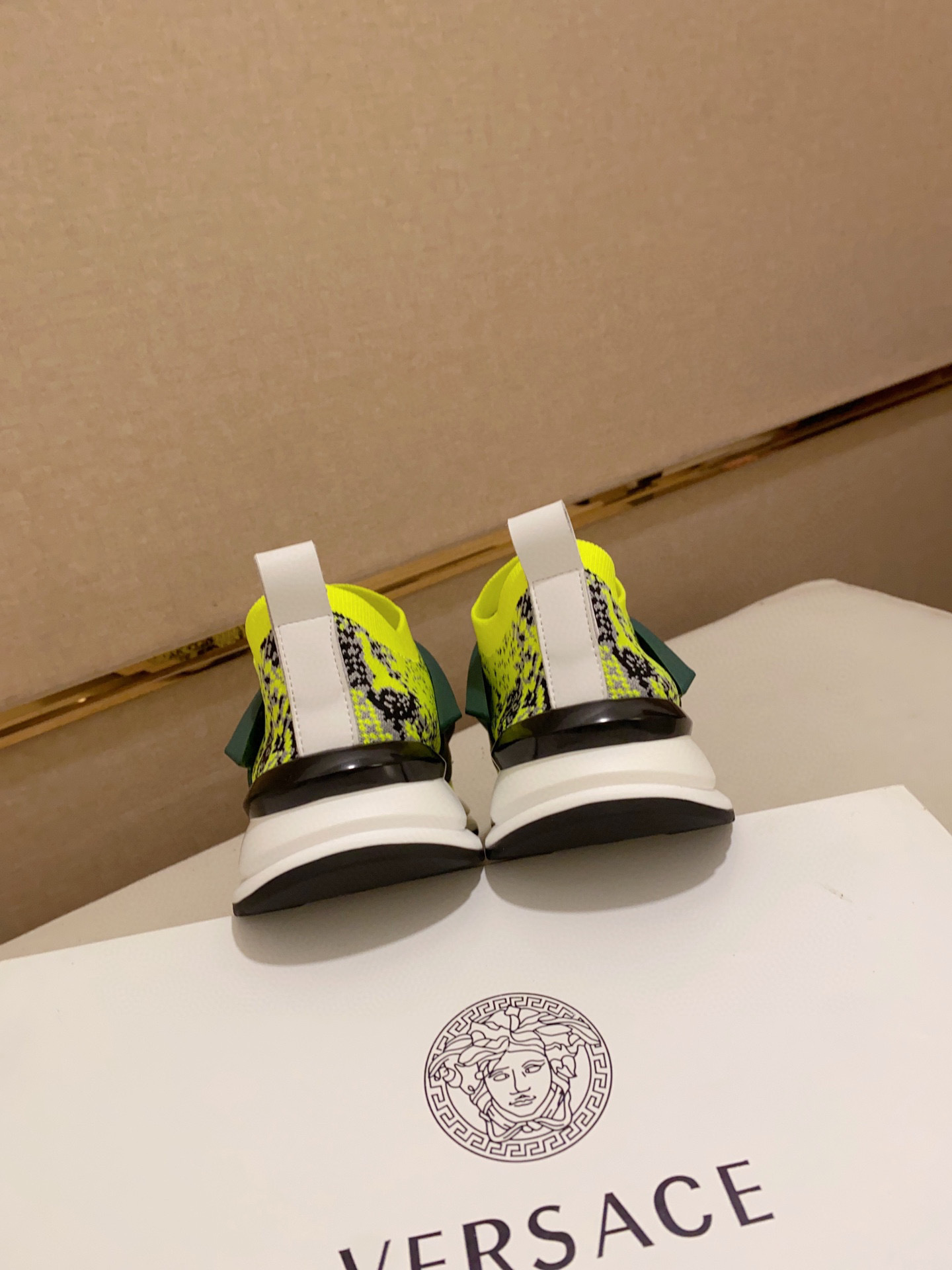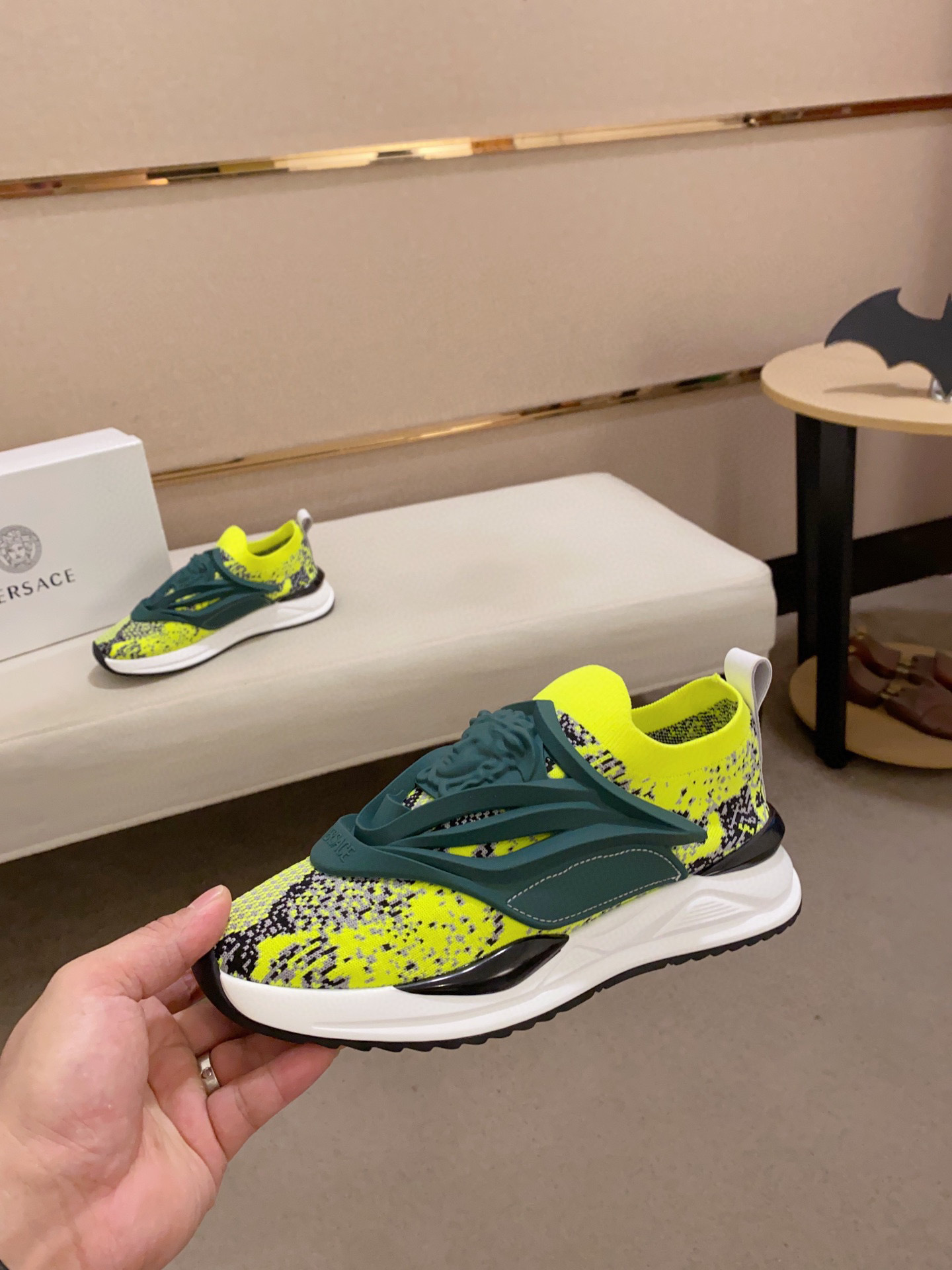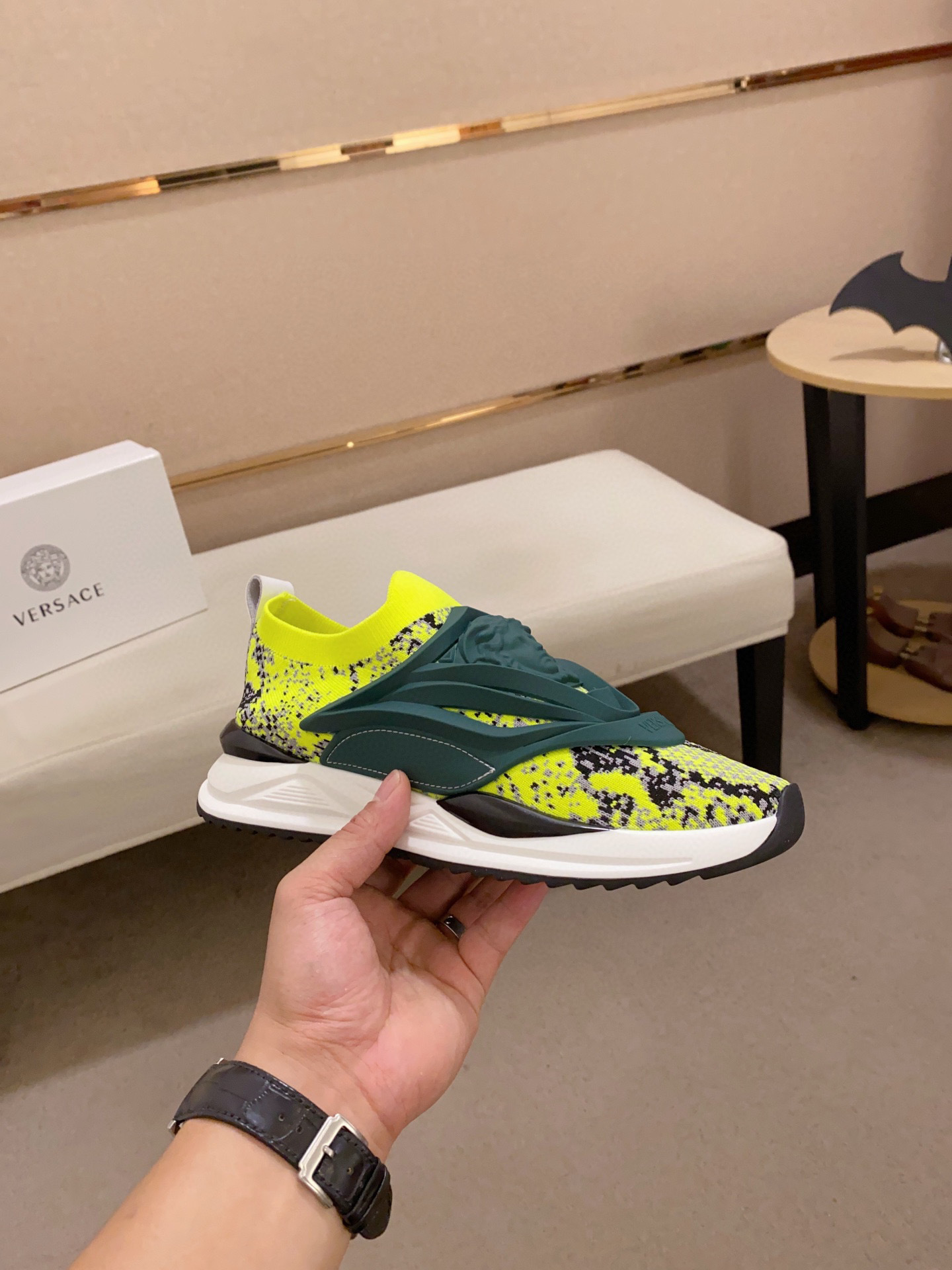 Step into luxury with these Versace casual shoes, designed for both comfort and style. Featuring a vibrant yellow and green color scheme, these shoes are perfect for making a statement while enjoying everyday activities.