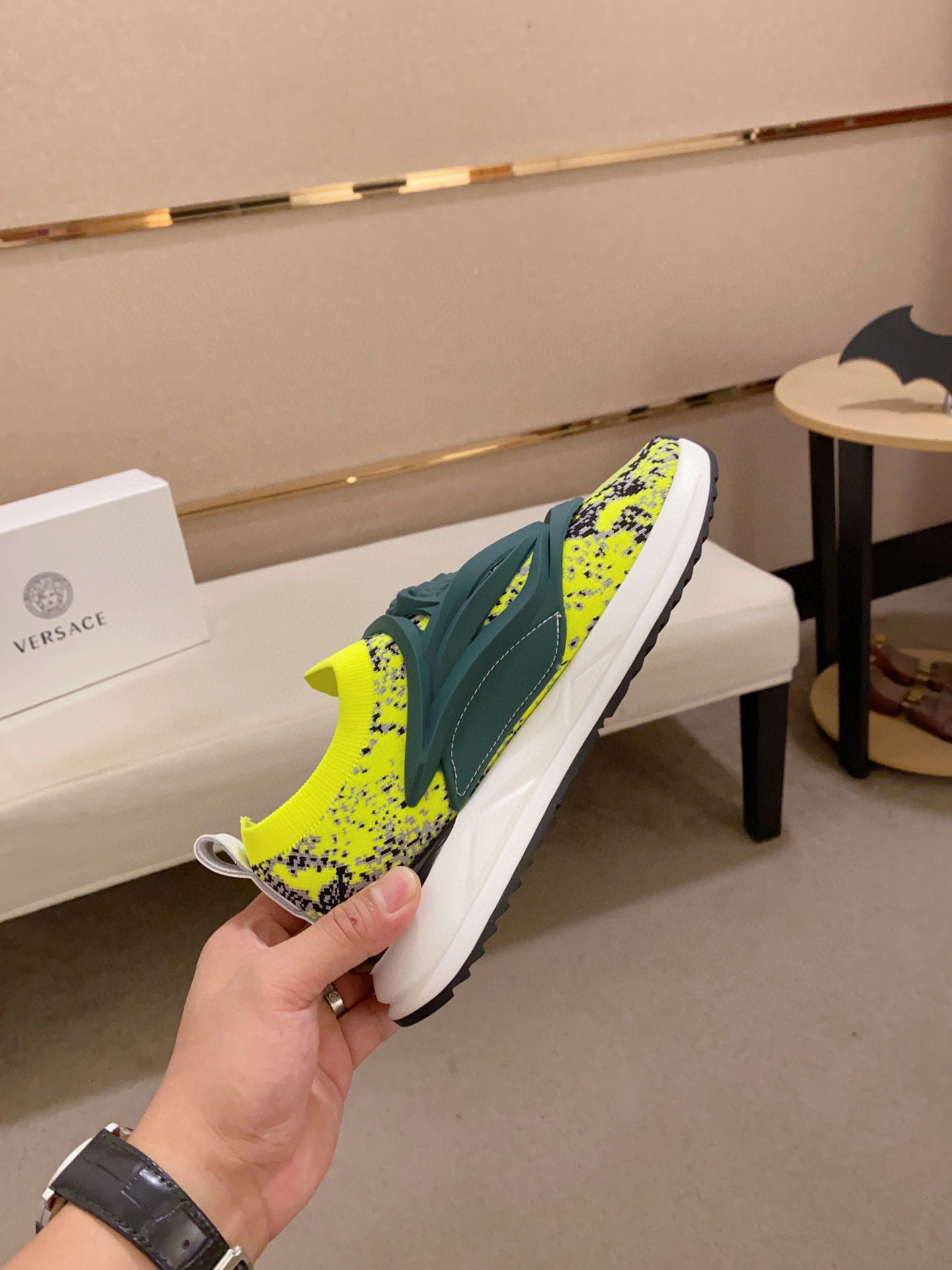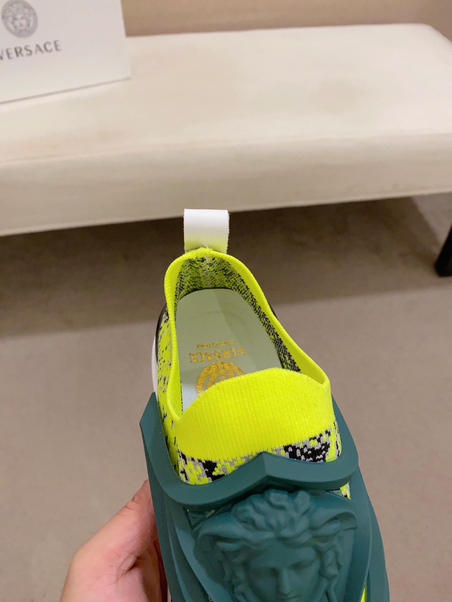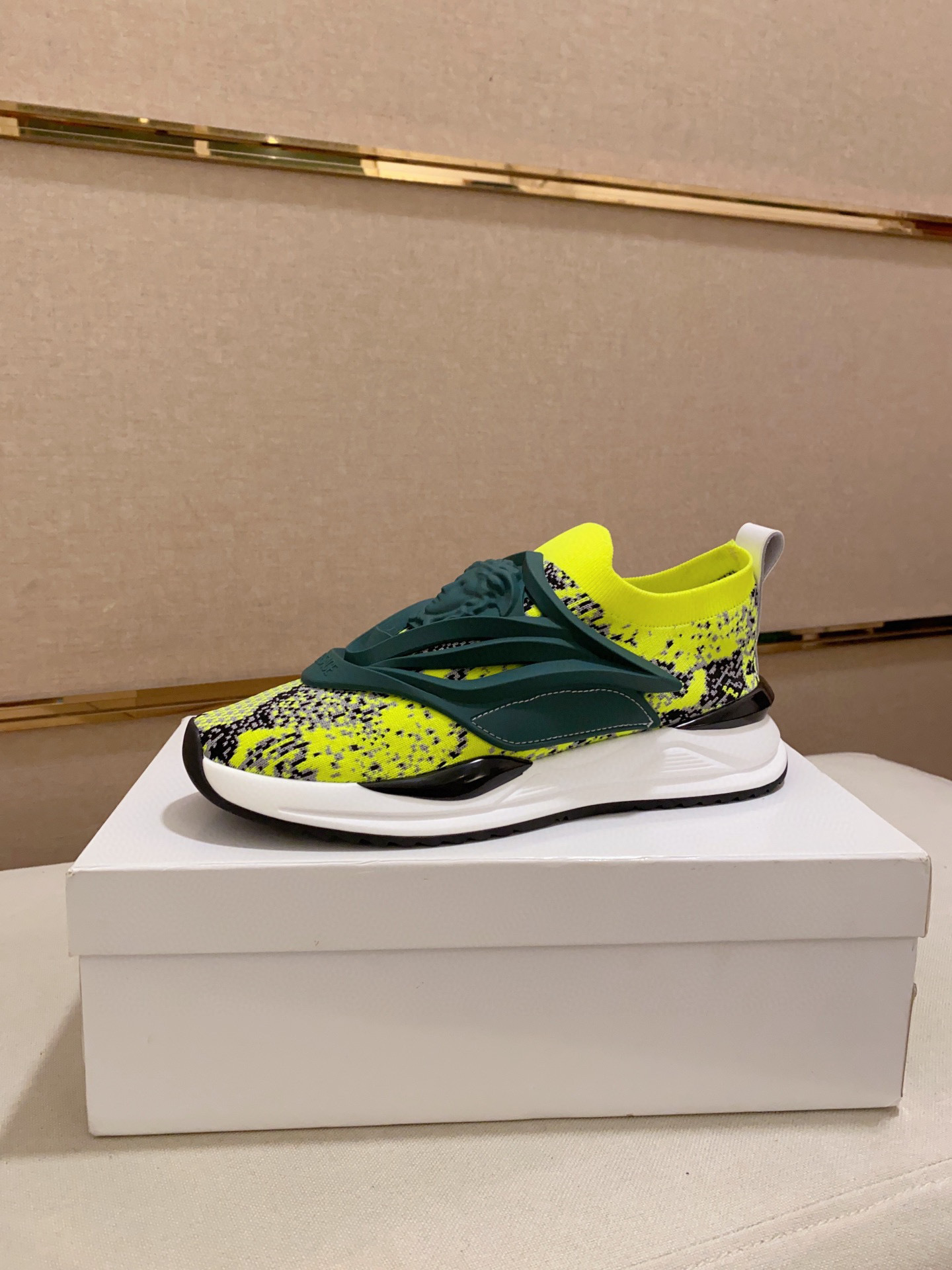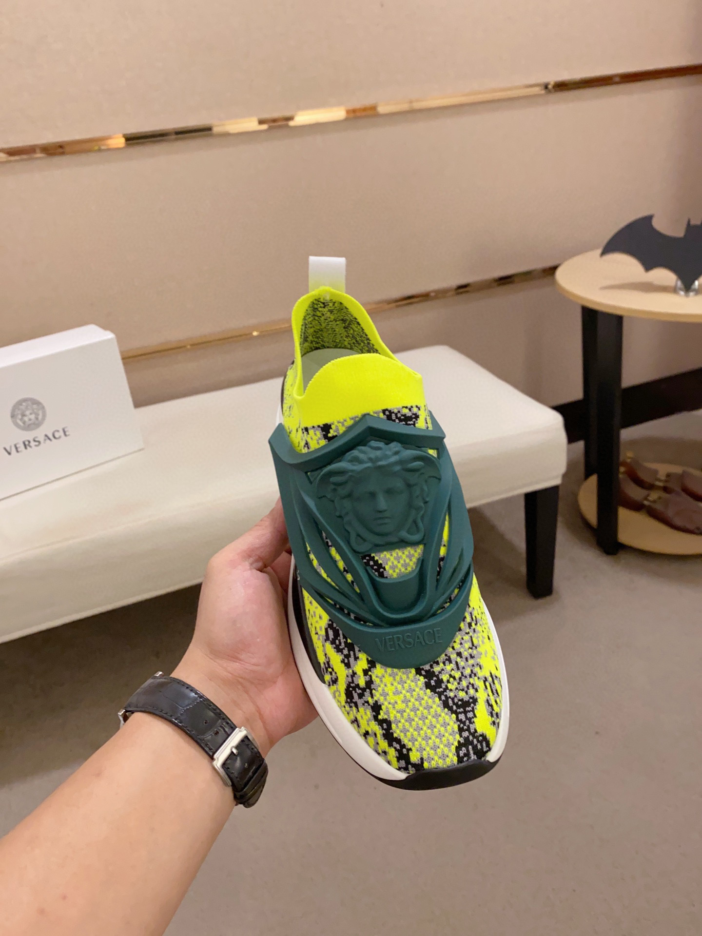 Step into luxury with these Versace casual shoes, designed for both comfort and style. Featuring a vibrant yellow and green color scheme, these shoes are perfect for making a statement while enjoying everyday activities.