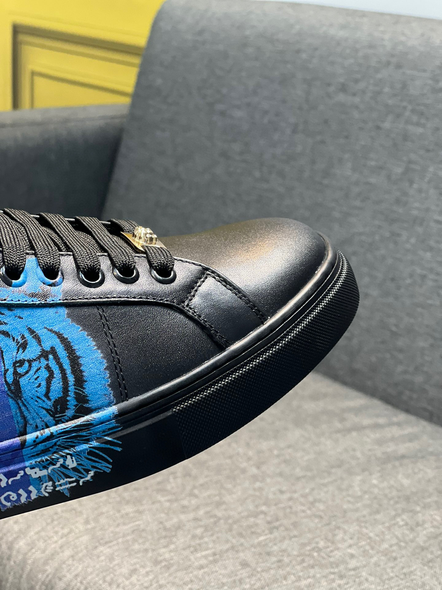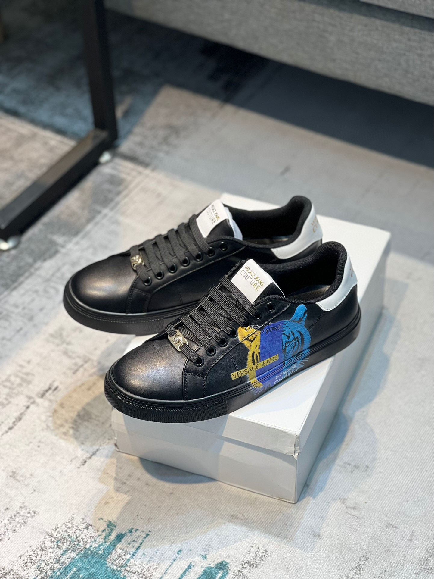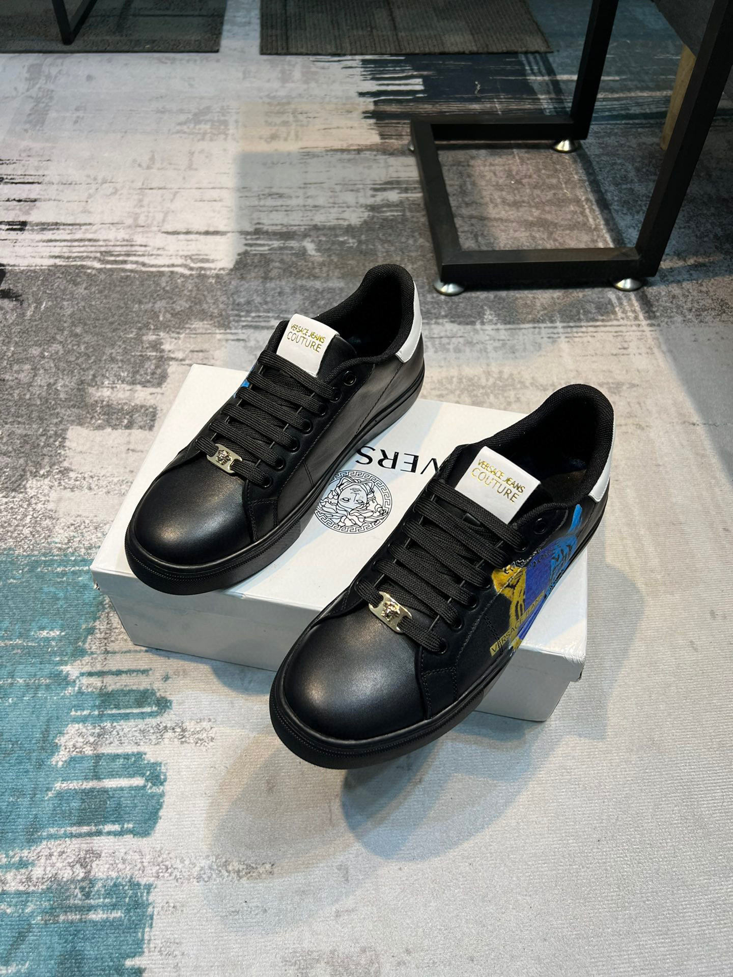 Step out in style with these Versace casual shoes, available in sizes 38-44. The shoes boast a sleek black design complemented by vibrant artistic accents, making them a standout addition to your wardrobe.