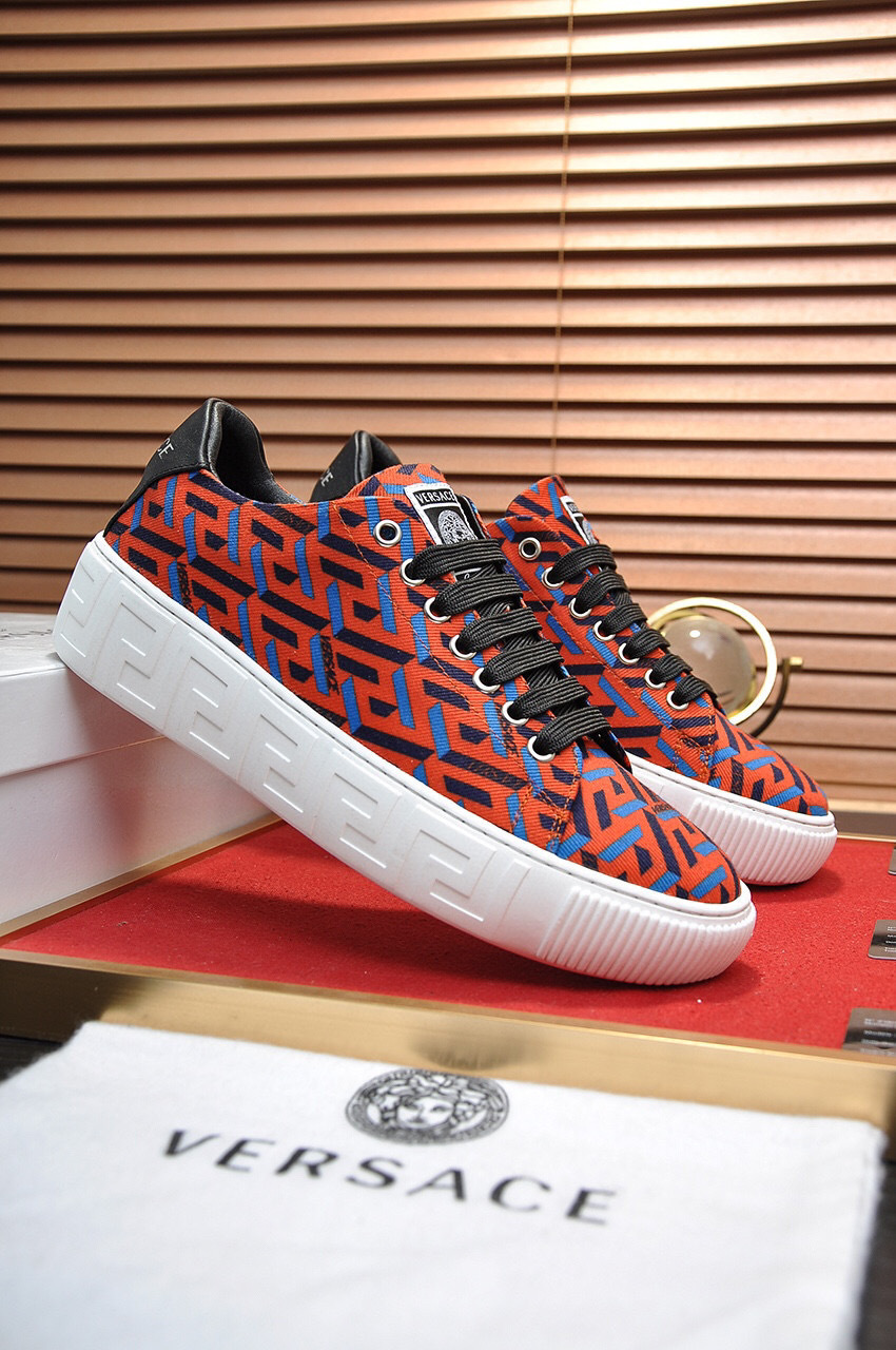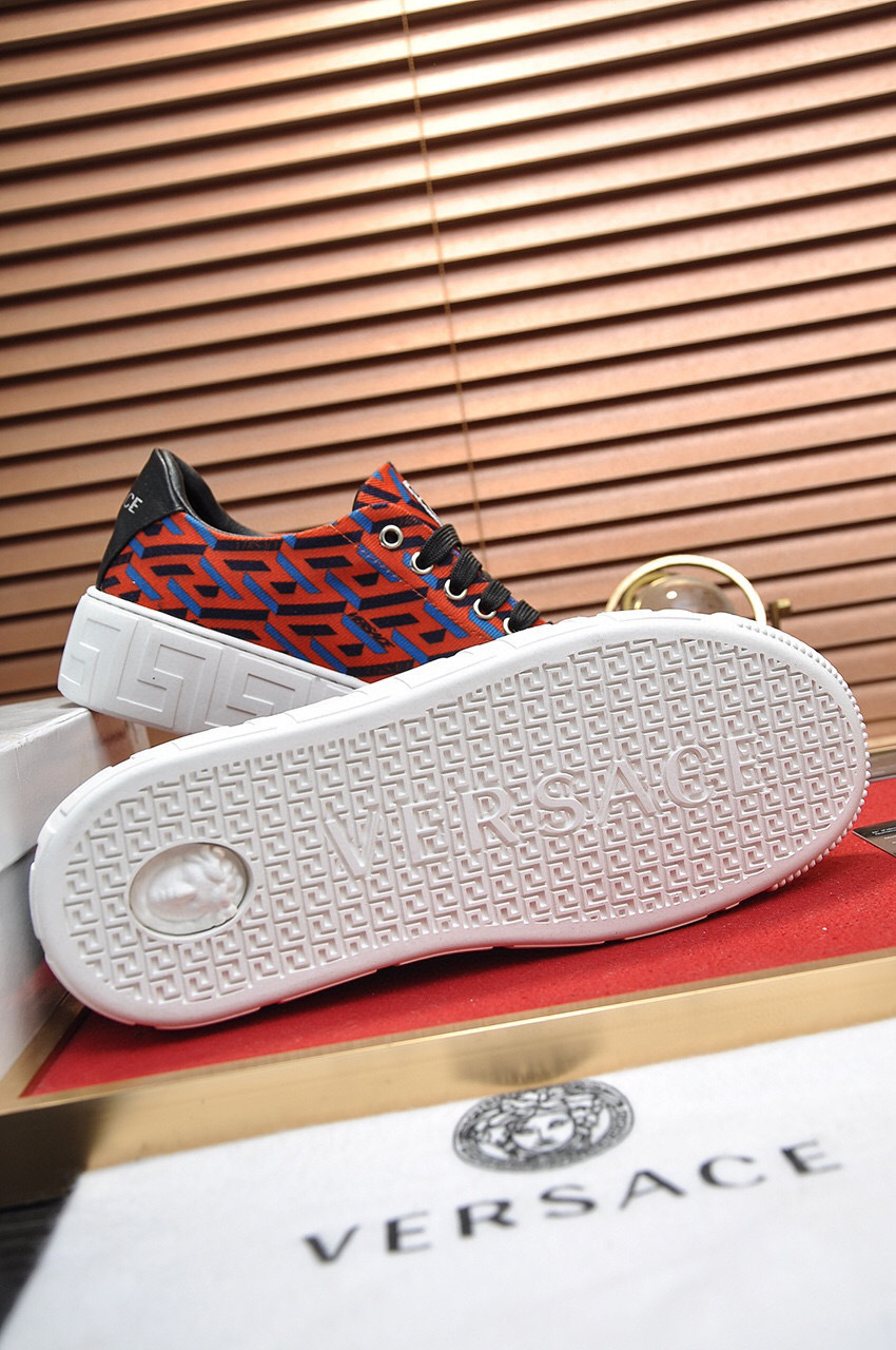 Step out in style with the Versace Casual Shoes, designed for both comfort and fashion. Available in sizes 38-44, these shoes showcase a striking red and blue geometric pattern that makes a bold statement.