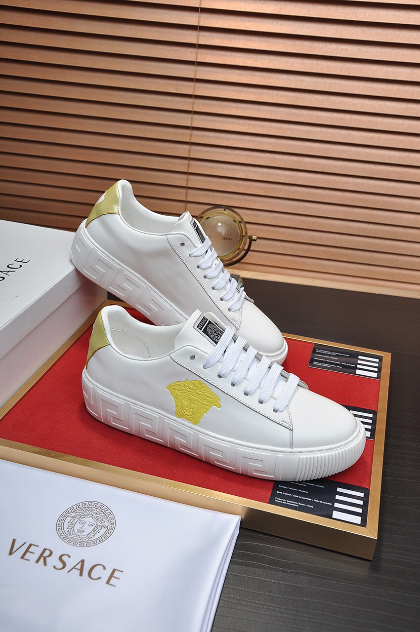 Step into luxury with these Versace casual shoes, available in sizes 38-44. Crafted from high-quality materials, these shoes combine comfort with a bold aesthetic.