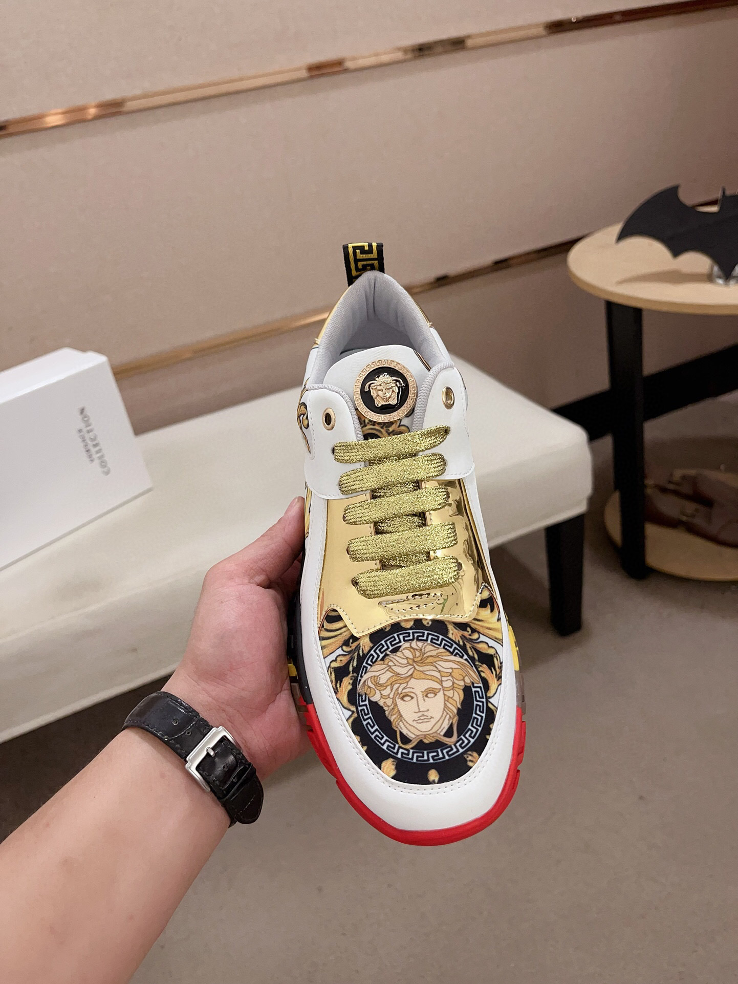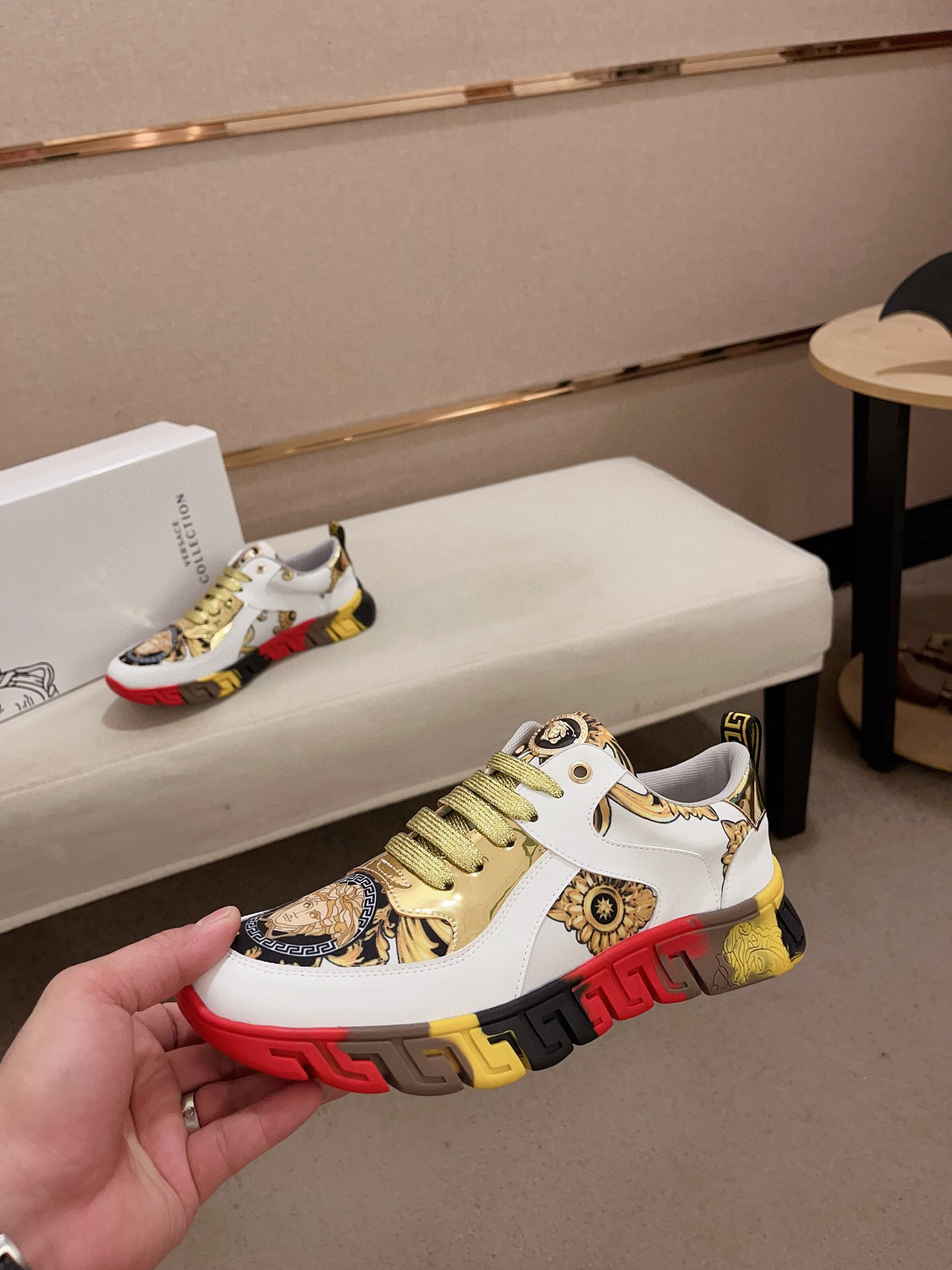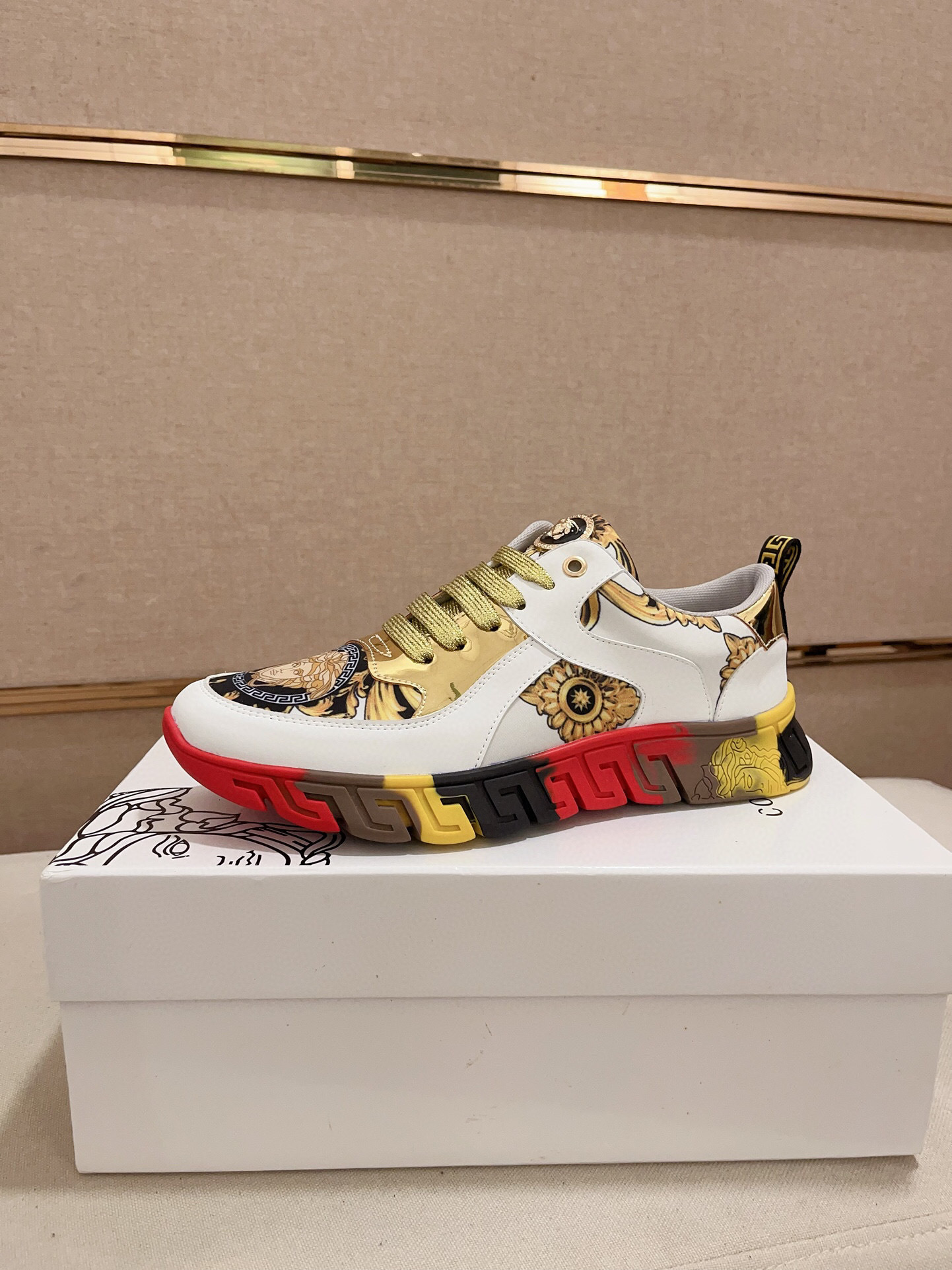 Step into luxury with the Versace Casual Sneakers, designed for those who appreciate bold fashion. These sneakers feature a striking combination of colors and intricate patterns that make a statement.