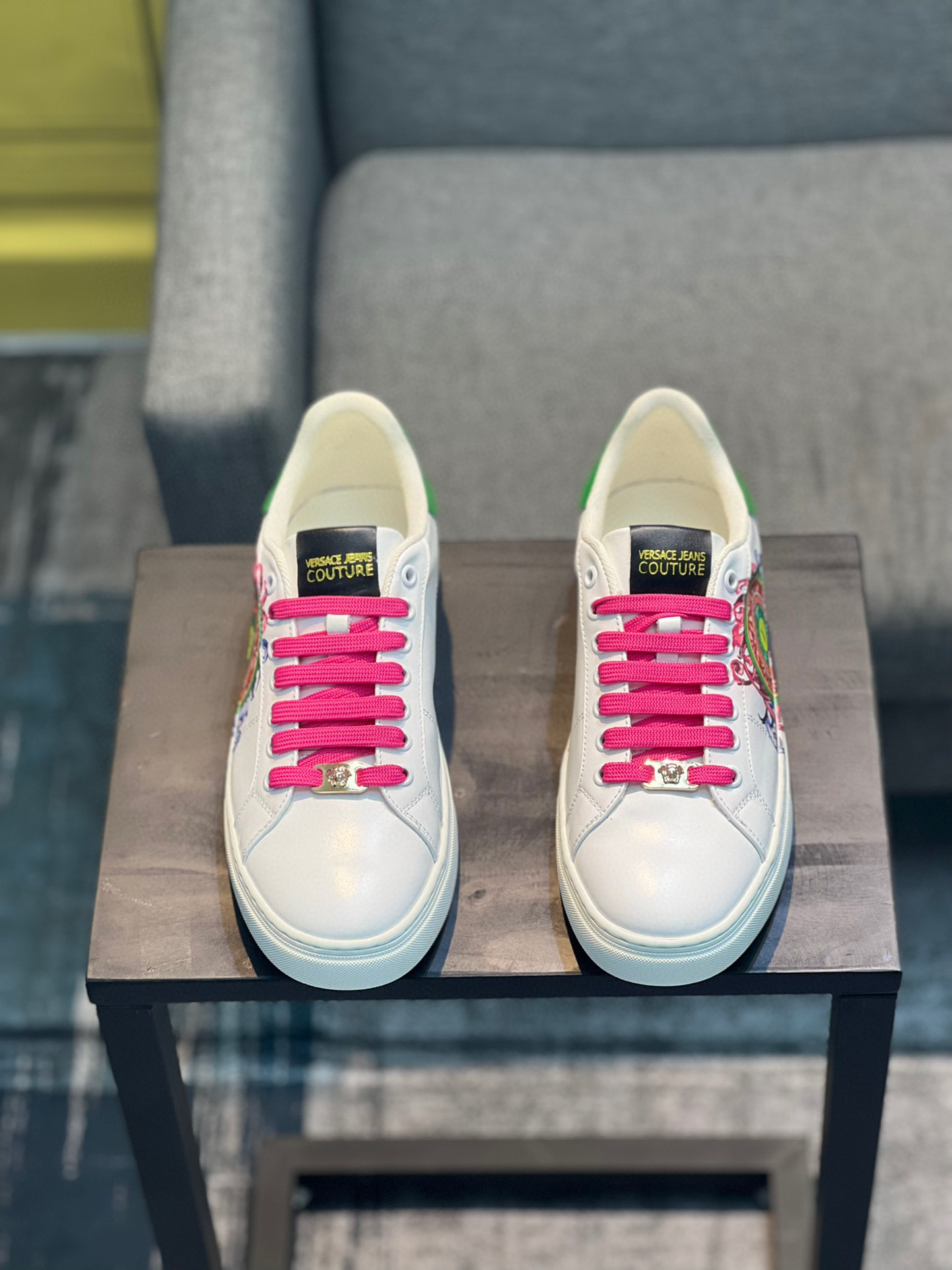 Whether you’re pairing them with jeans or shorts, these sneakers will make a statement. Experience the blend of comfort and high fashion with Versace.