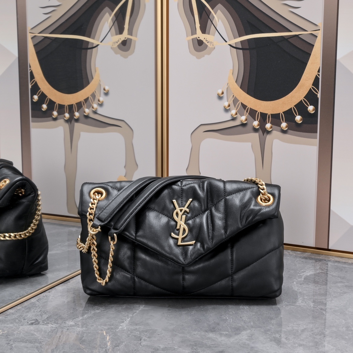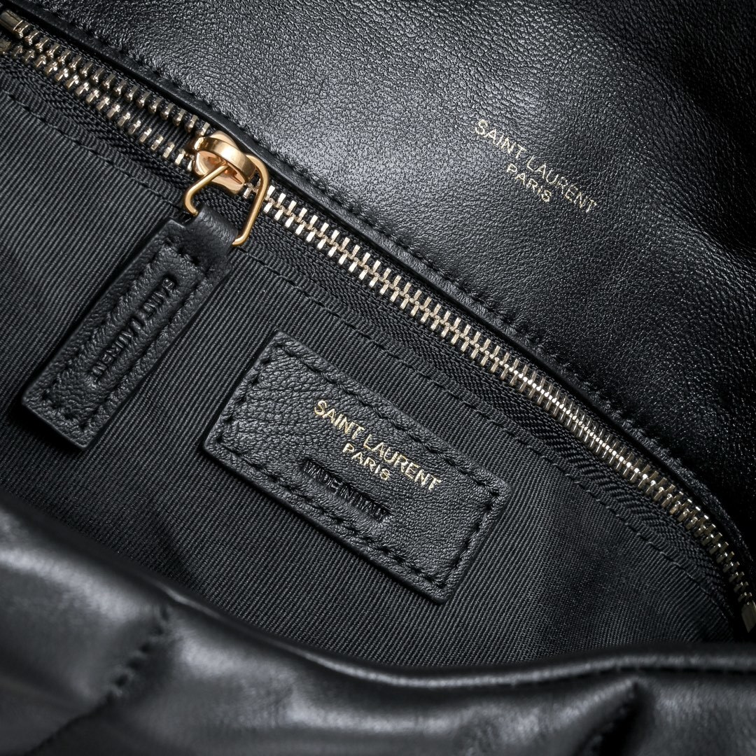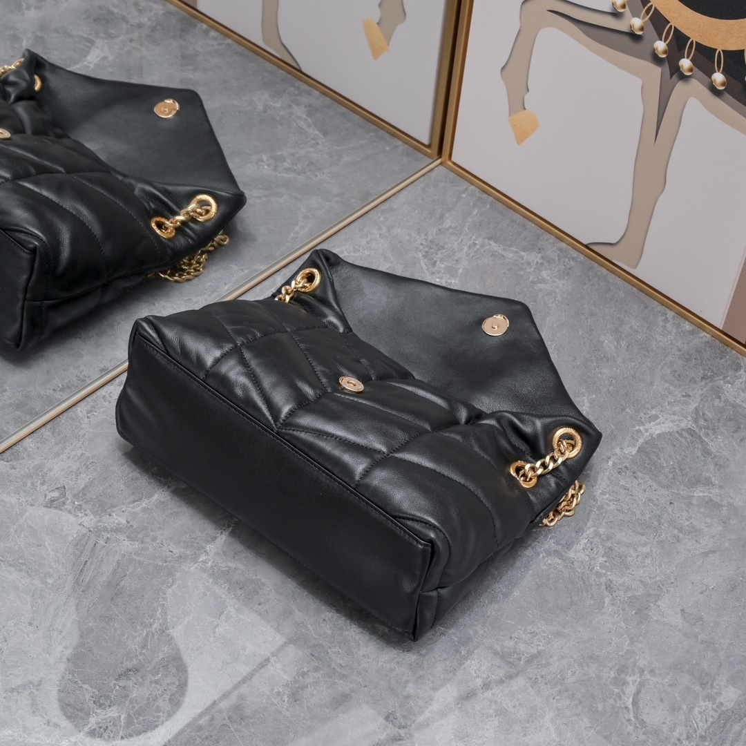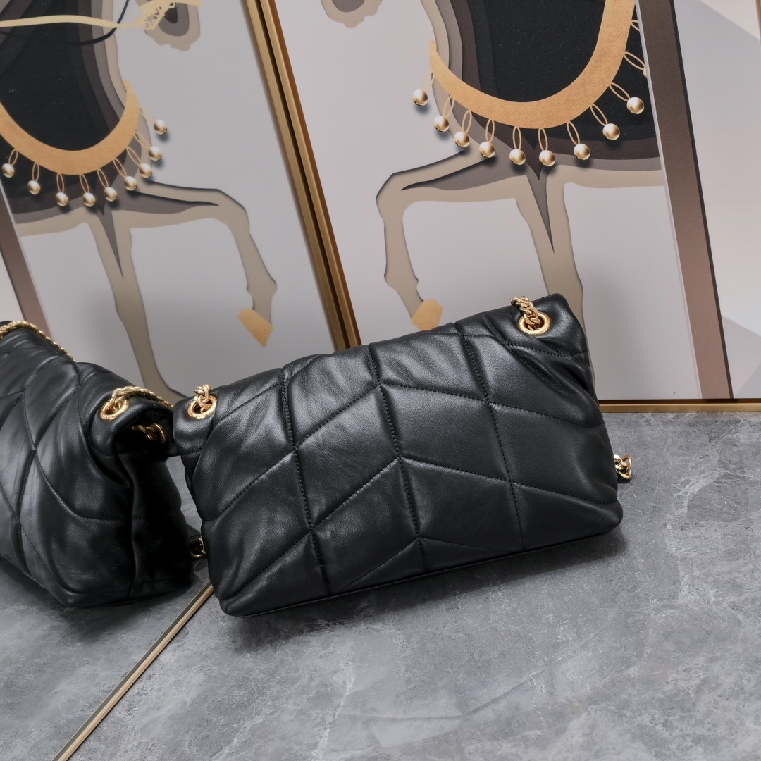 The handbag is adorned with the iconic YSL logo in gold, adding a touch of elegance. The chain strap provides versatility, allowing you to wear it as a shoulder bag or carry it as a clutch. Perfect for day or night, this handbag complements any outfit.