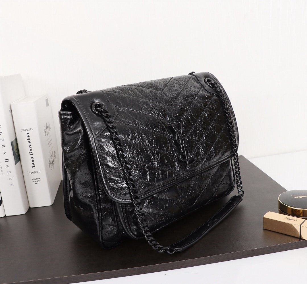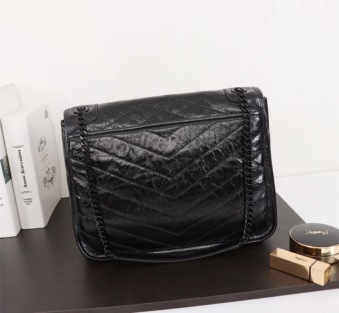 This Yves Saint Laurent bag combines luxury and functionality with its sleek black quilted leather design. Measuring 32x23x10 cm, it offers ample space for your essentials while maintaining a chic silhouette.