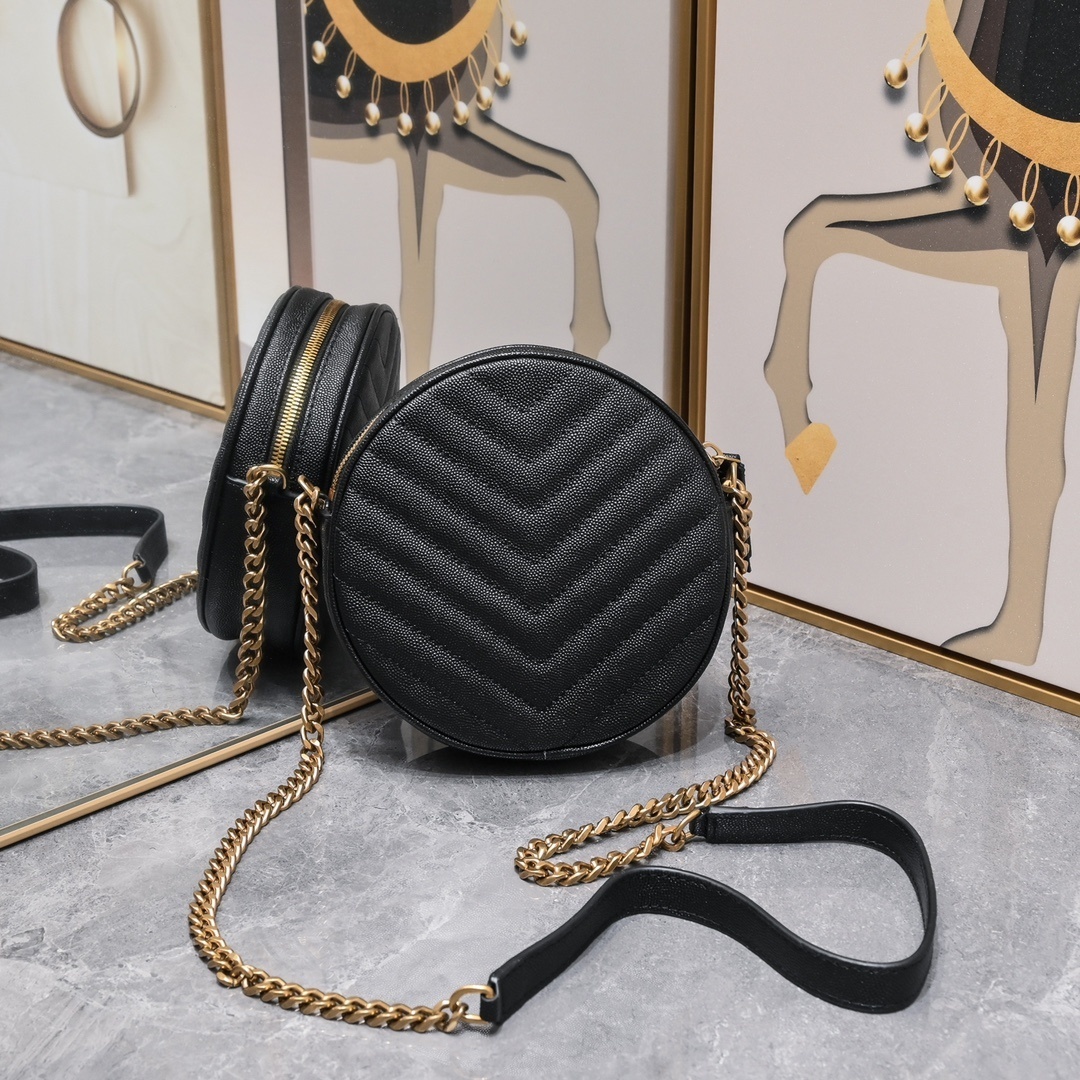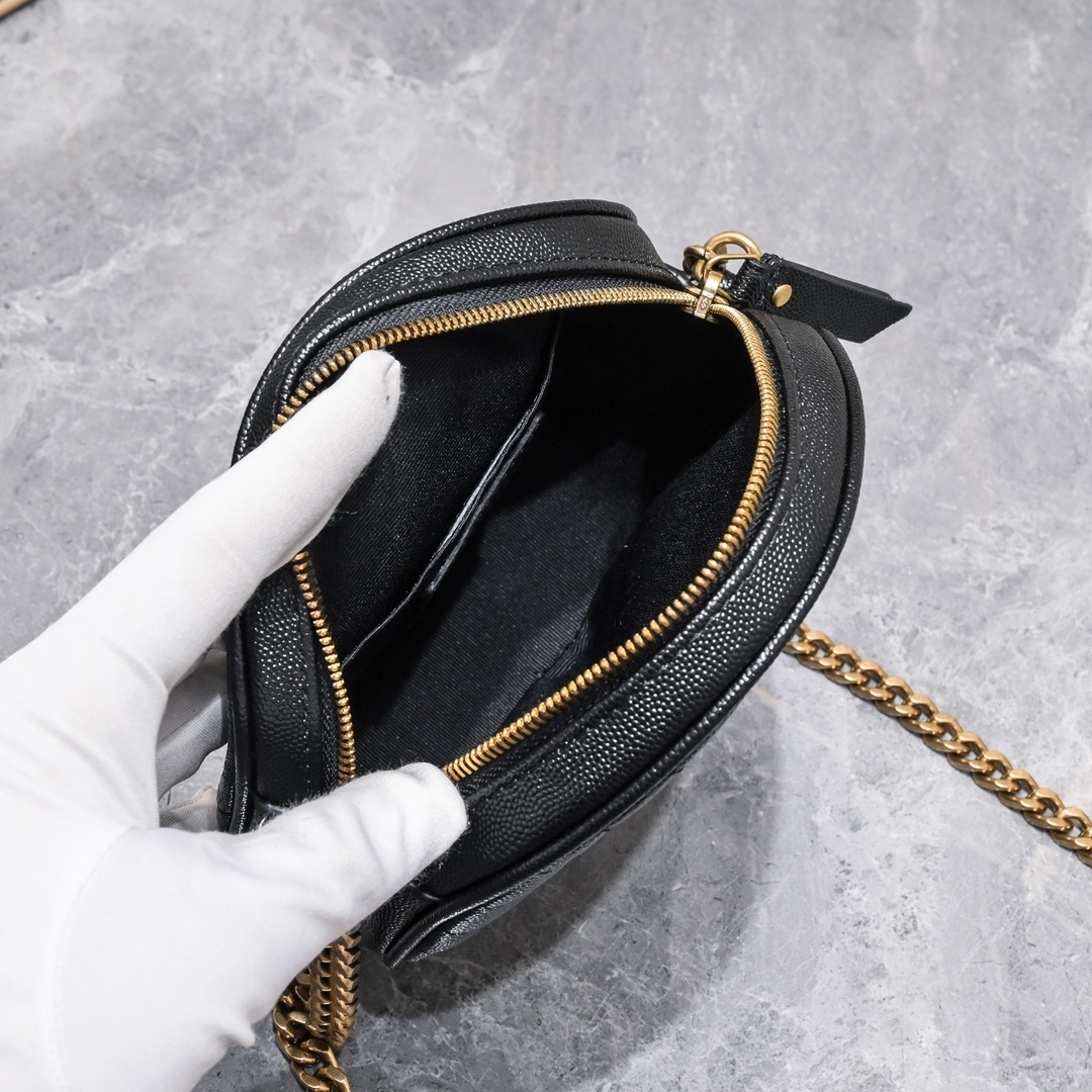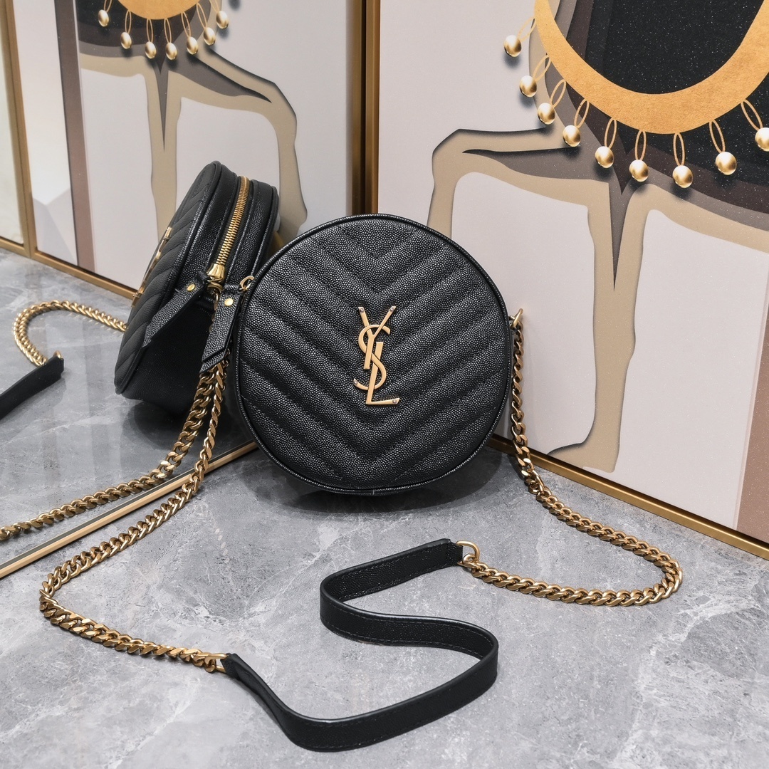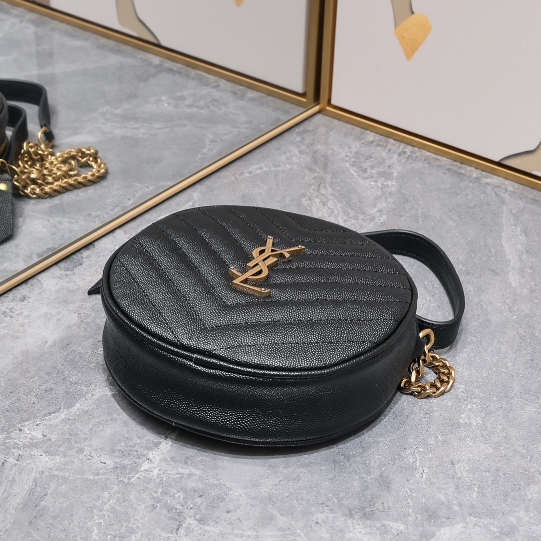yves saint laurent black quilted round crossbody bag
