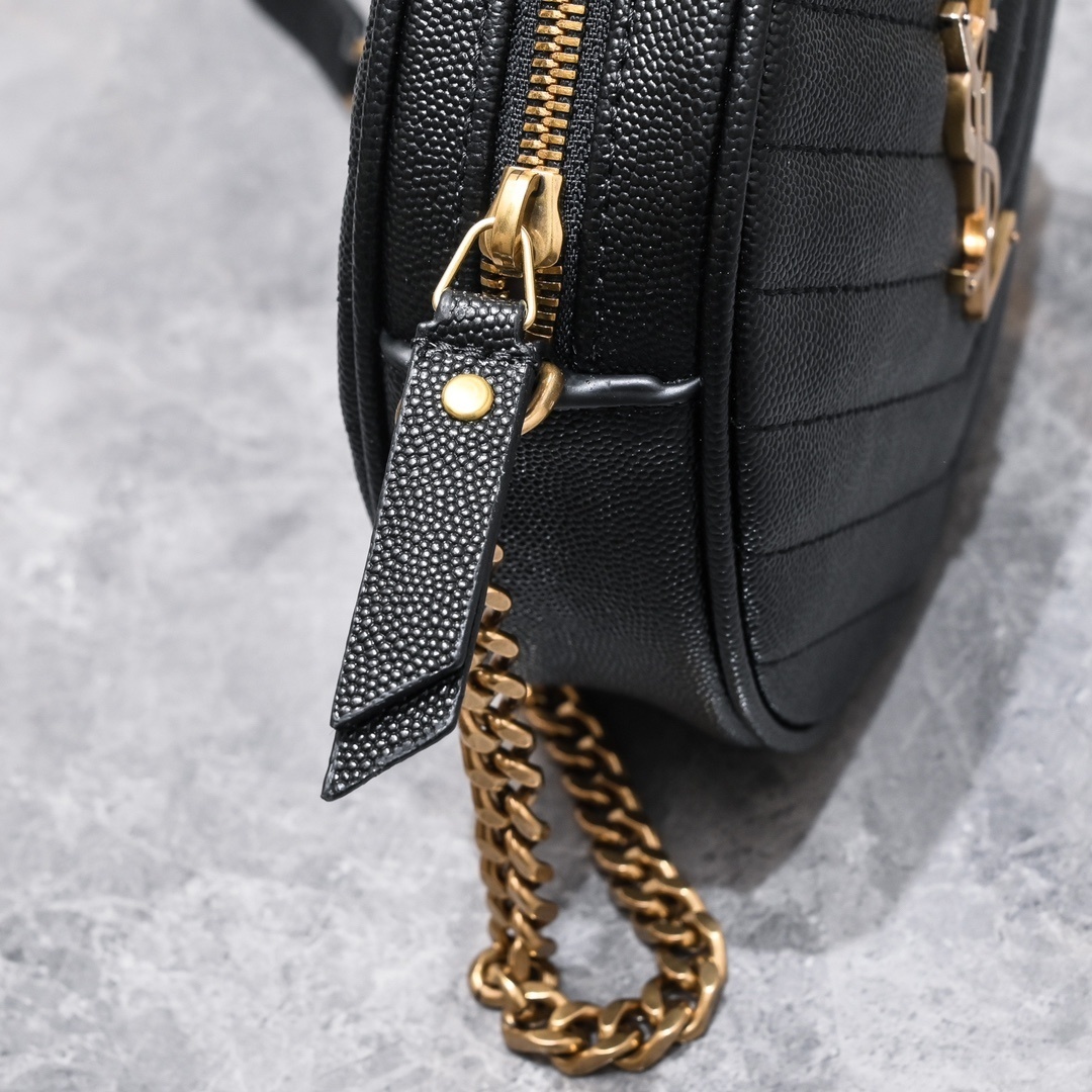 Elevate your accessory game with the Yves Saint Laurent Black Quilted Round Crossbody Bag. This chic bag features a distinctive quilted pattern and the iconic YSL logo, making it a perfect addition to any outfit.
