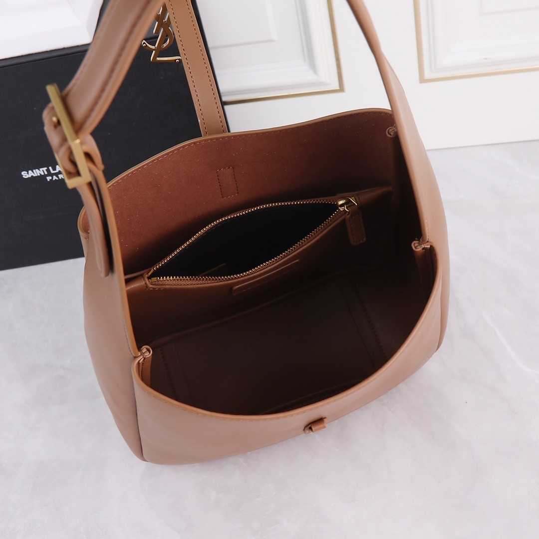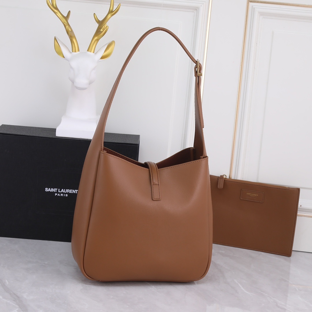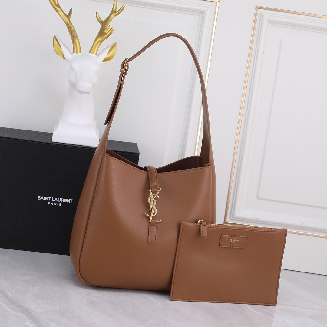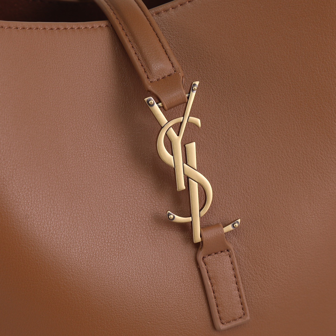 This elegant Yves Saint Laurent tote bag is crafted from premium brown leather, making it a versatile accessory for any occasion. The iconic YSL logo adds a touch of luxury, while the spacious interior provides ample room for your essentials.