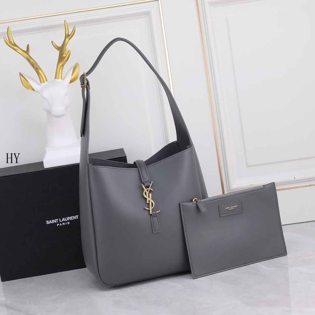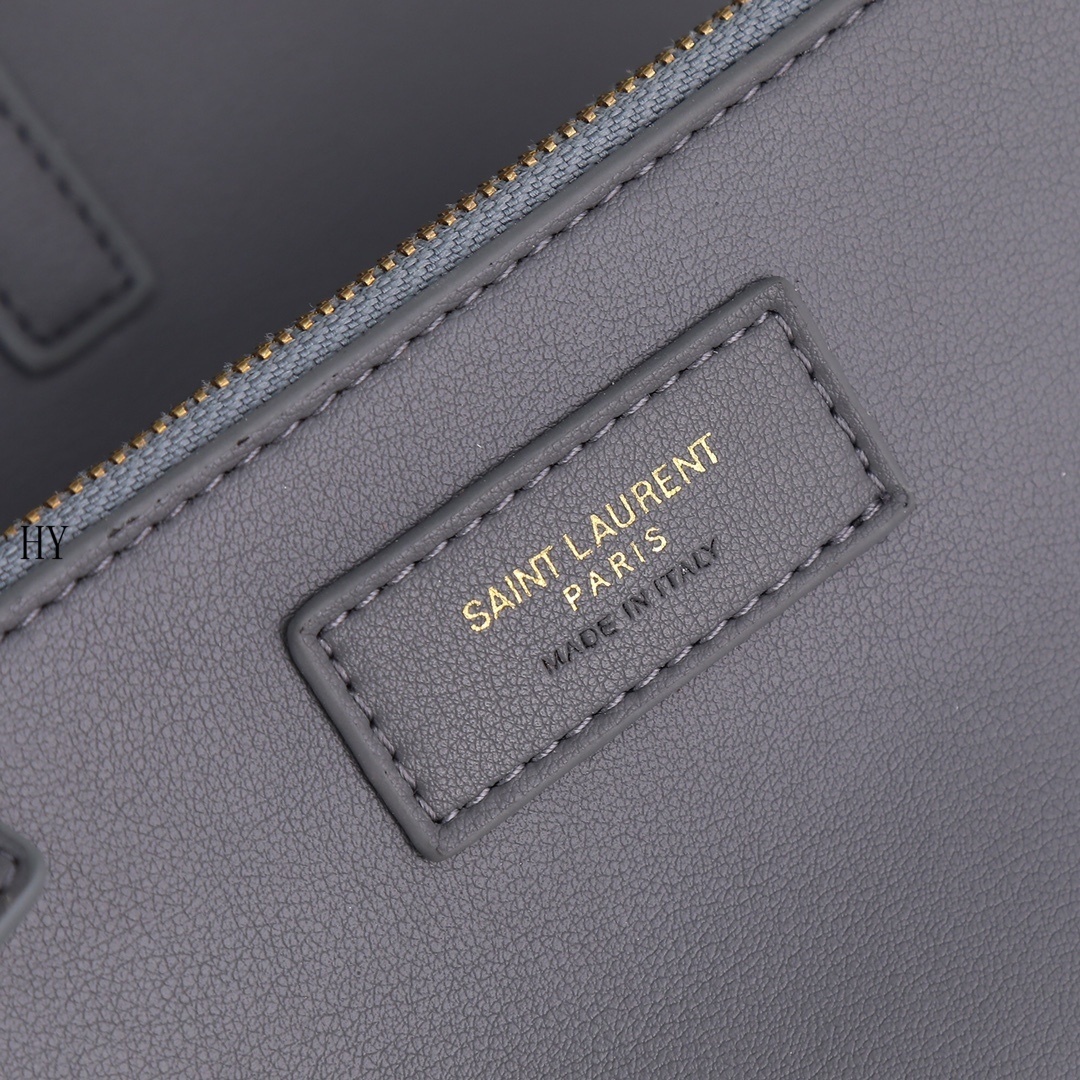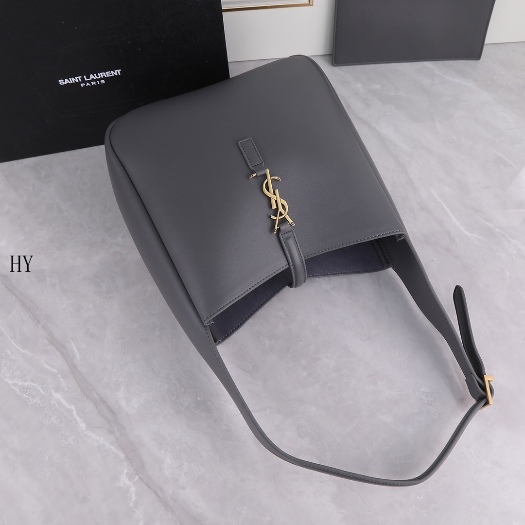 Elevate your accessory collection with this Yves Saint Laurent handbag, crafted from premium grey leather. The iconic YSL logo adds a touch of luxury, while the spacious interior ensures you have ample room for your essentials.